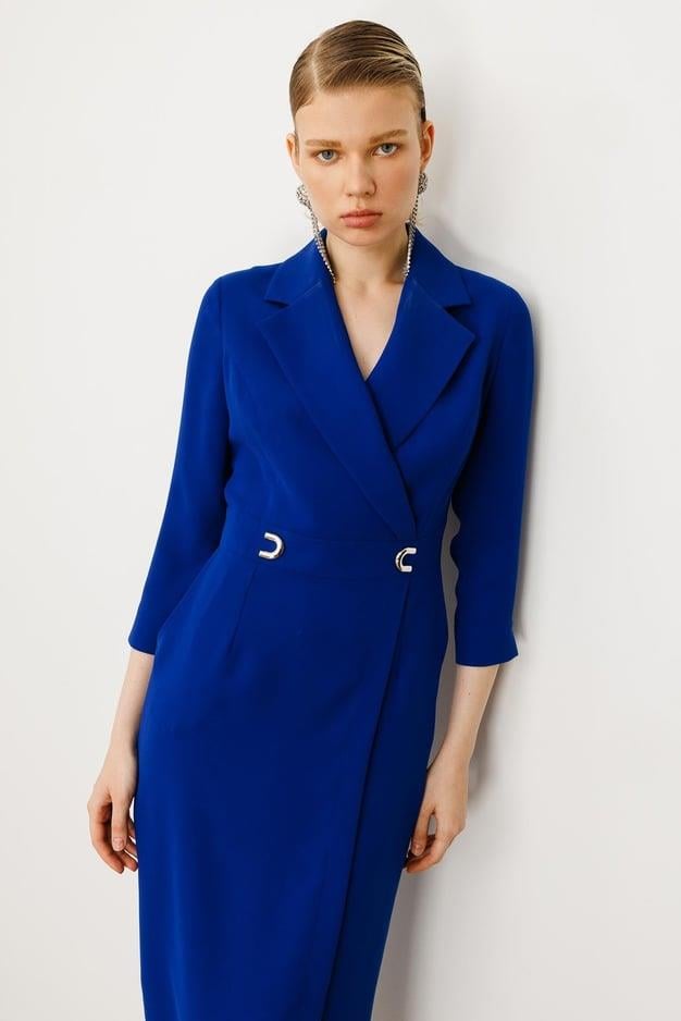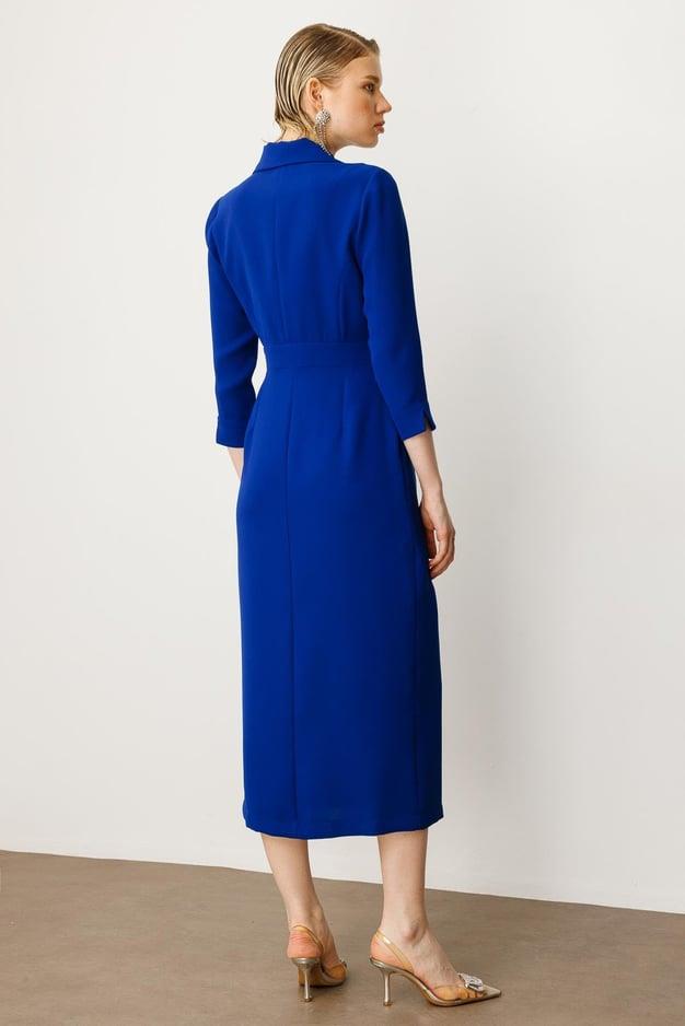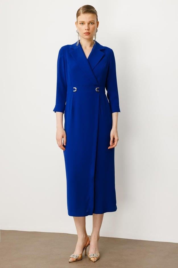 Tasarım: Zarif kruvaze yaka ve bedeni saran midi boy.