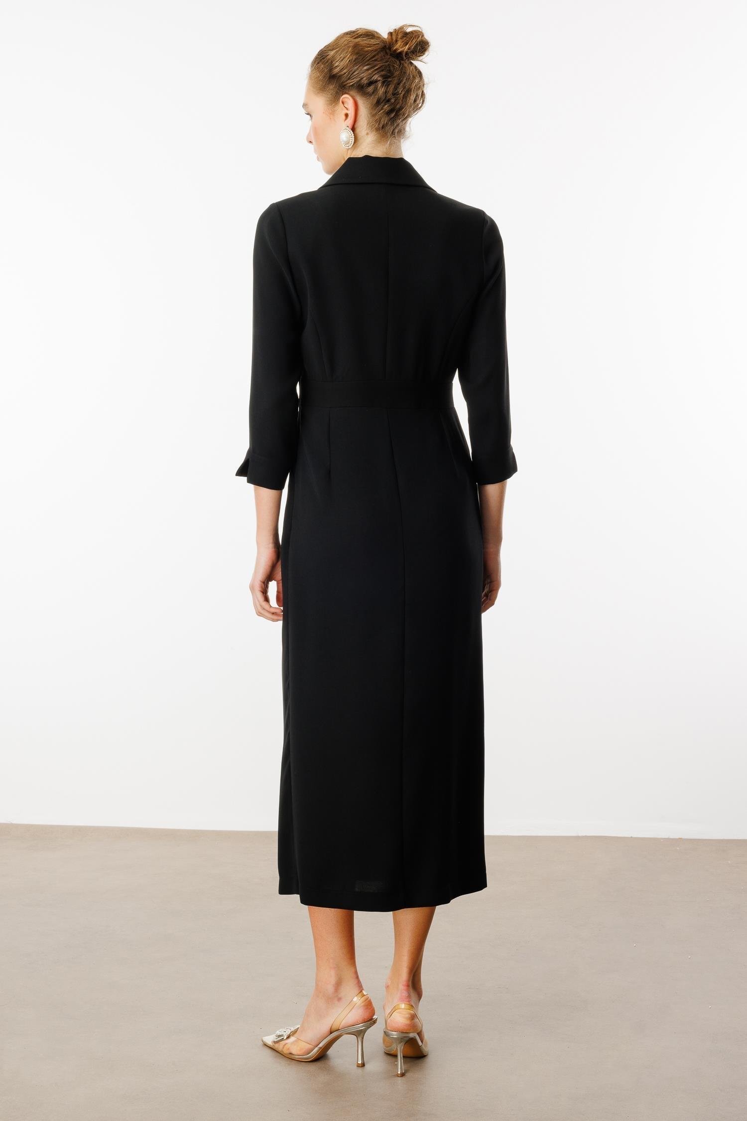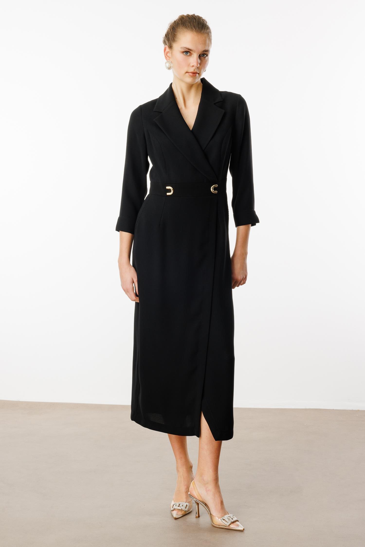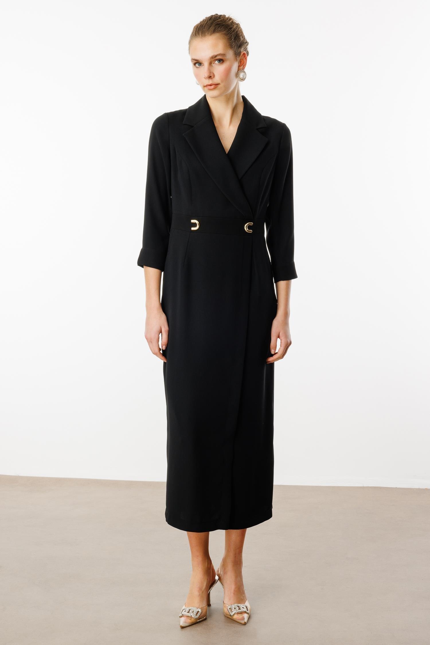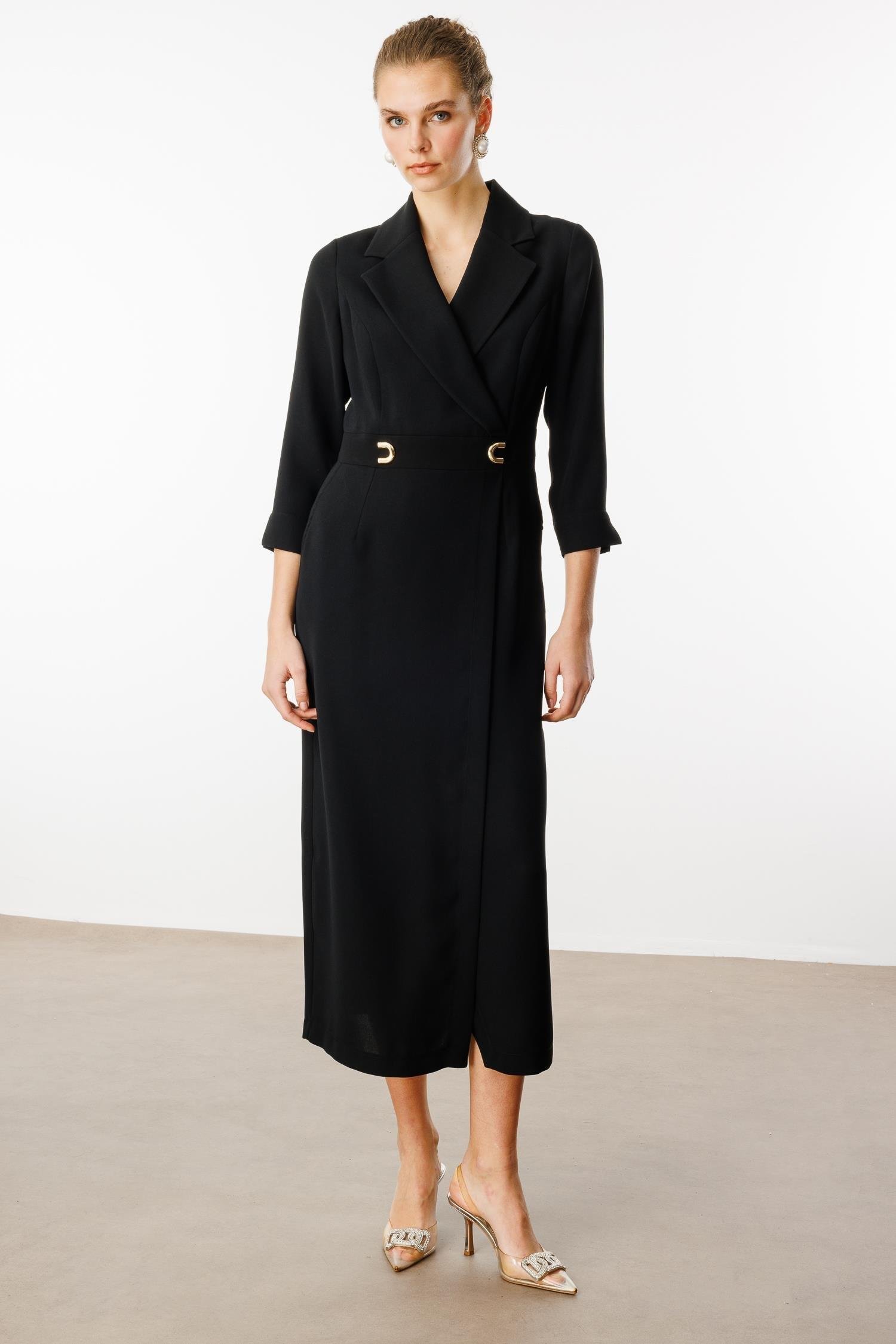 Aksesuar Detaylı Kruvaze Elbise SİYAH (26K3309-002)