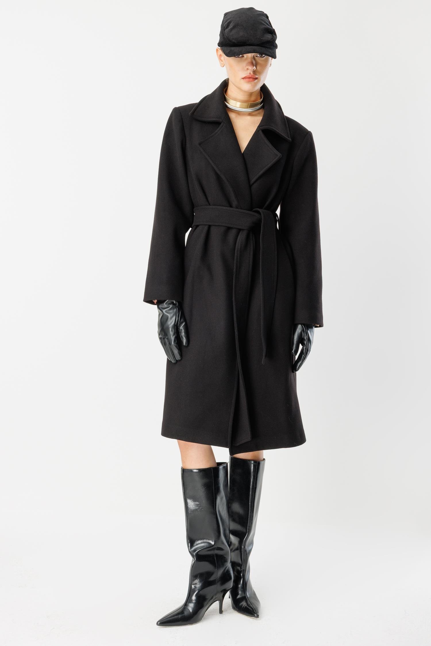 Kış gardırobunuzun en güçlü ve vazgeçilmez parçası. Nefelistore imzalı bu siyah kaşe kaban, kusursuz kesimi ve lüks dokusuyla her kombininize sofistike bir dokunuş katıyor. Siyahın asaleti, beli vurgulayan kuşağı ve midi boyuyla birleşerek hem sıcak tutan hem de daima şık görünen bir silüet yaratıyor.