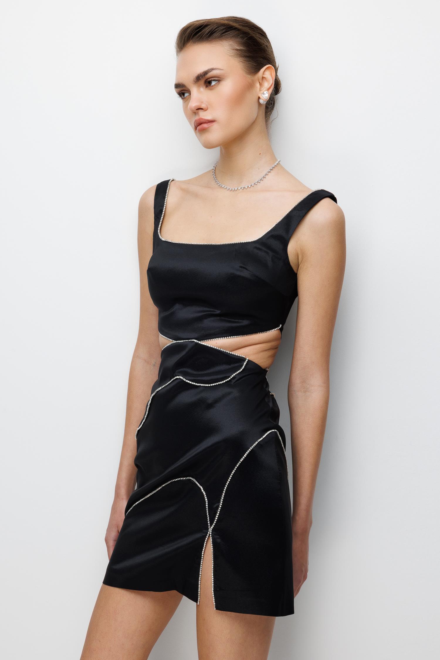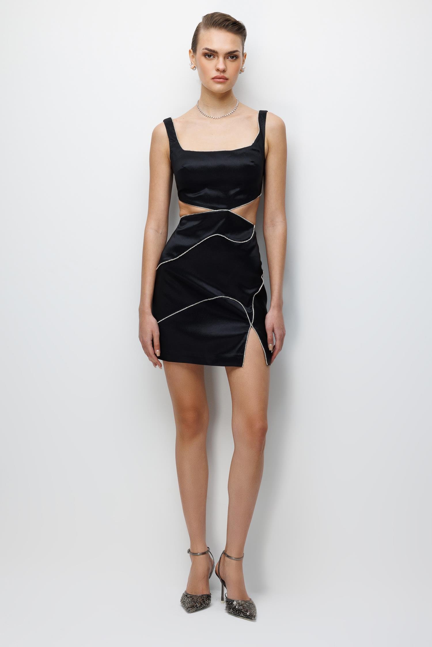 Nefeli Siyah Elbise — Gücünüz, keskin detaylarda gizli.
