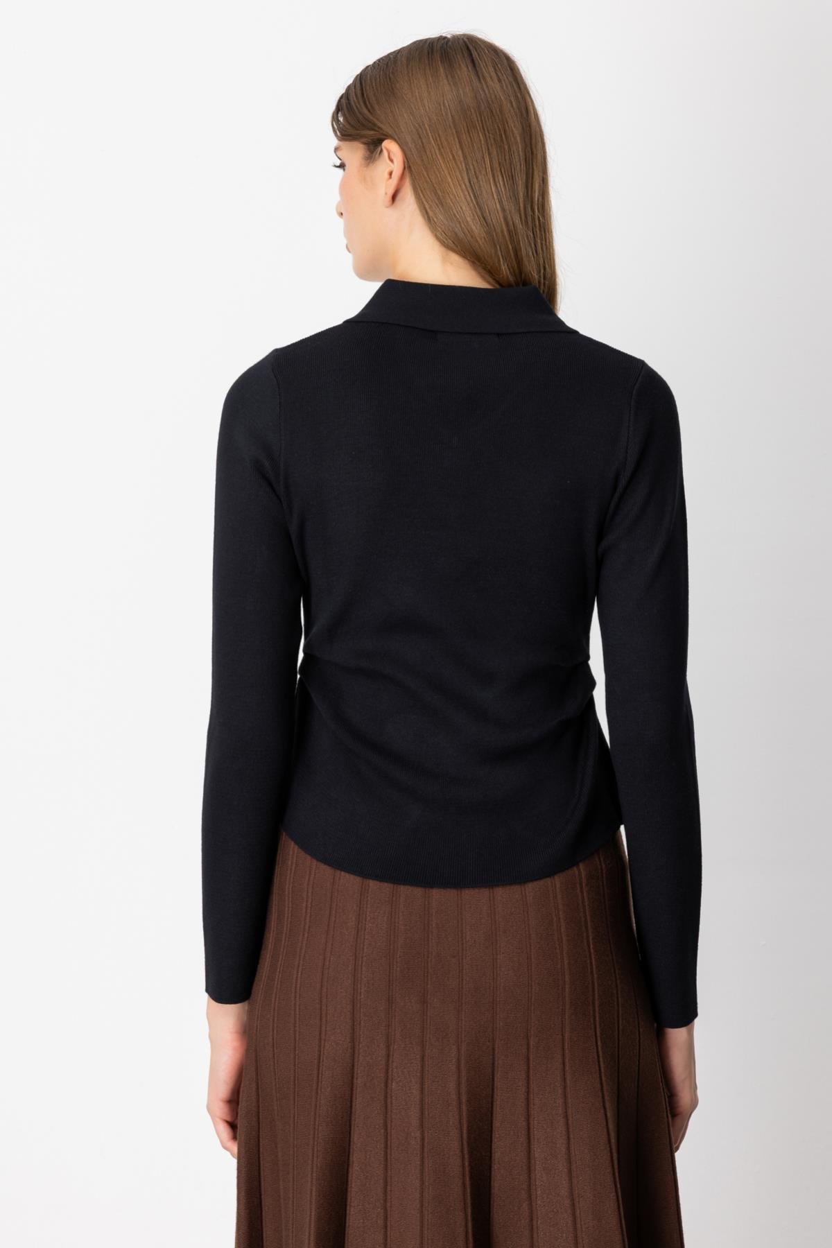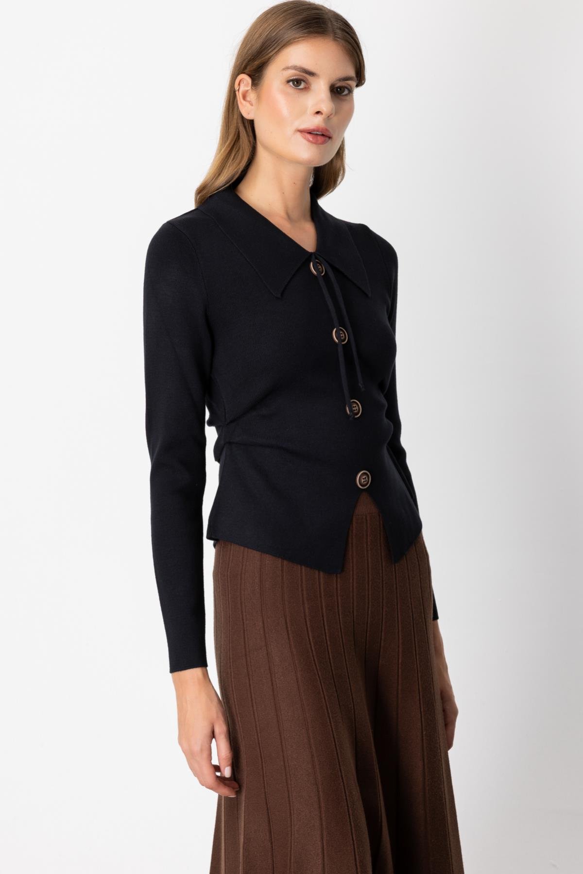Bele Oturan Düğmeli Kazak SİYAH (26KON5353-002)