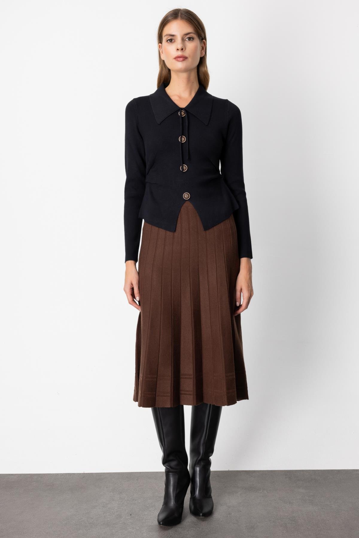 Bele Oturan Düğmeli Kazak KREM Bele Oturan Düğmeli Kazak SİYAH