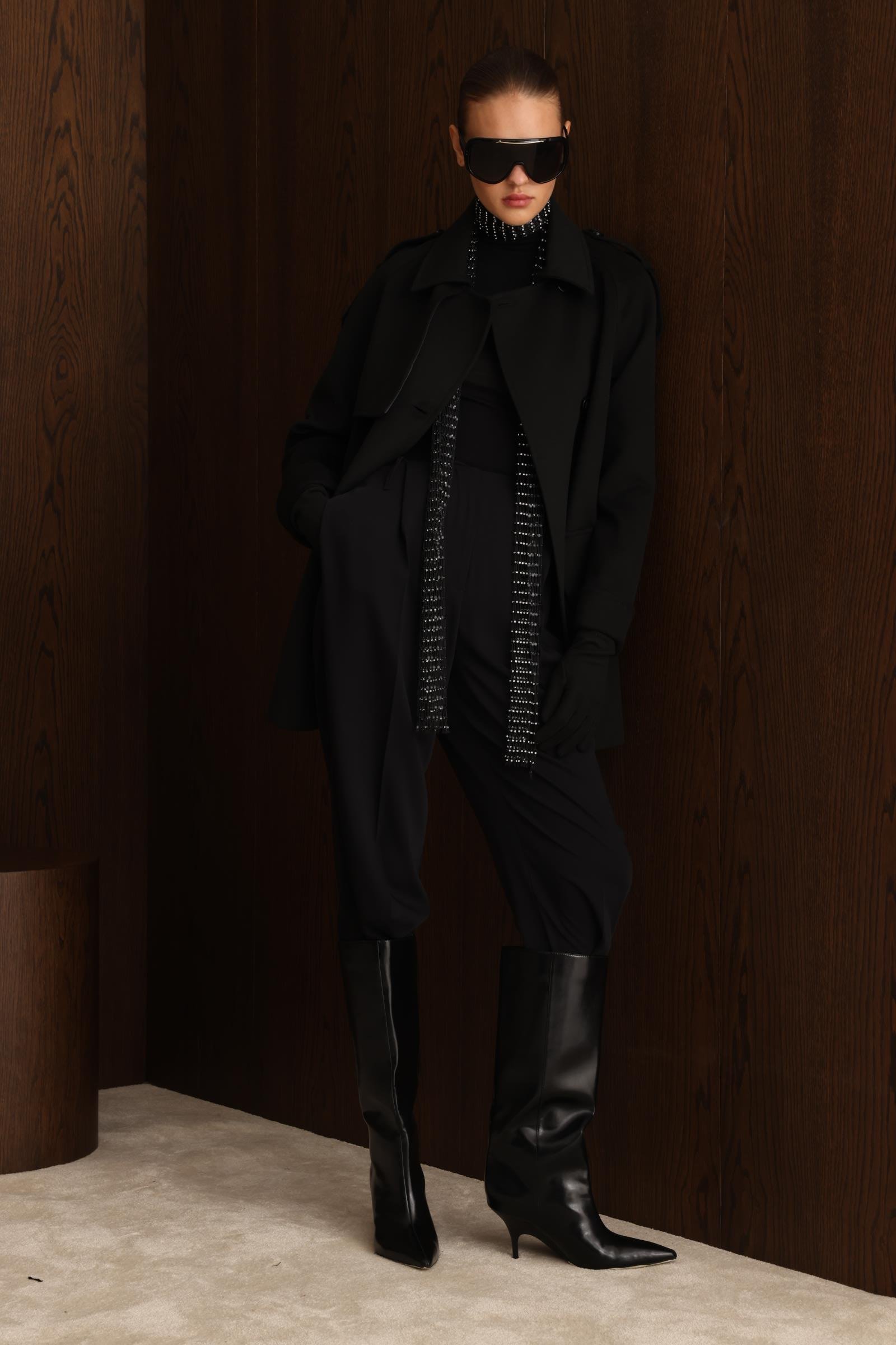 Bu kabanı, görseldeki gibi siyah balıkçı yaka bluzlar ve aynı tonlarda dar kesim pantolonlarla kombinleyerek monokrom ve sofistike bir stil oluşturun. İddialı güneş gözlükleri ve yüksek topuklu botlarla tamamlayarak güçlü bir kış görünümü elde edin.