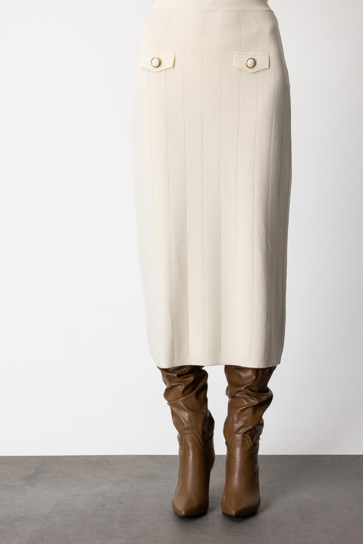 Cep Kapaklı Midi Etek KREM (26KON9505-086)