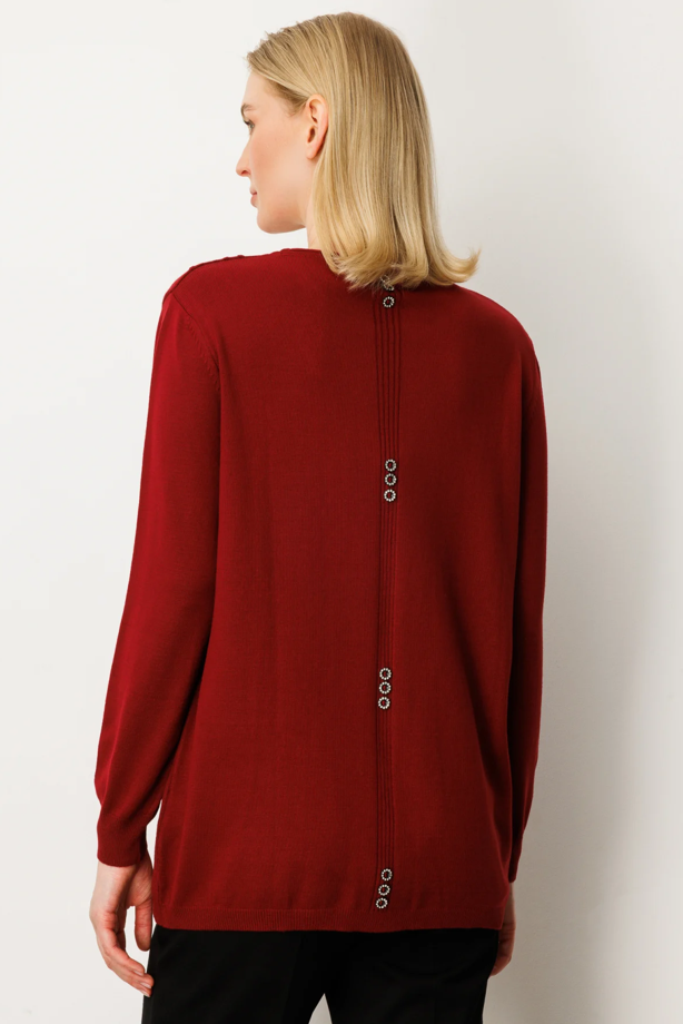 Cepli Arkası Düğmeli Kazak BORDO (26KON5344-014)