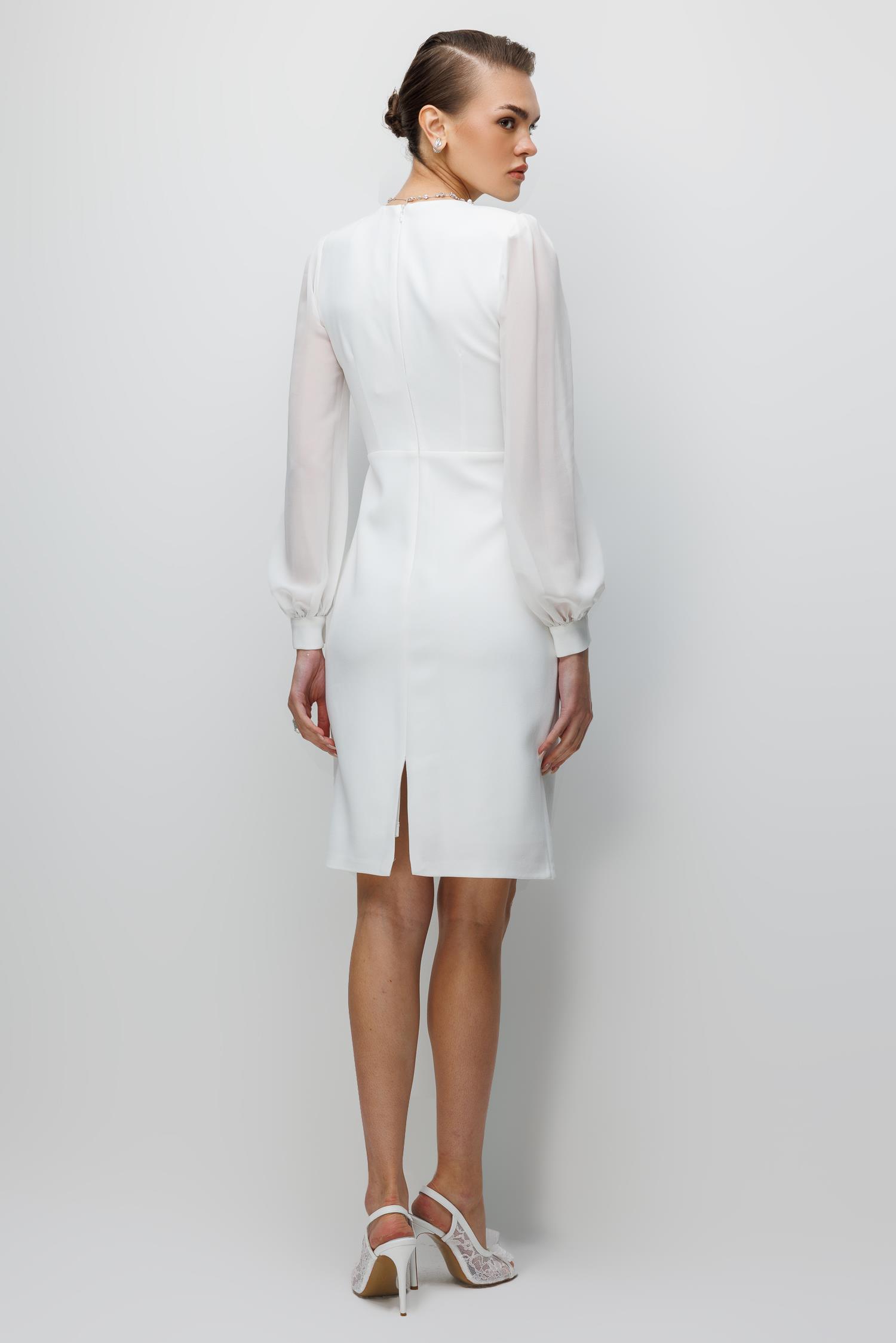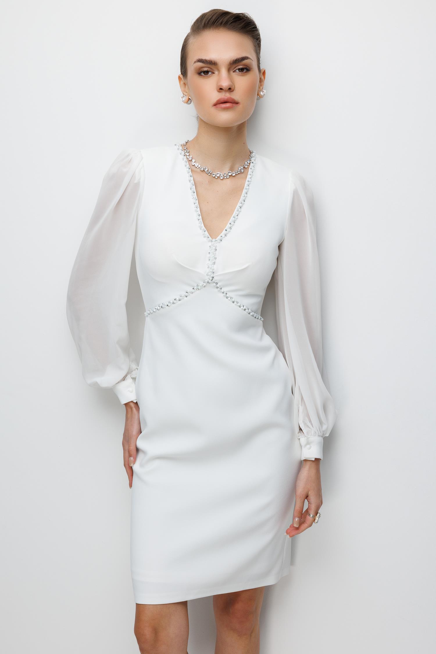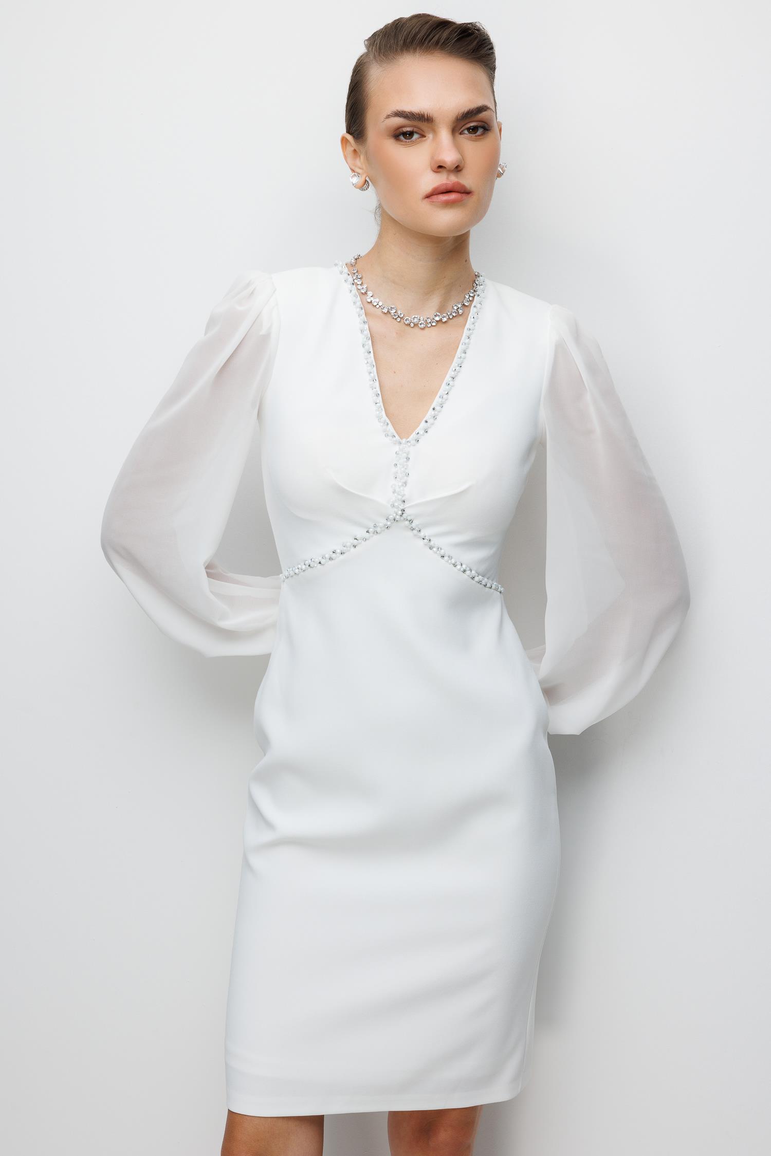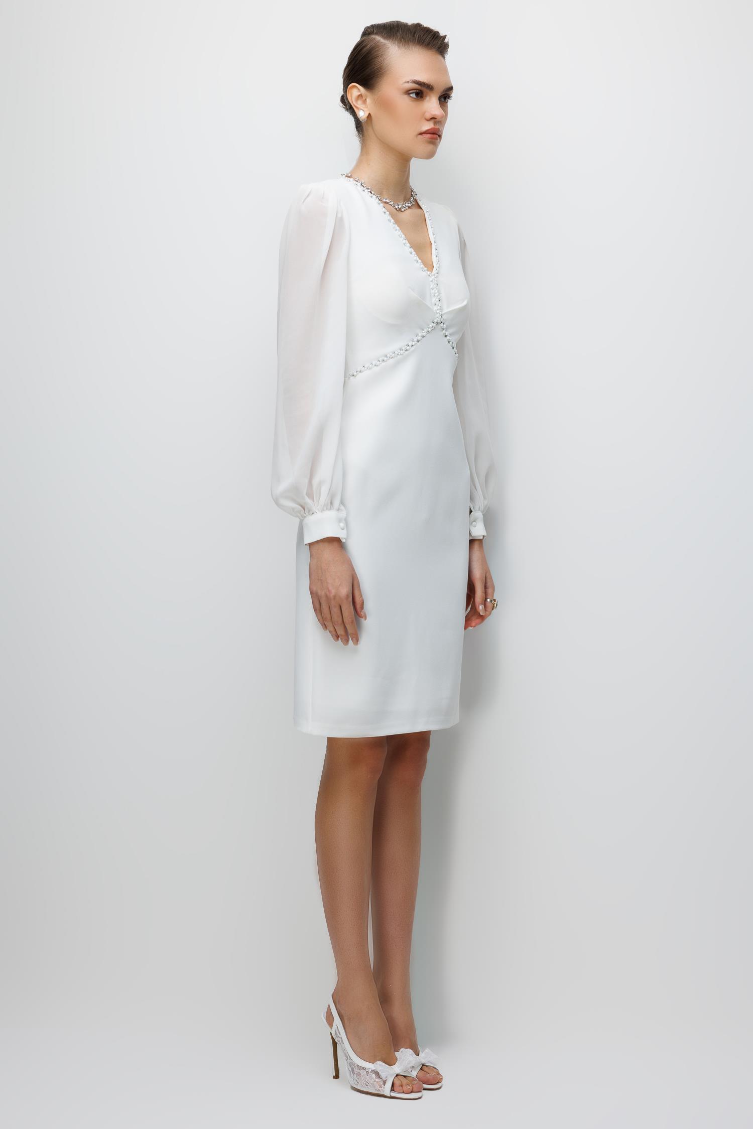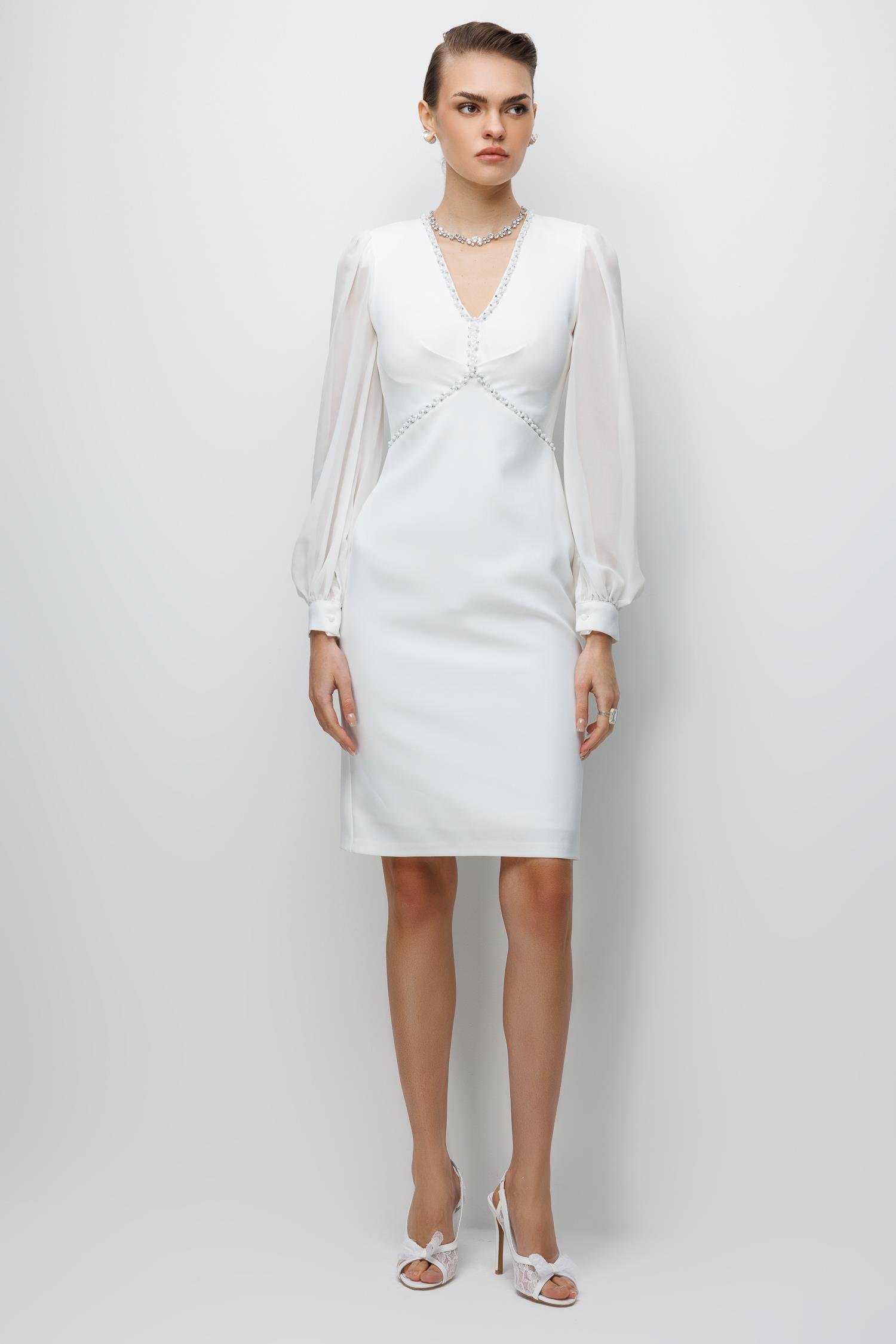 Kolları Şifon V Yaka Elbise EKRU (26KALN2304-012)
