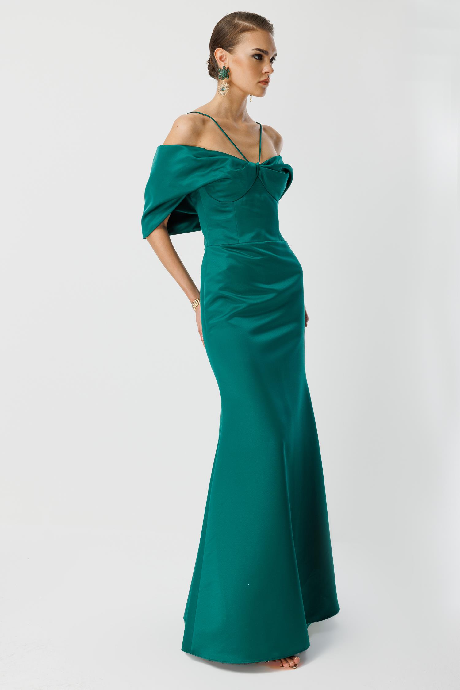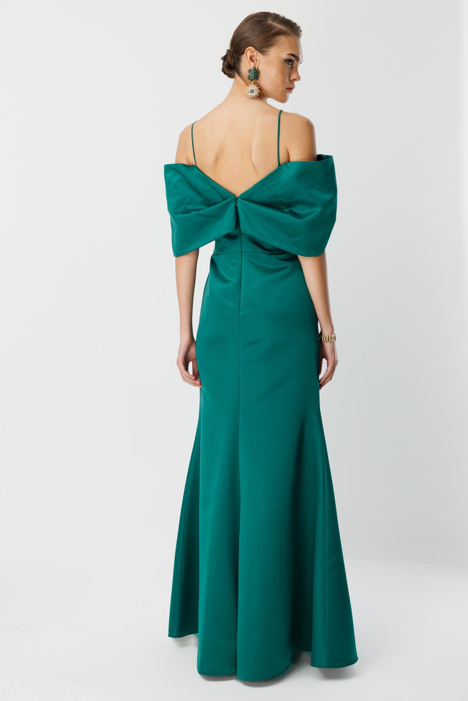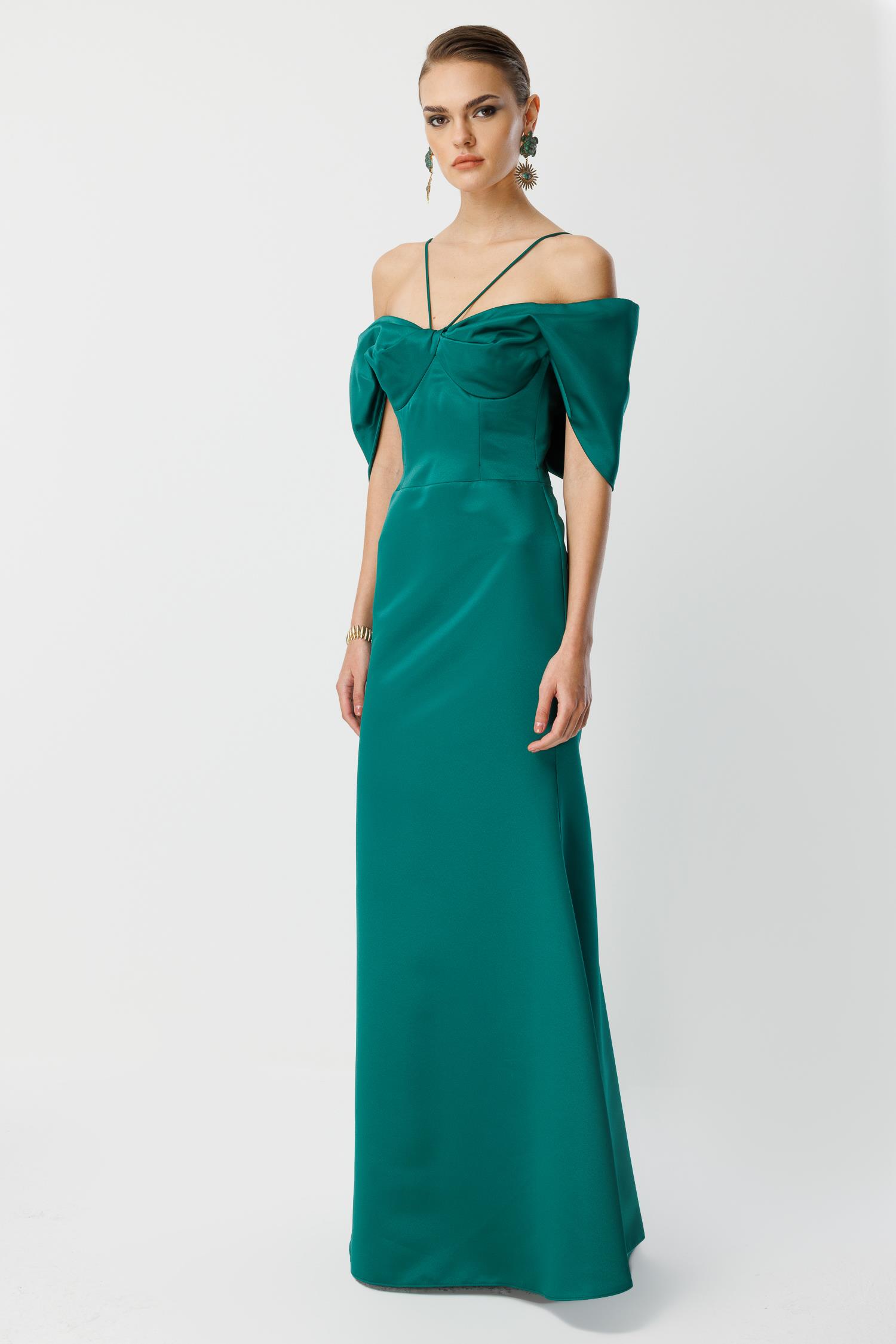 Maxi Evening Dress with Fishtail Neck Detail GREEN (26KALN2360-011)