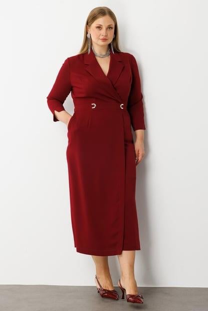 Double Breasted Dress with Waist Accessory and Pockets, Claret Red (26KGLD8056-014)