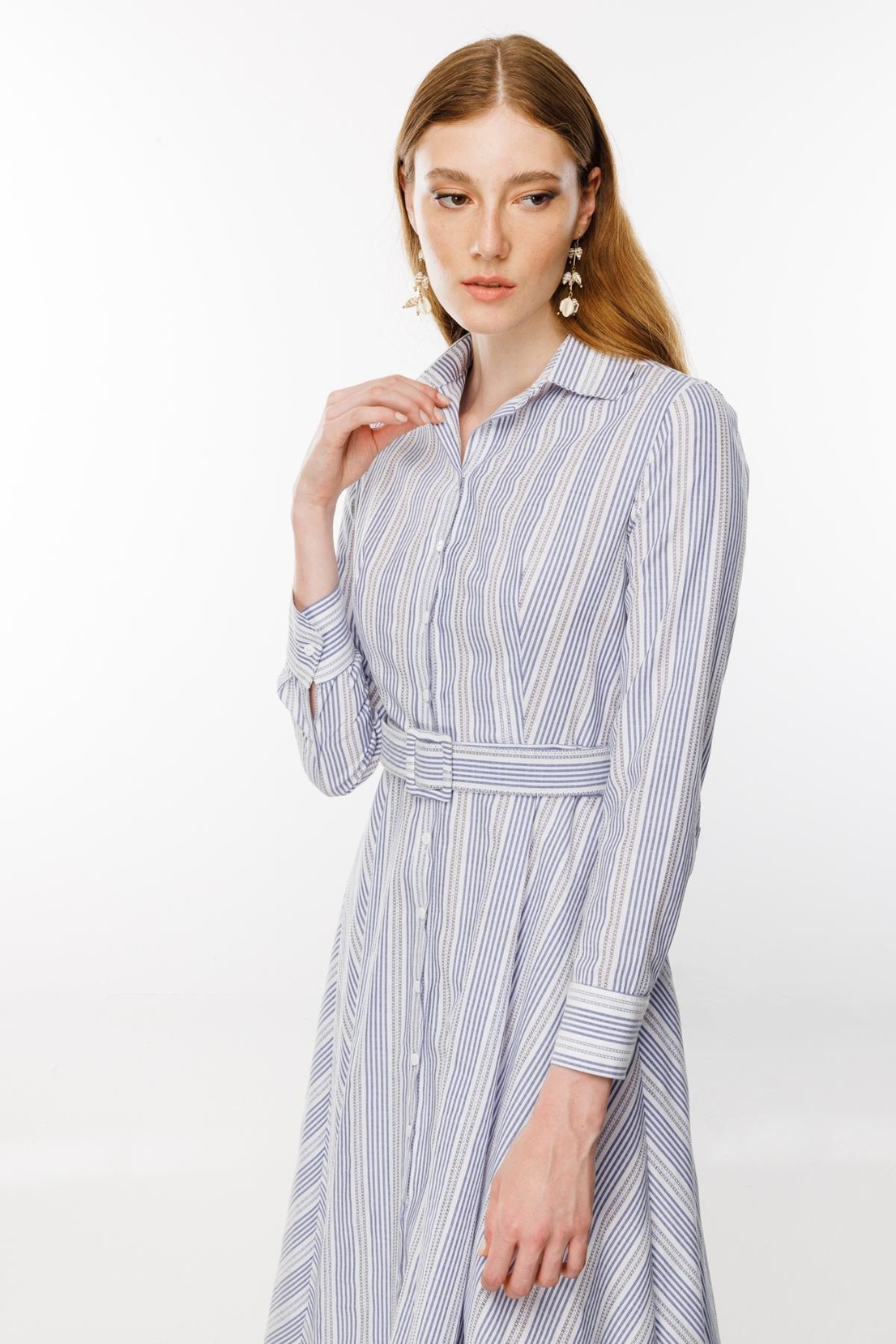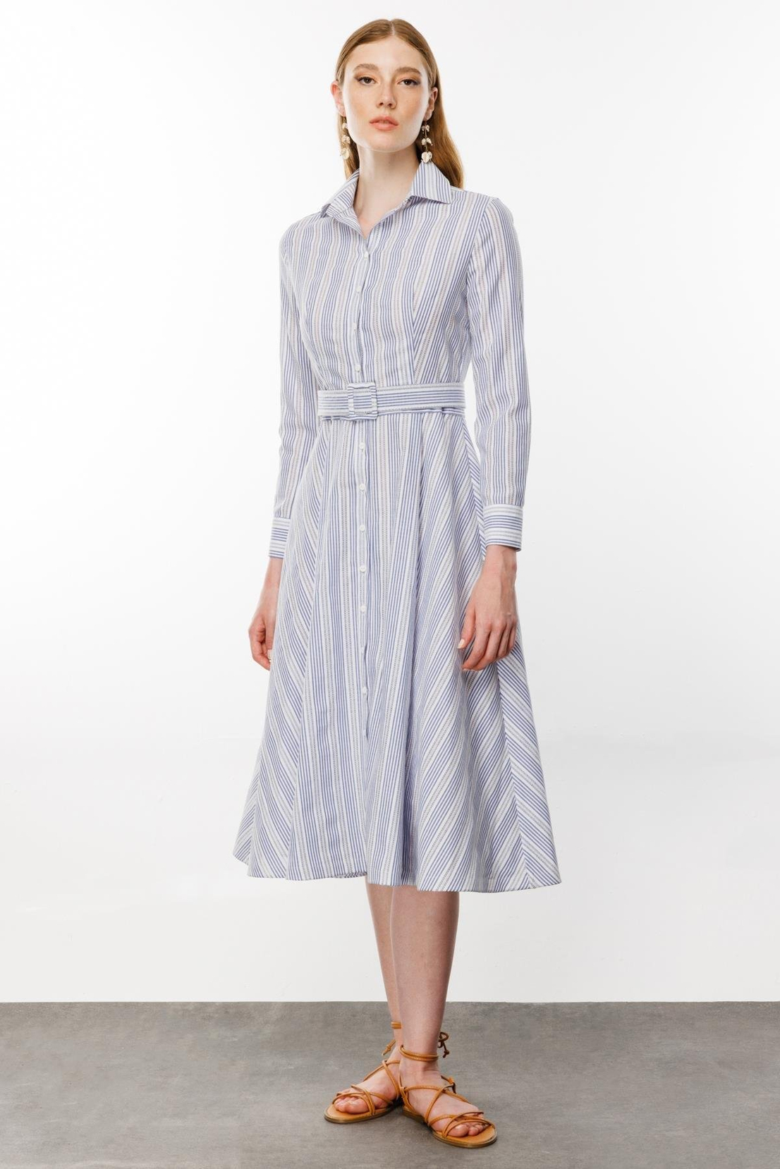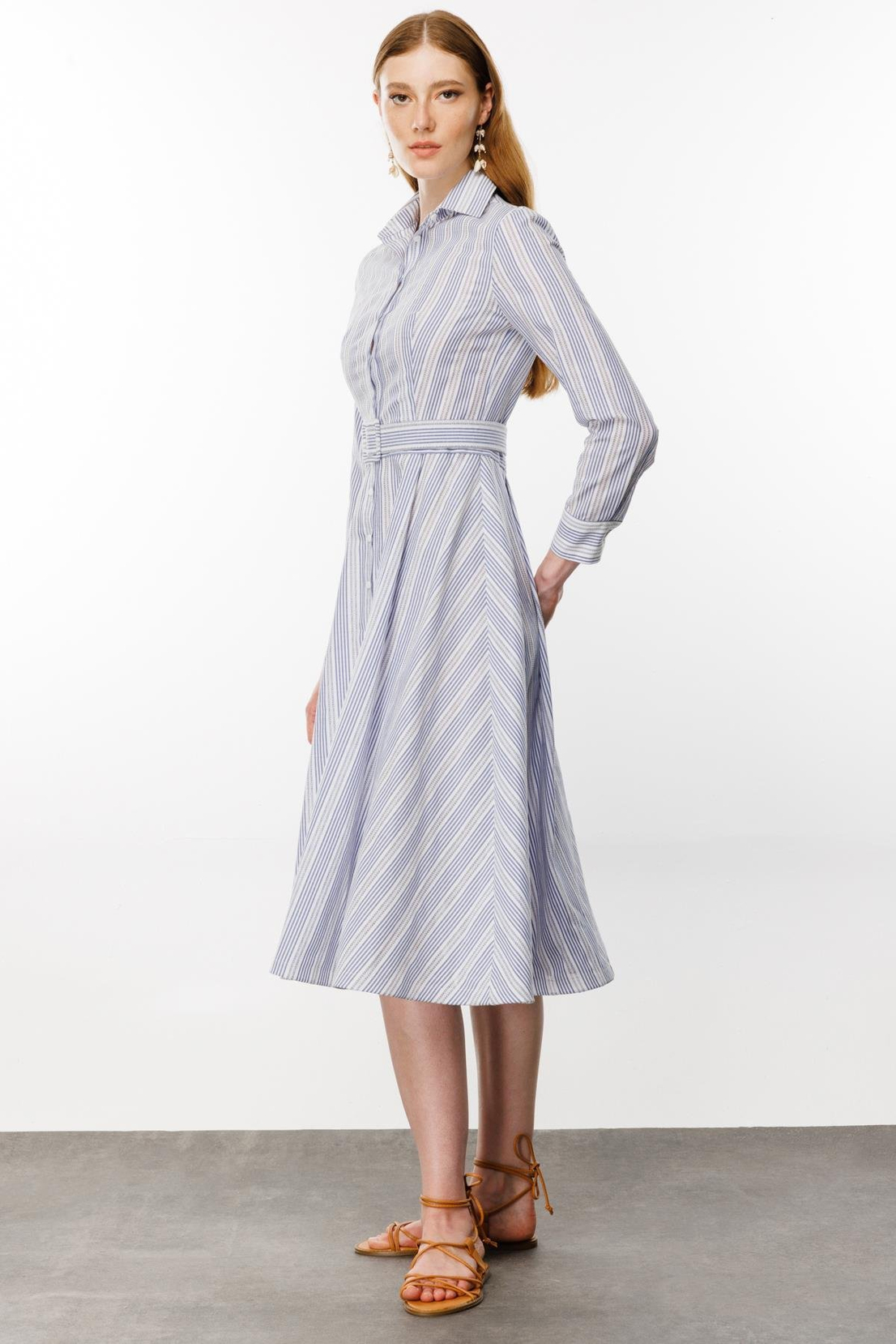 Embroidery Striped Shirt Dress BLUE (24Y3015-006)