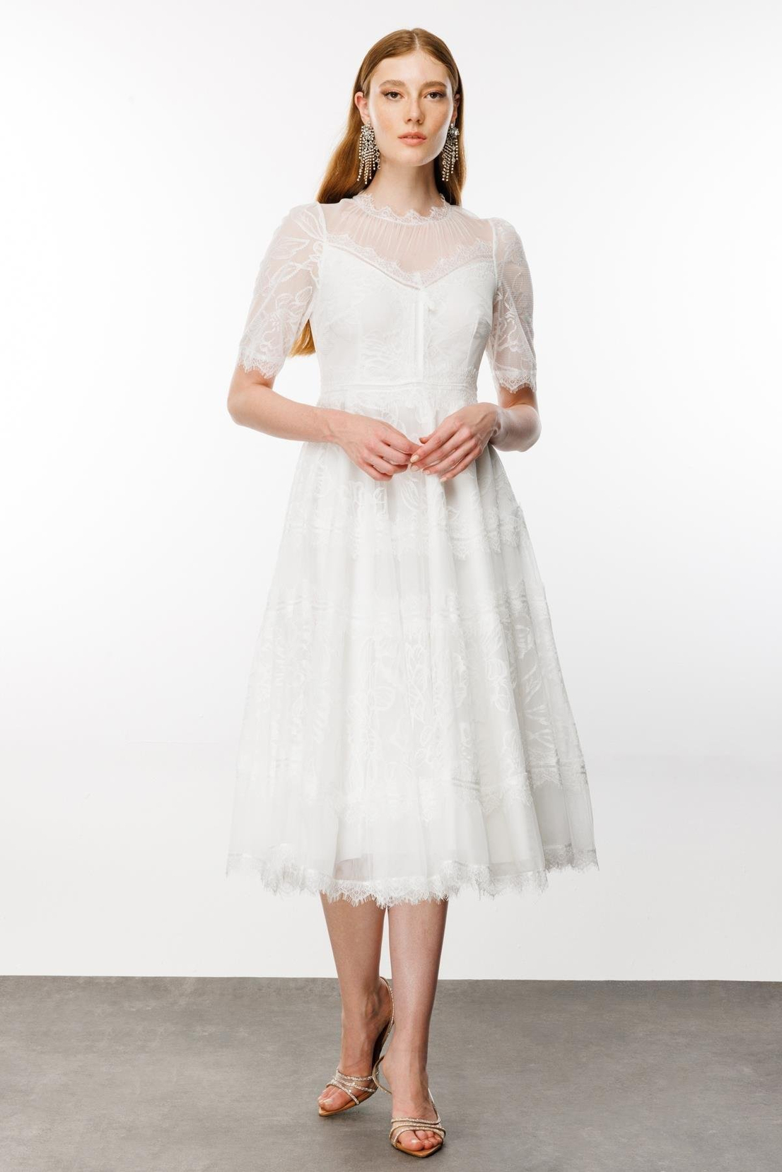 The product is handmade and completely tulle lace. Thanks to the lining inside, it does not reveal body lines.
