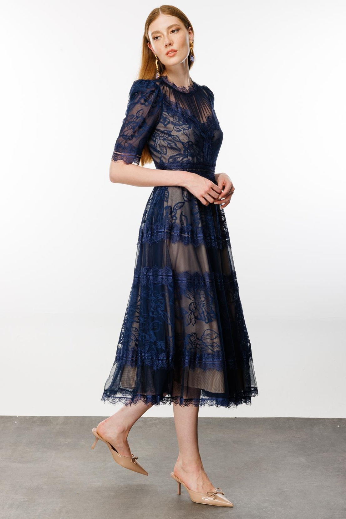 The product is handmade and completely tulle lace. Thanks to the lining inside, it does not show the body lines.