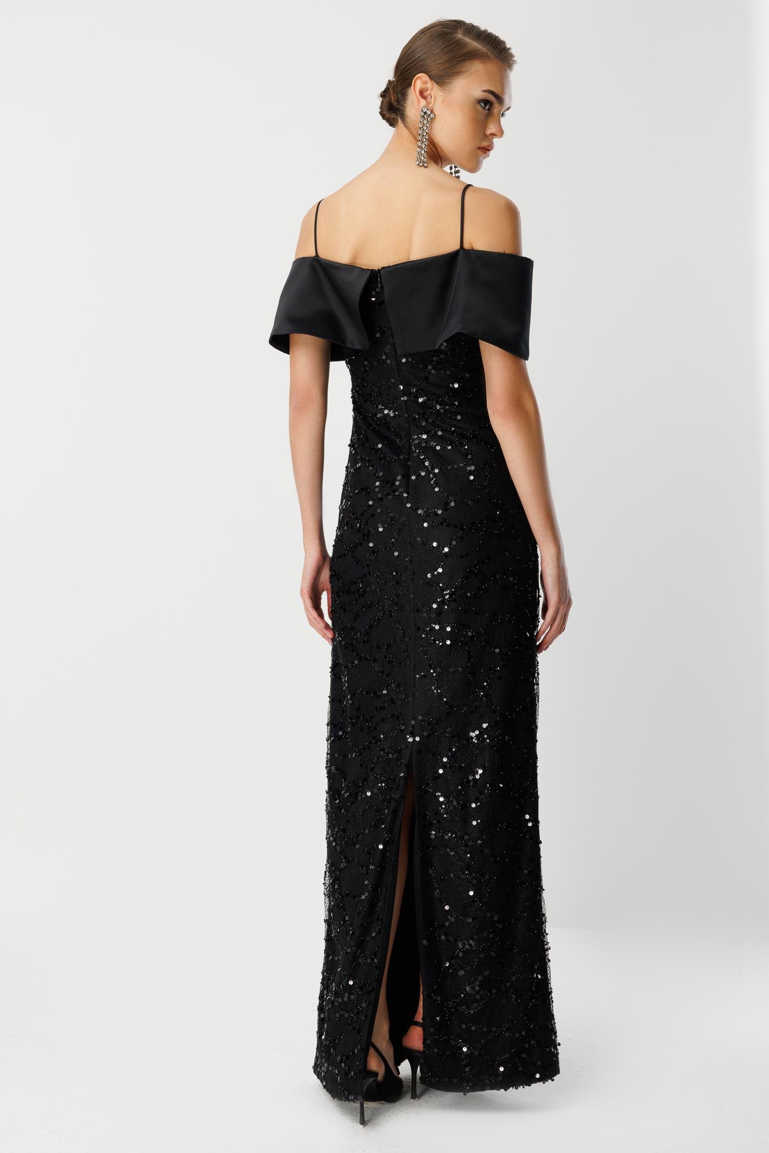Lace Embroidery Detail Collar Evening Dress BLACK (26KALN2358-002)