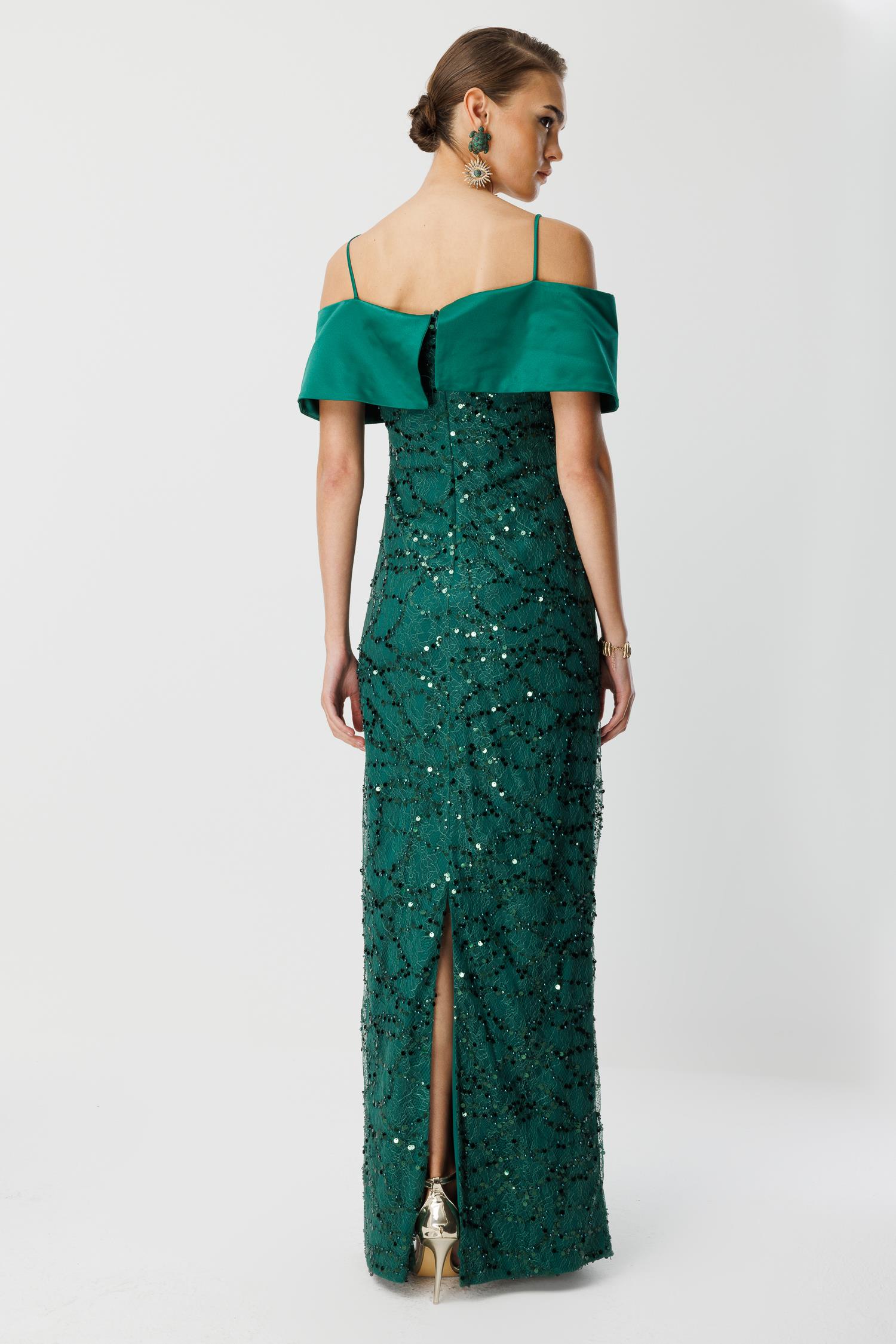 Lace Embroidery Detail Collar Evening Dress EMERALD (26KALN2358-033)