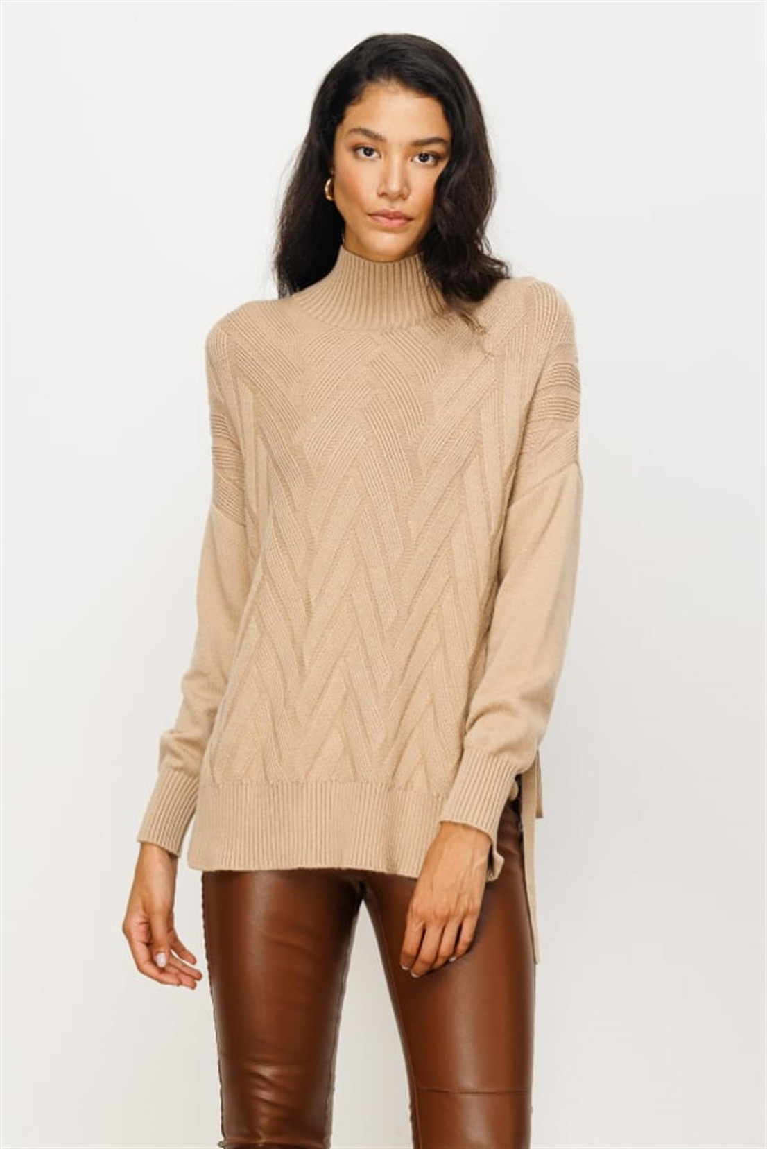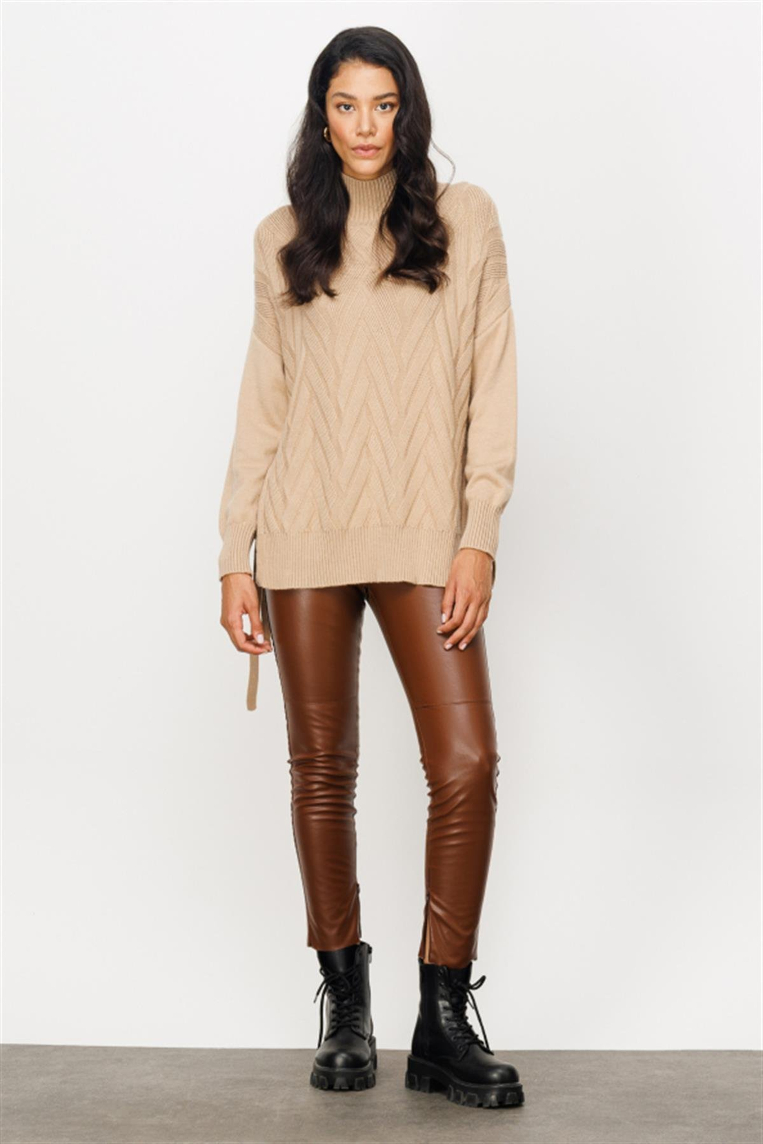 HIGH COLLAR SIDE-LACING SWEATER MINK (24K-ON7305-043)