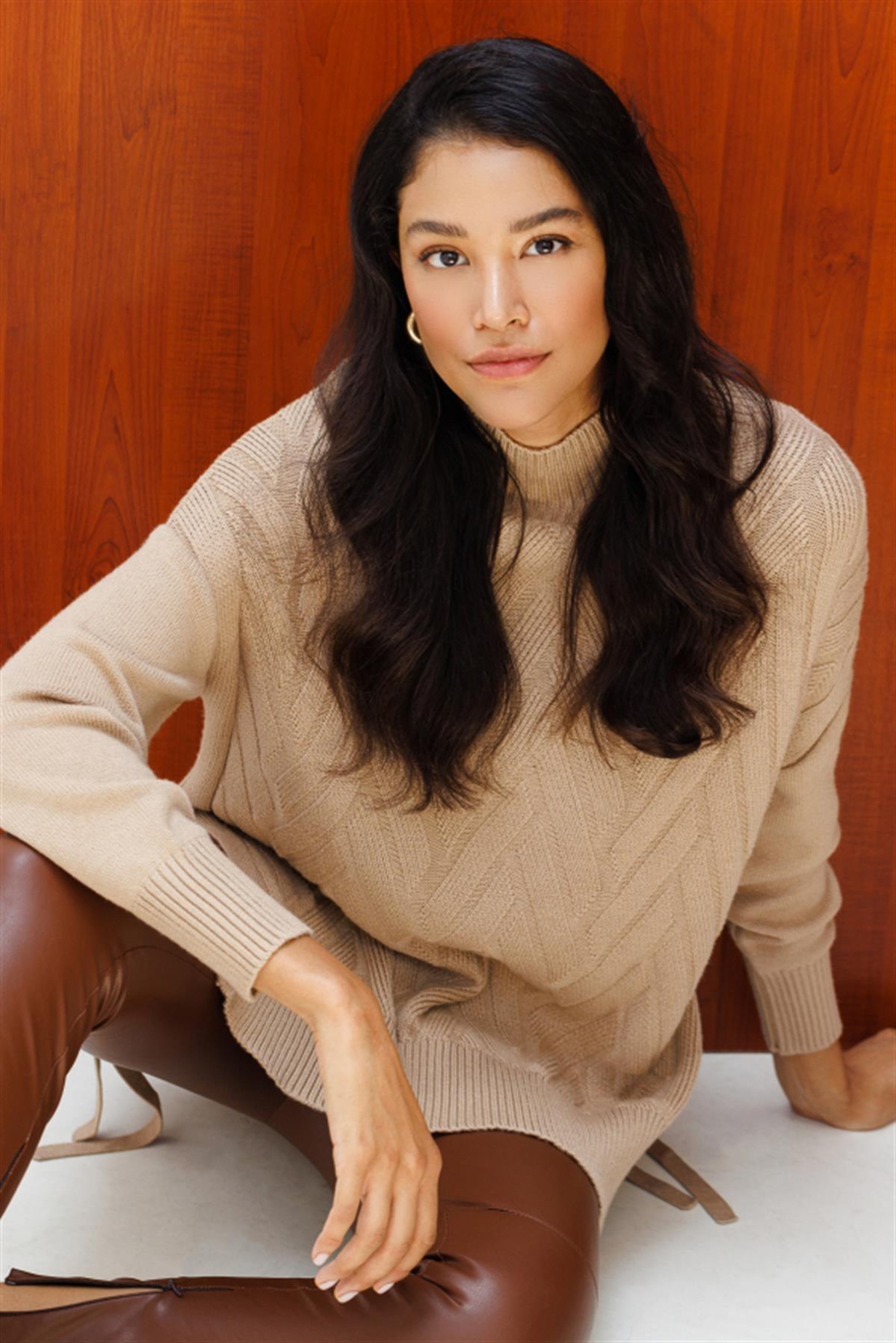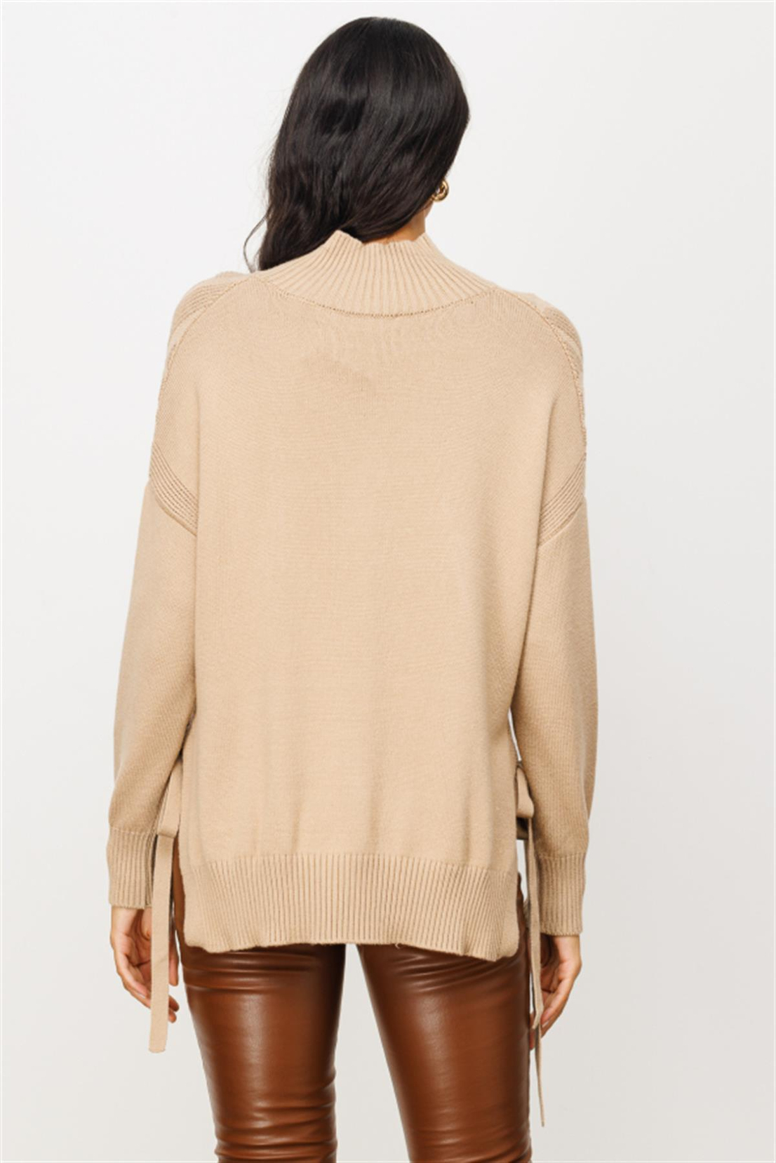 HIGH COLLAR SIDE-LACING SWEATER MINK