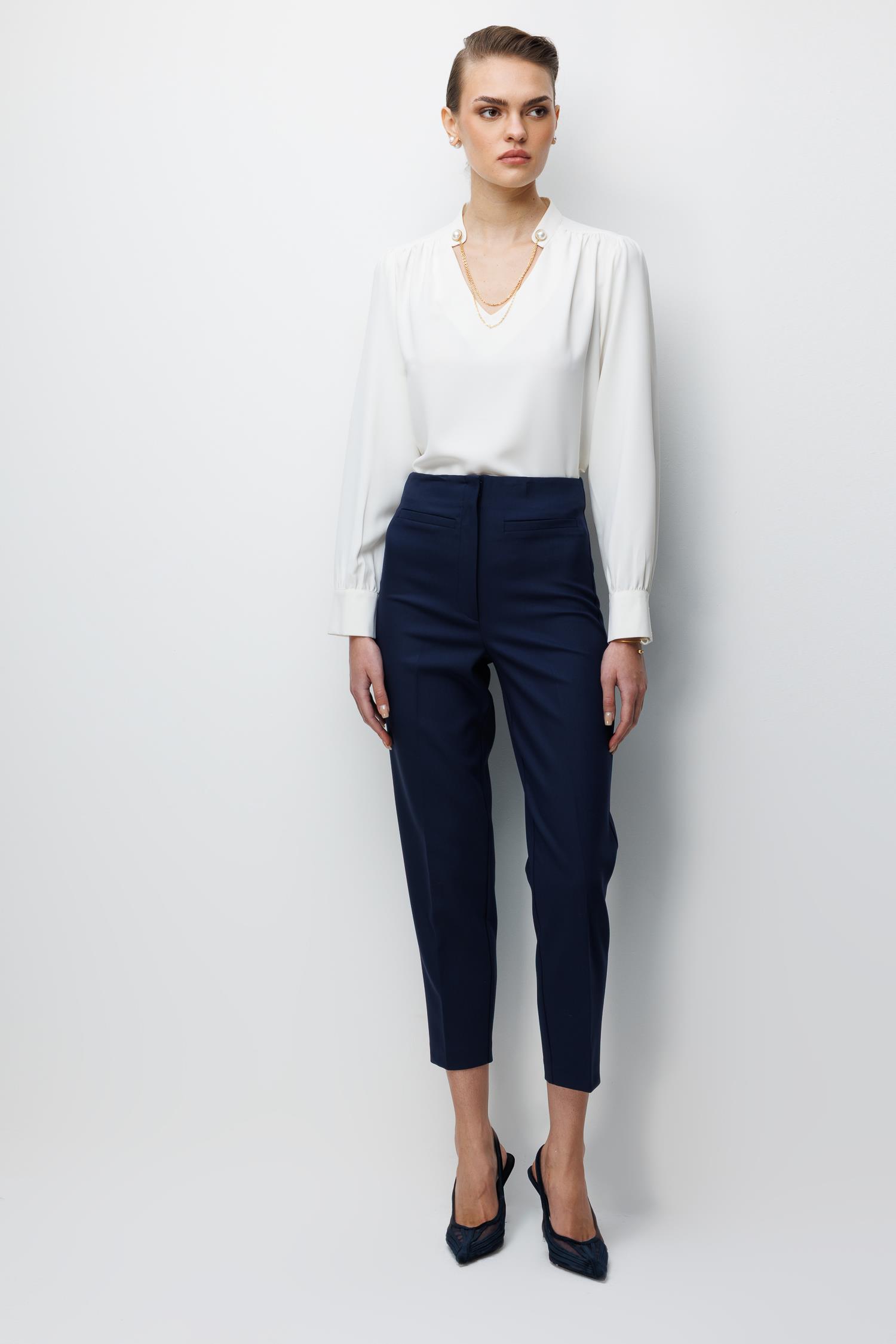 Flat Detail High-Waisted Trousers NAVY BLUE (26K2306-028)