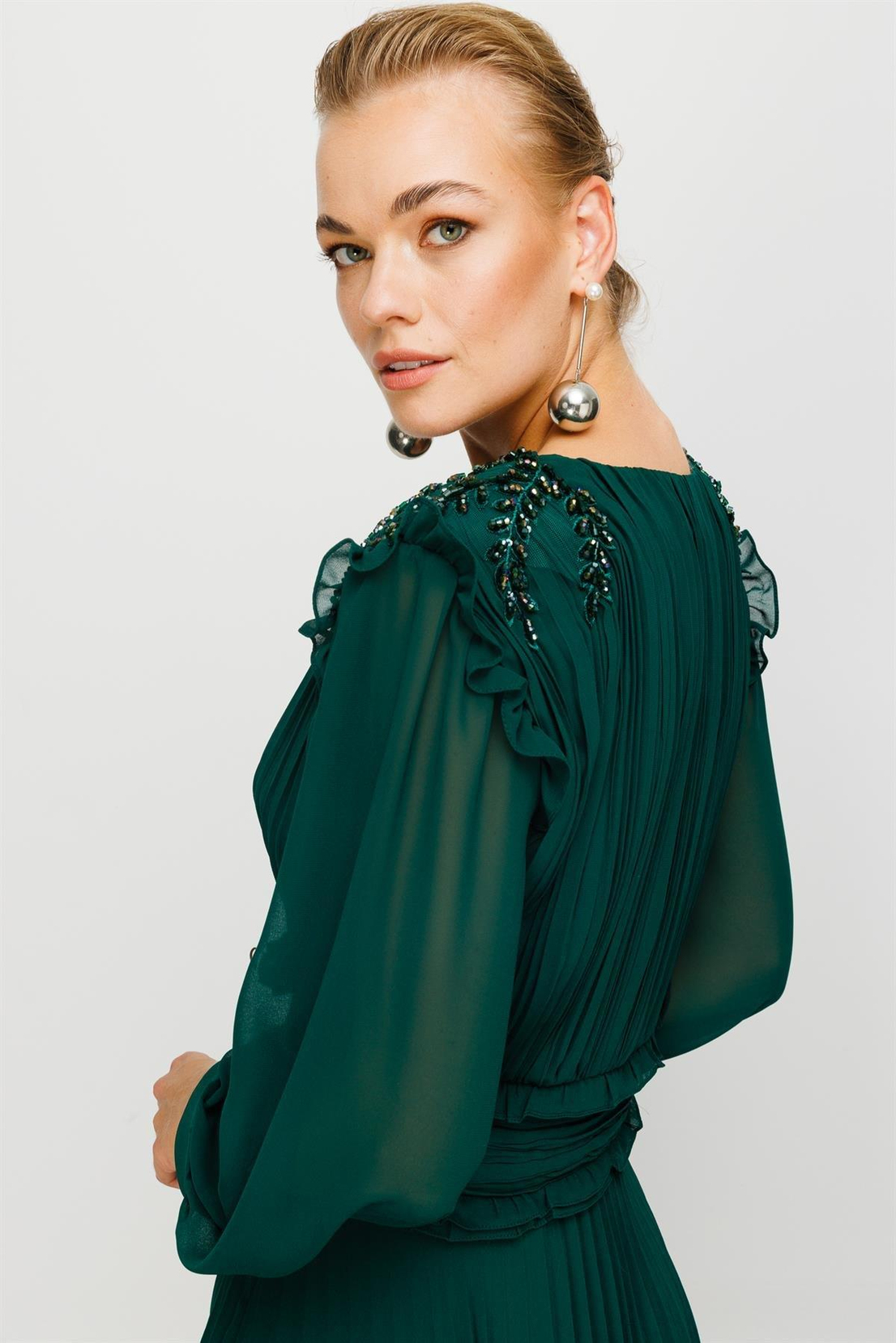 Nefeli Women's Embroidered Detail Emerald Dress (23Y-NFL1424-033)