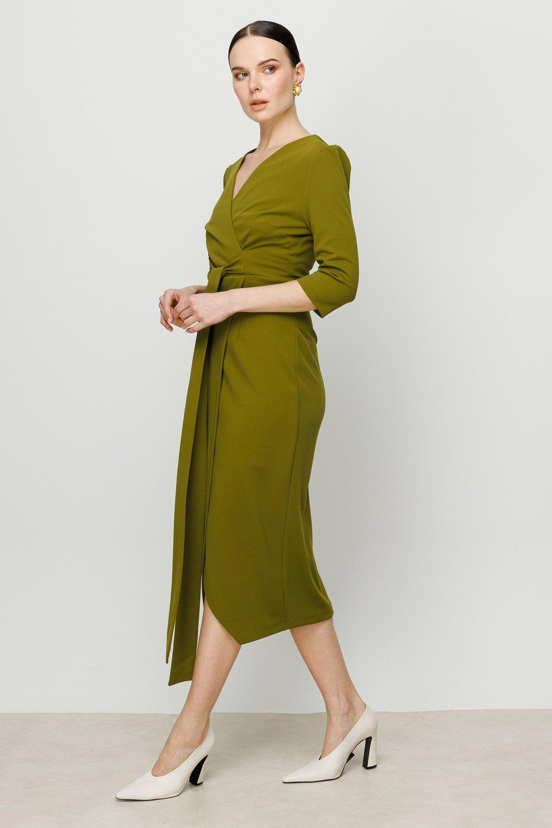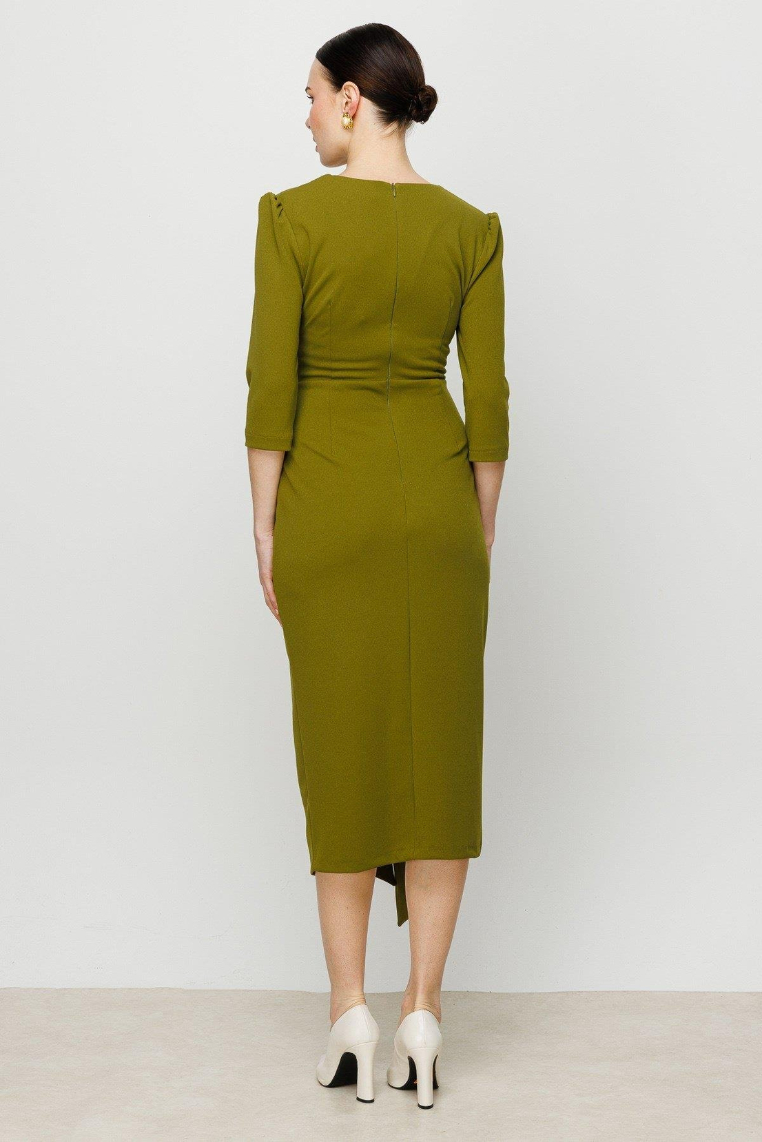 Nefeli Women's Olive Green Double Breasted Crepe Dress (23Y-NFL102-042)