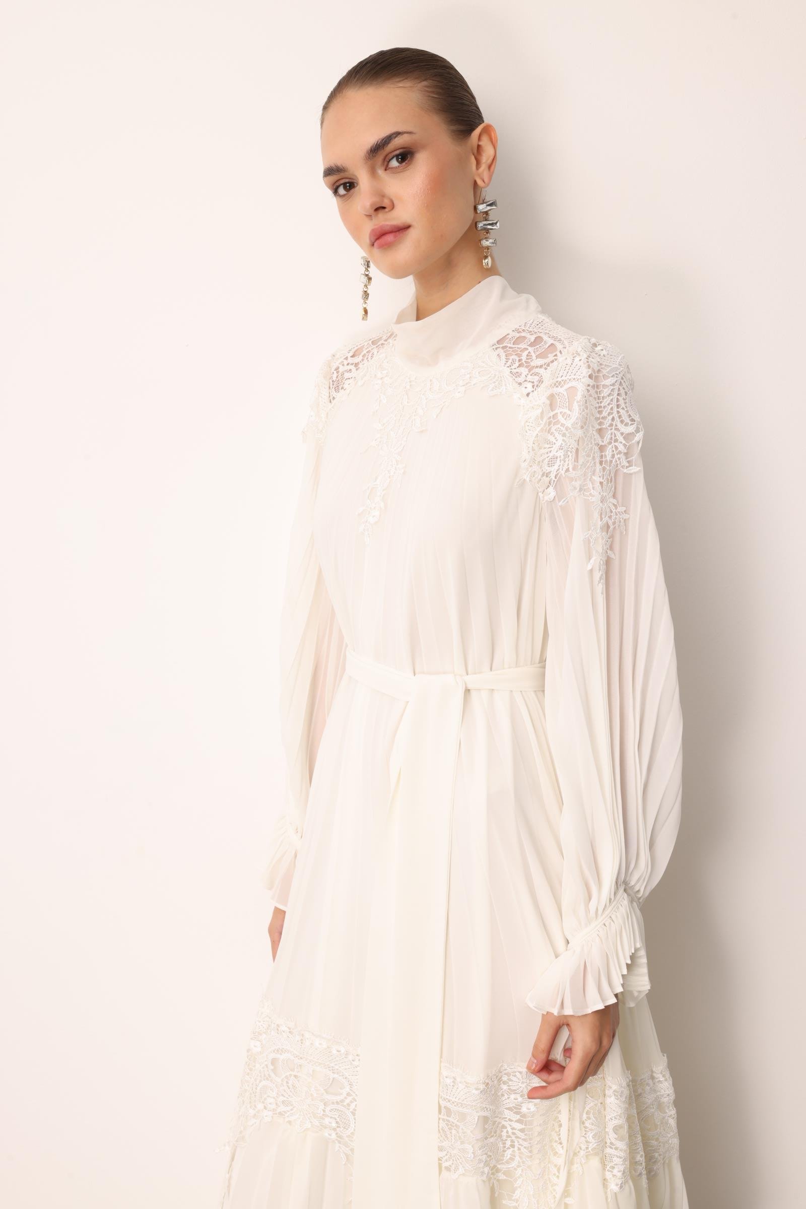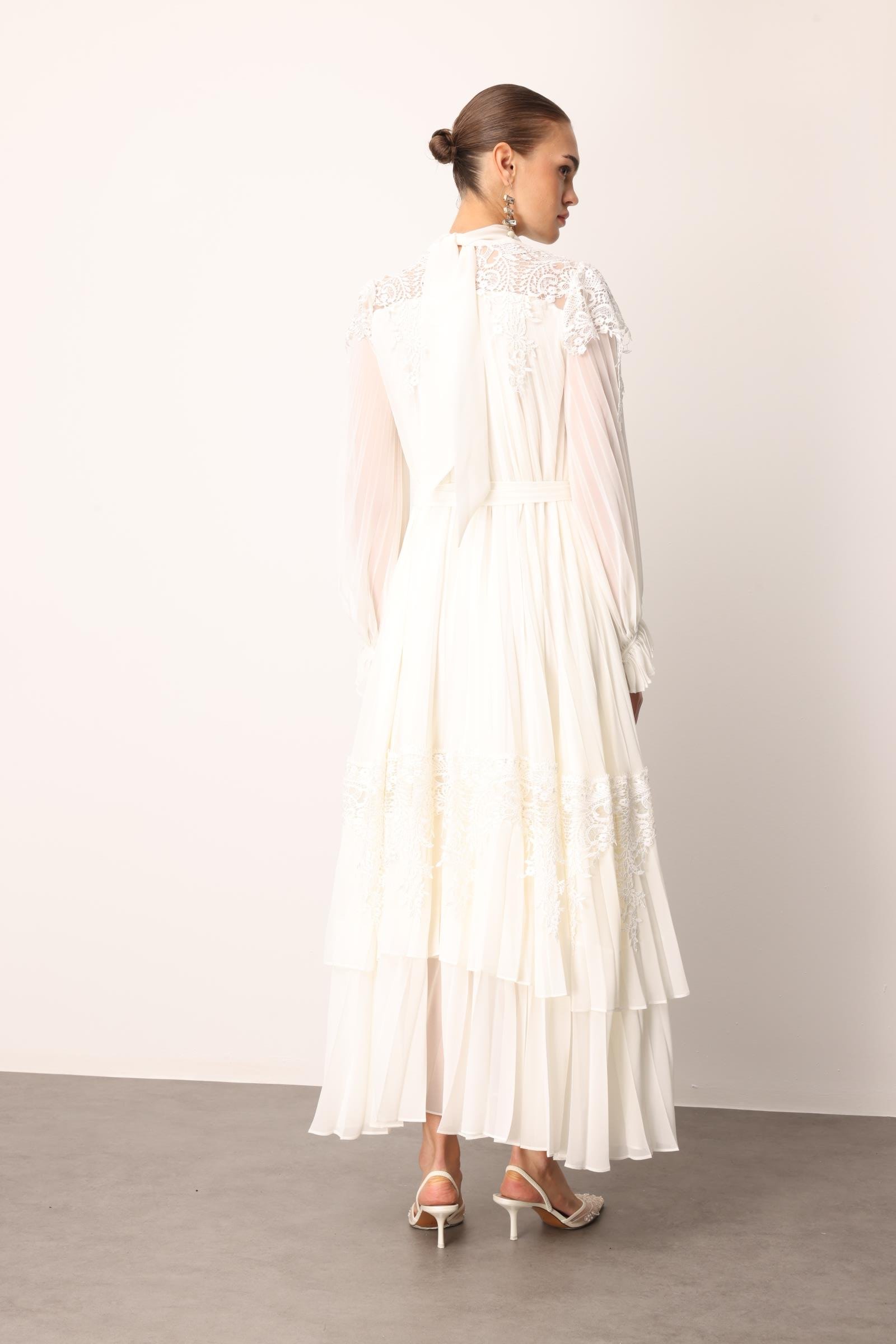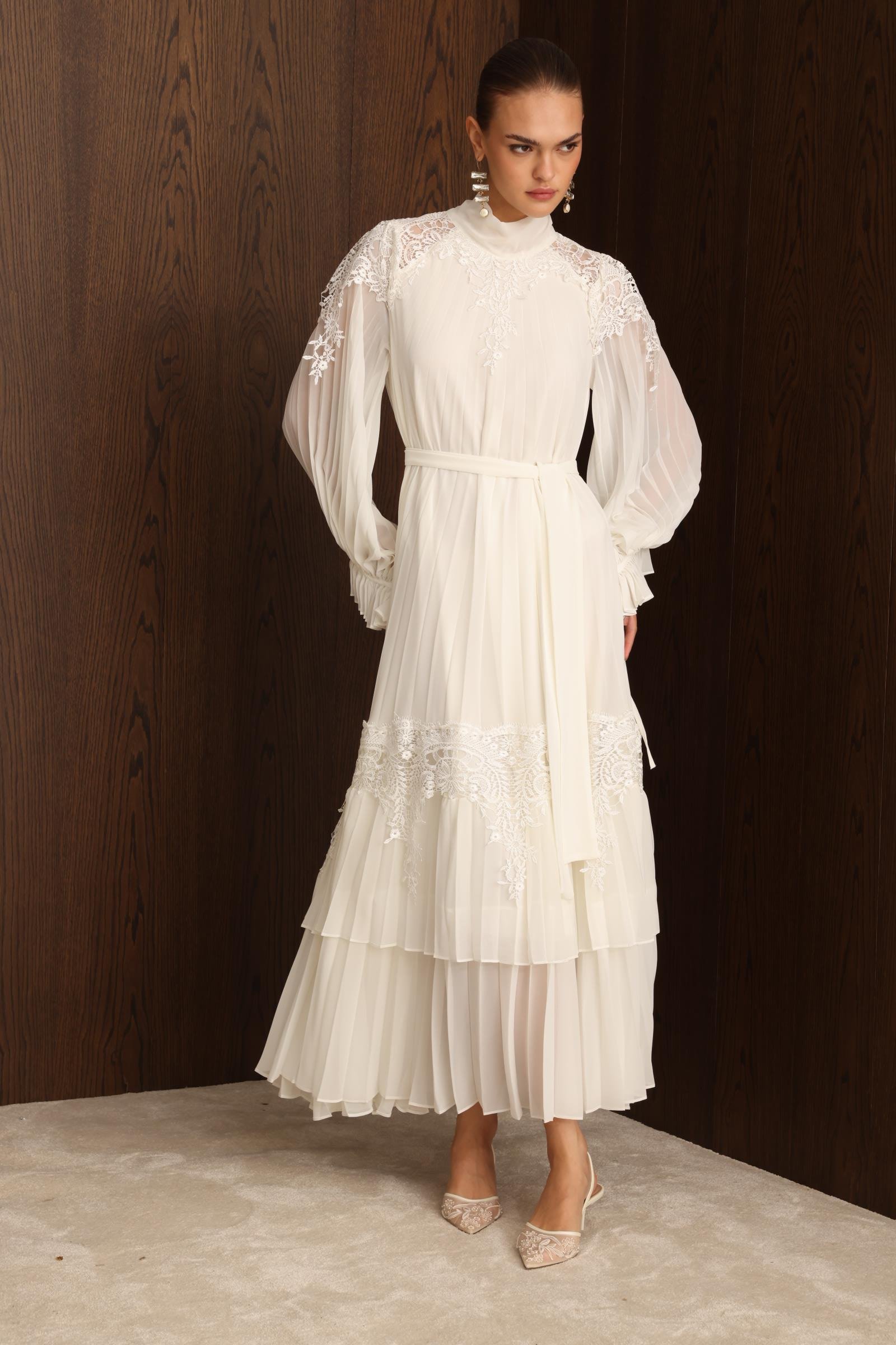 Şerit Dantelli Maxi Boy Soley Elbise EKRU (25Y3115-012)