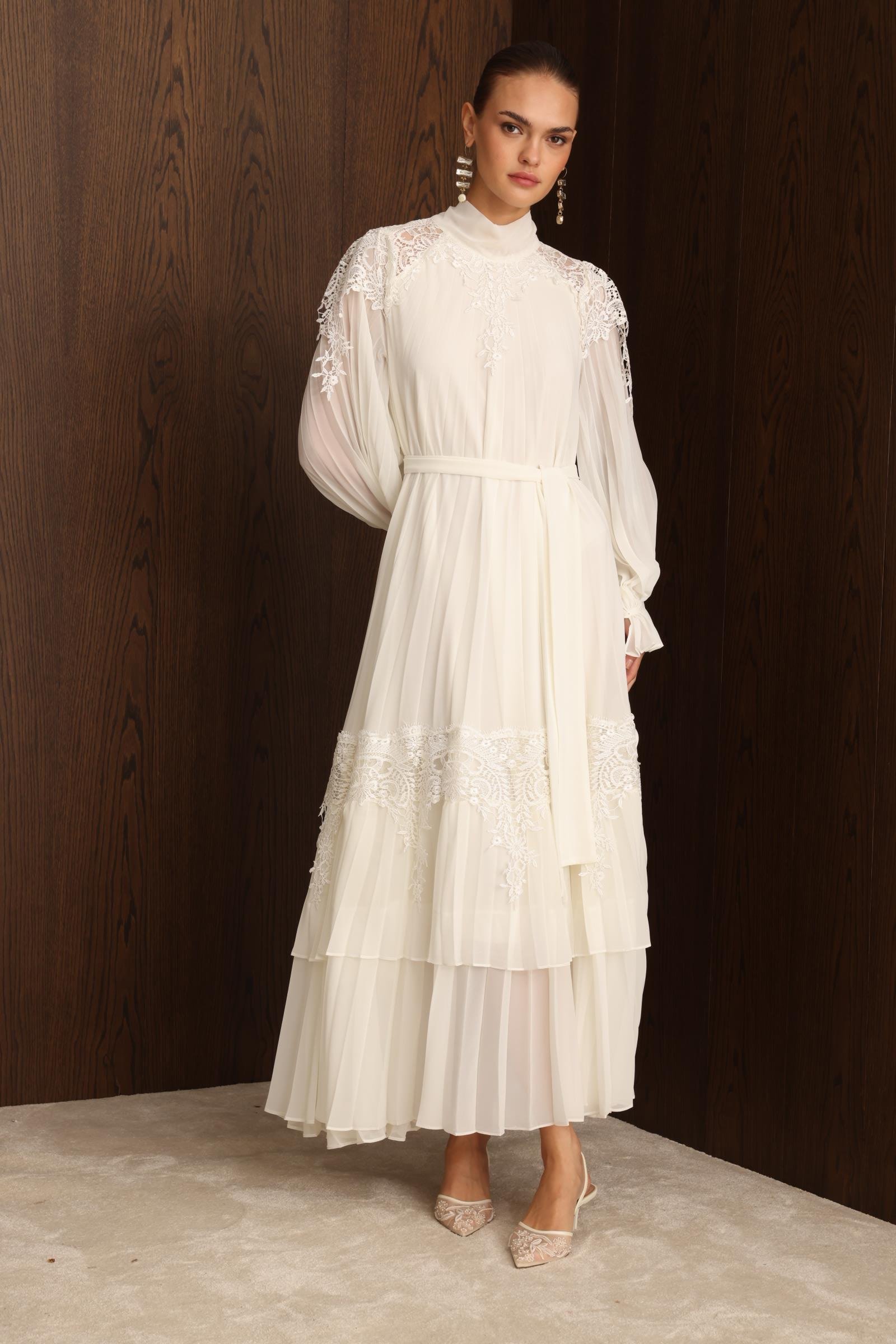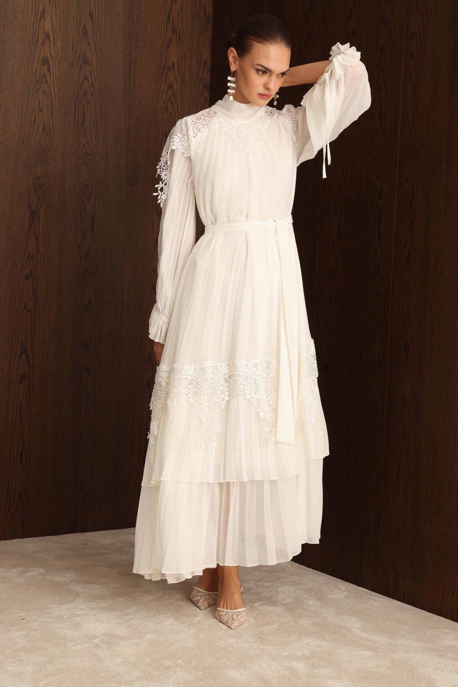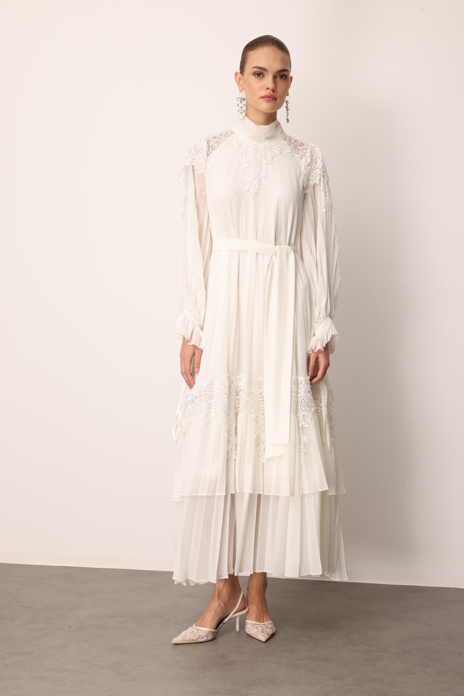 Şerit Dantelli Maxi Boy Soley Elbise EKRU (25Y3115-012)