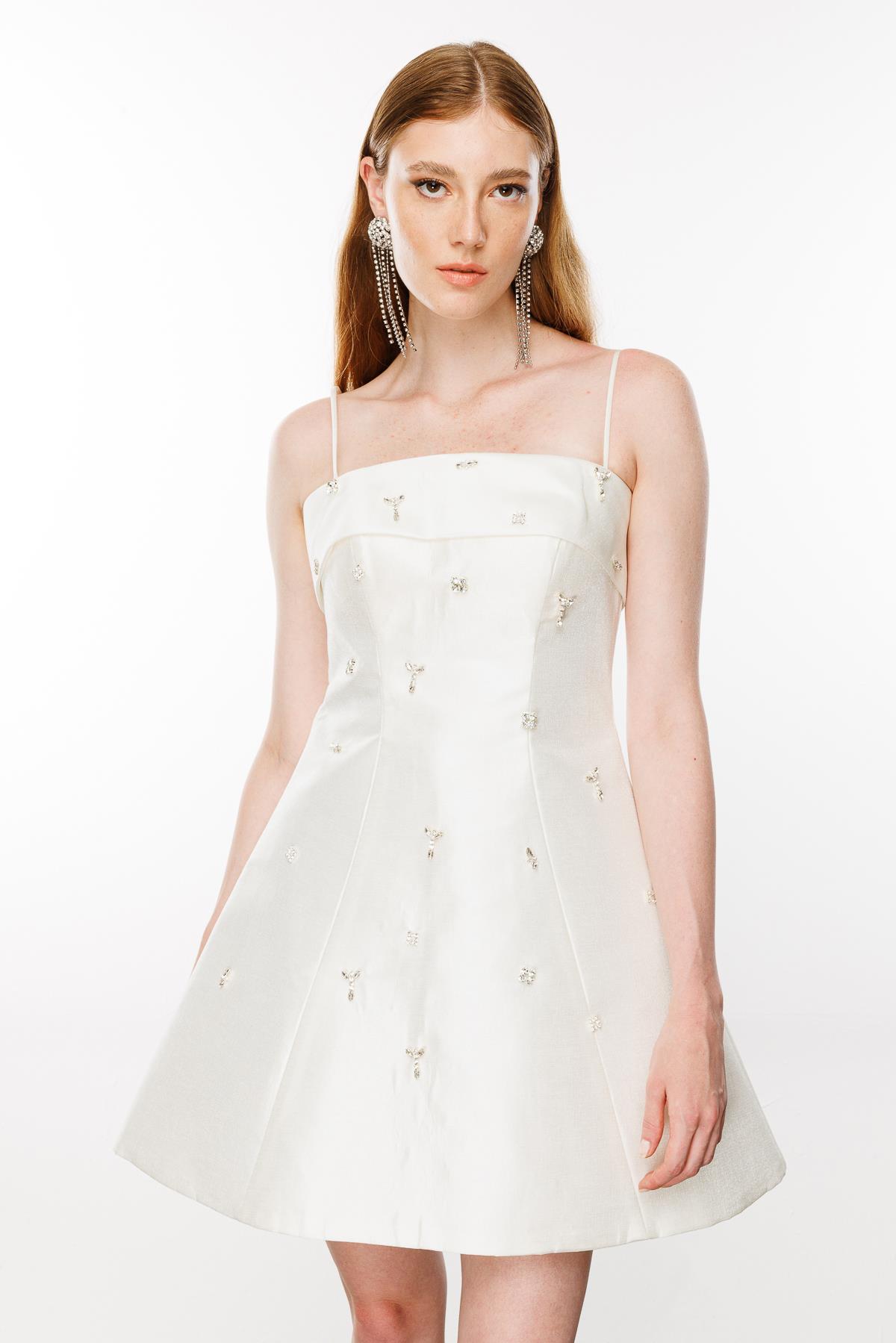 Thin Strappy Dress with Stone Accessories BEIGE (24Y-RNG7253-001)