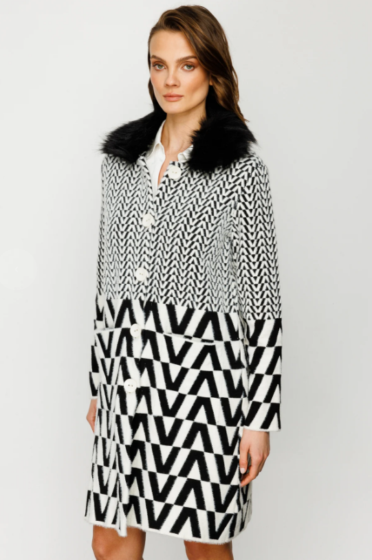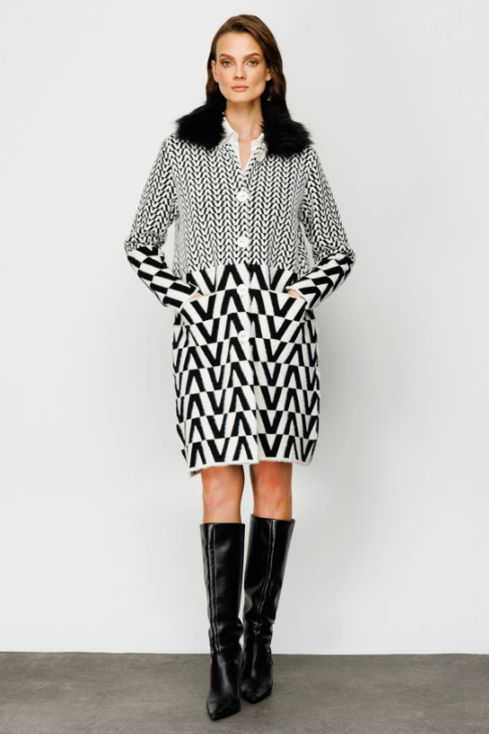 Long V Pattern Cardigan BLACK (24K-ON3935-002)