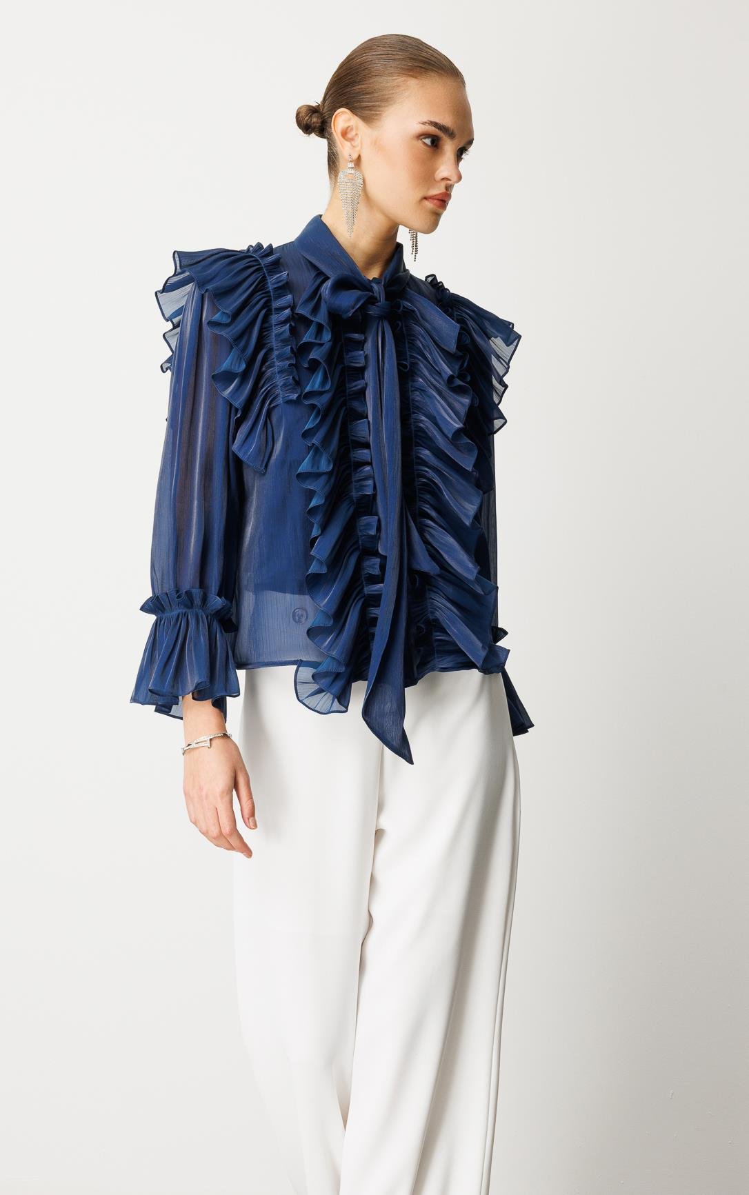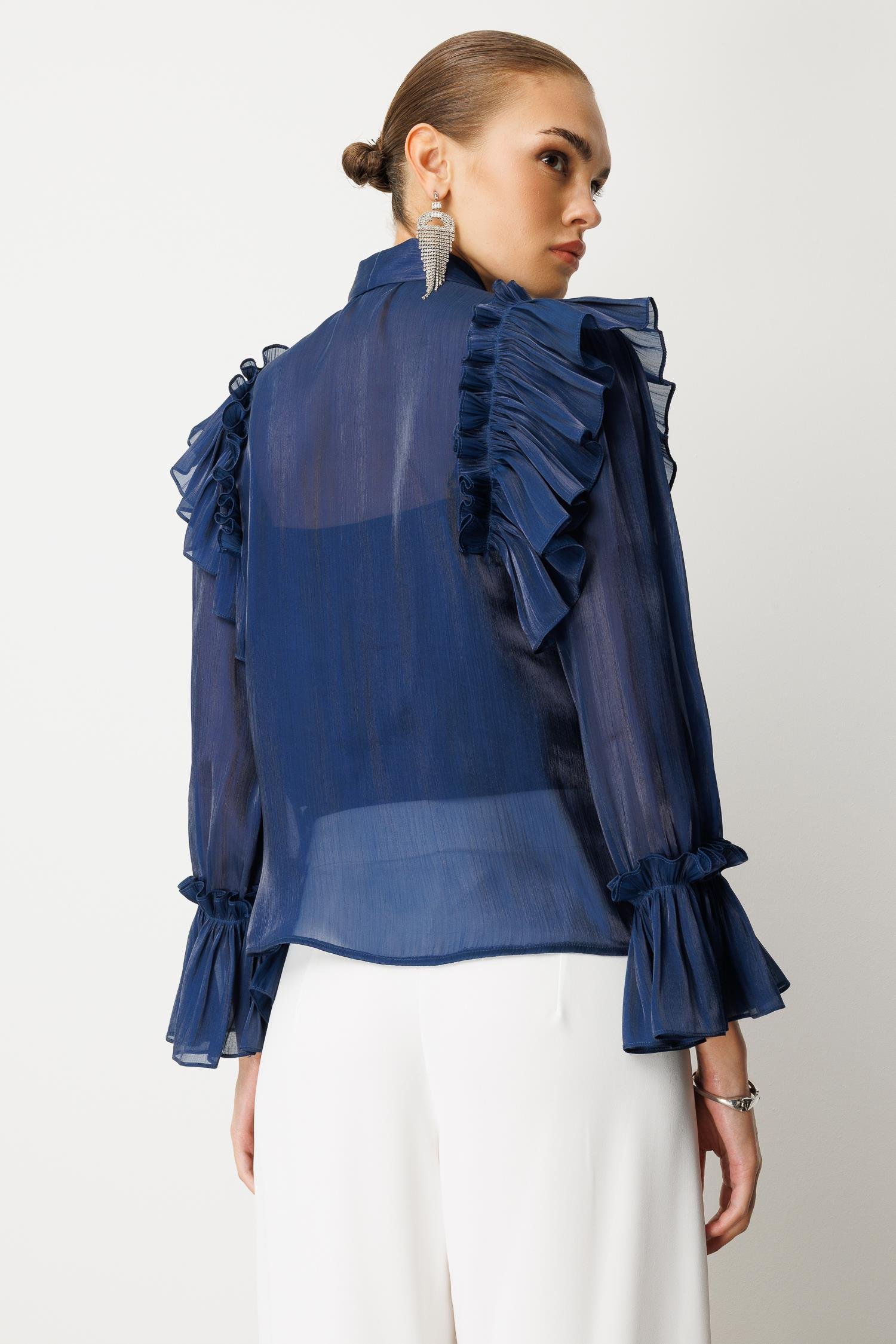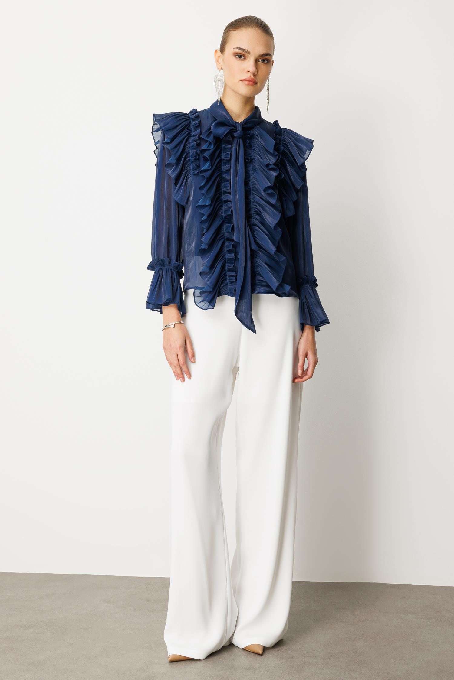 Fular Detaylı Organze Bluz LACİVERT (26K8303-028)