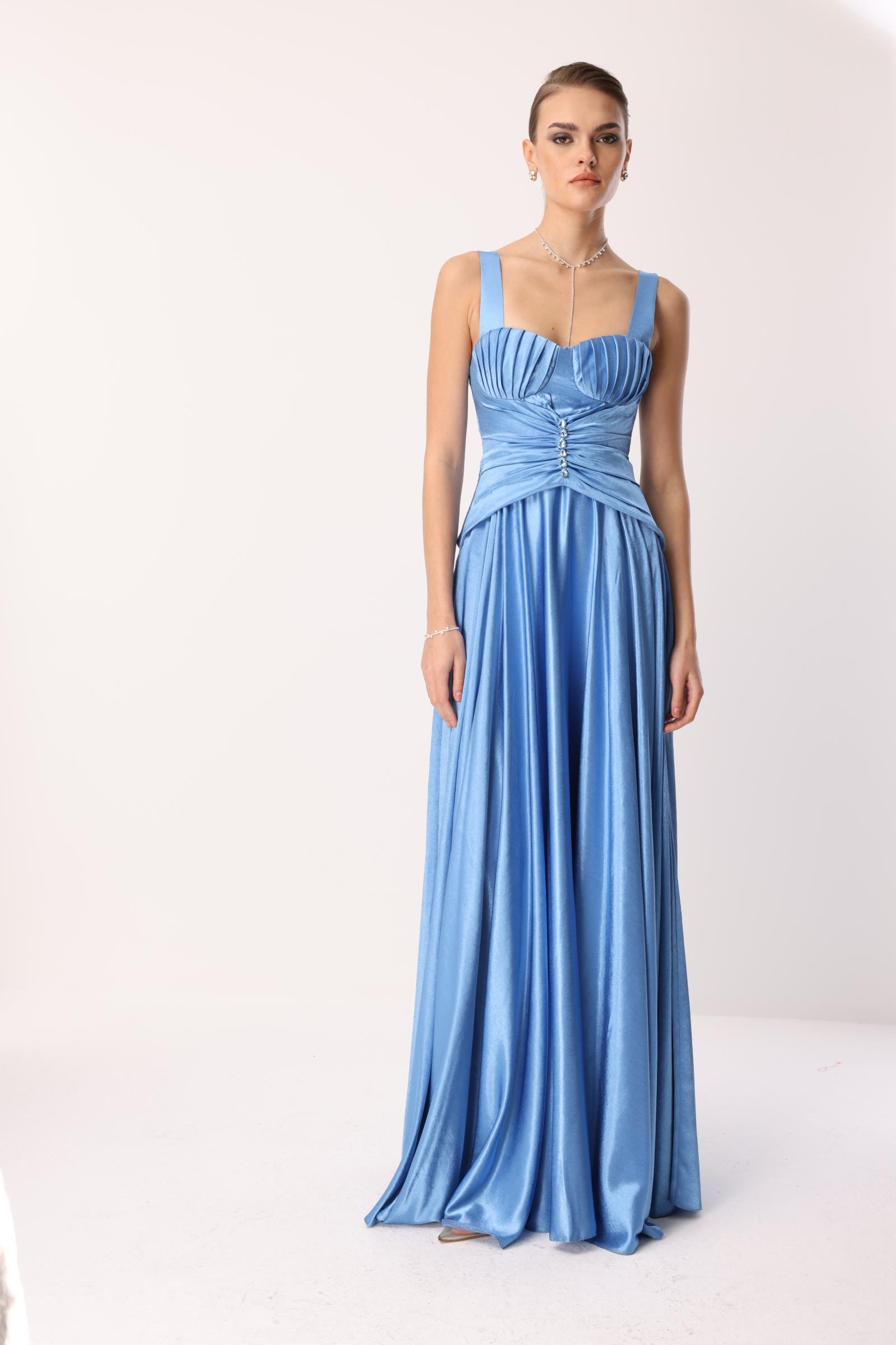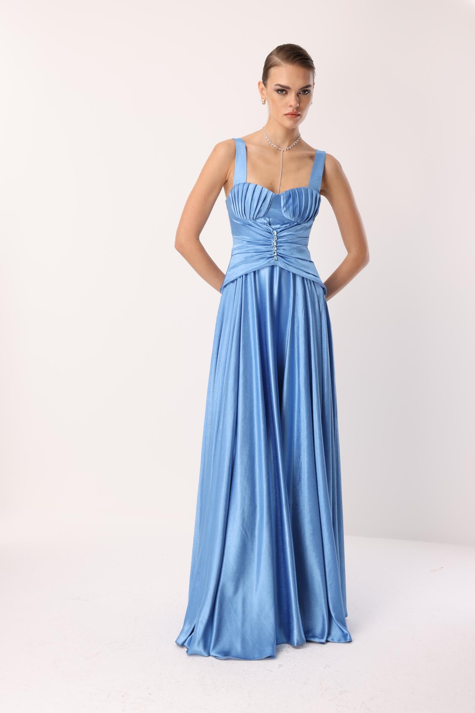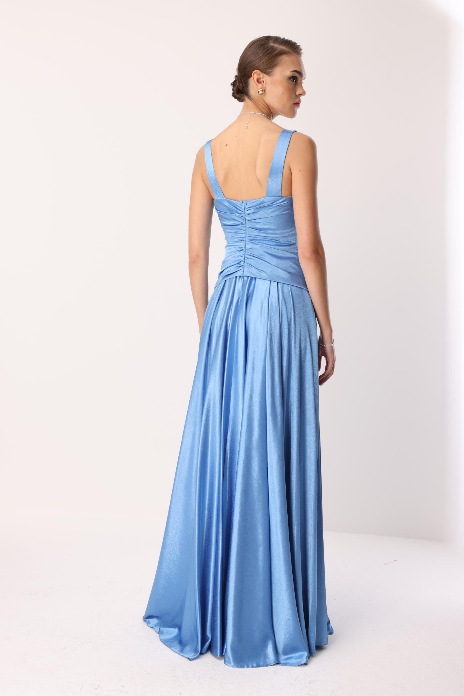 Akıcılık: Kumaşın satenimsi yapısı ve hafifliği, elbisenin yürüyüş sırasında zarif ve göz alıcı bir akışkanlık kazanmasını sağlar.