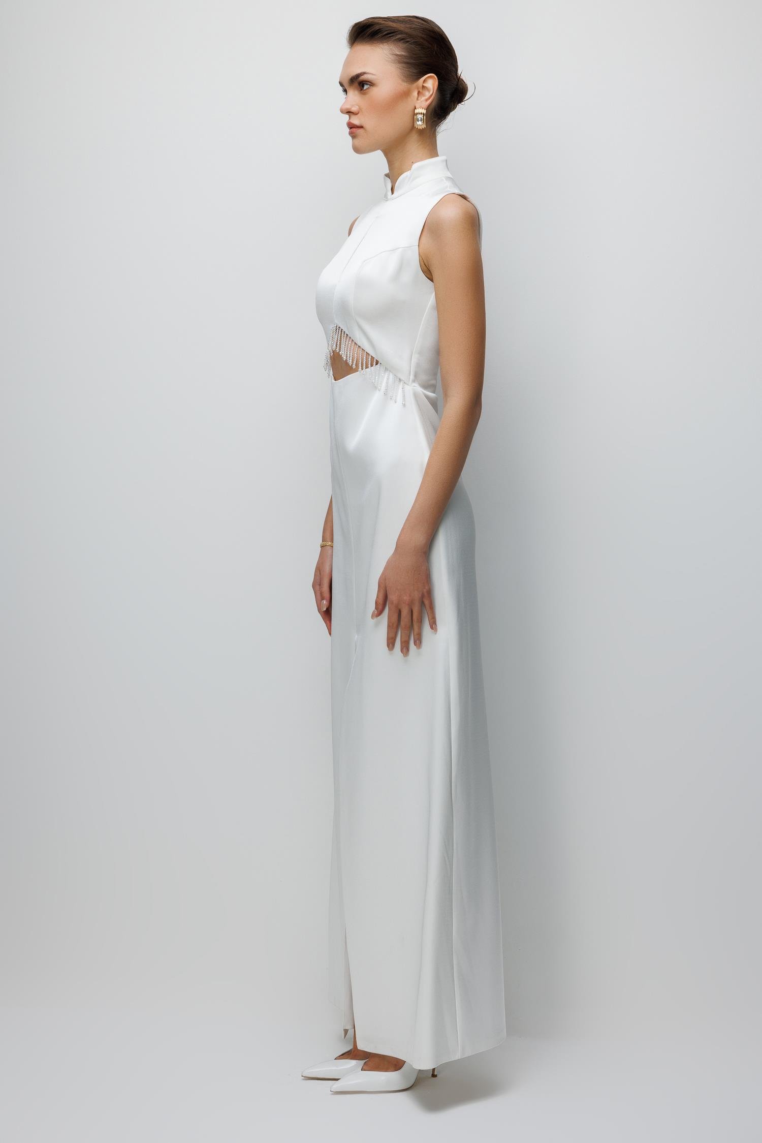 Hakim Yaka Boncuklu Elbise EKRU (26KALN2339-012)