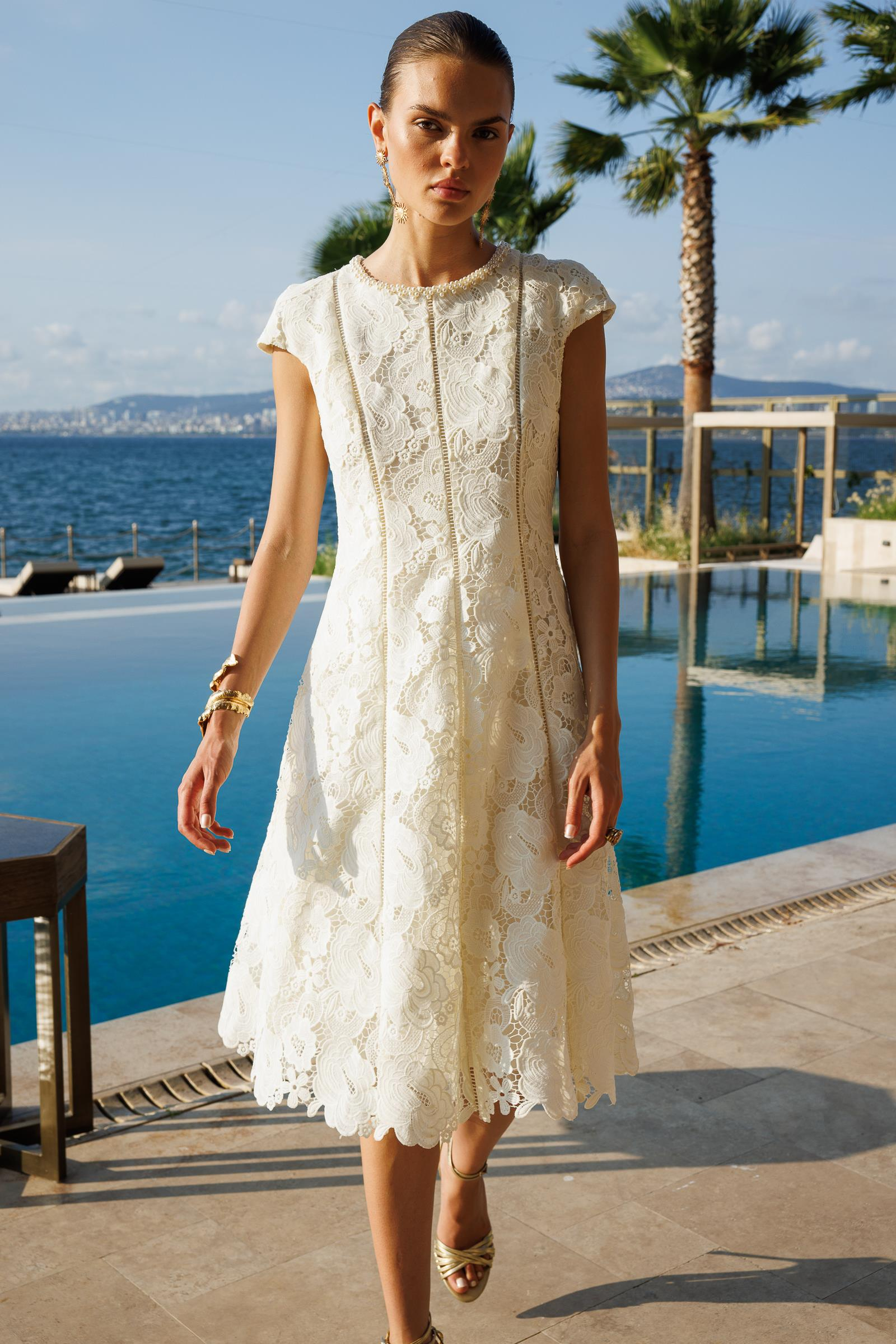 İnci İşleme Detaylı Dantel Elbise EKRU (25Y3122-012)
