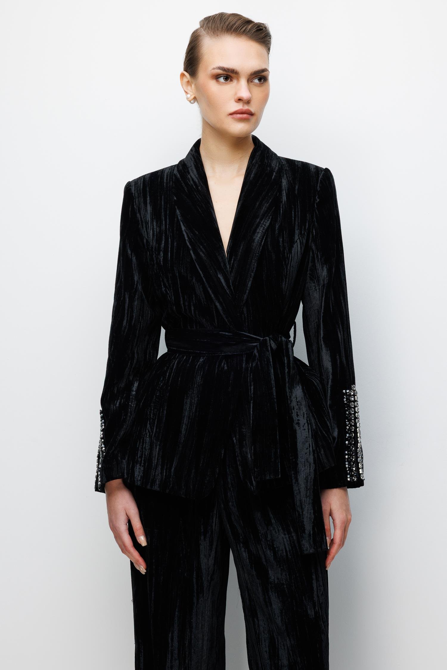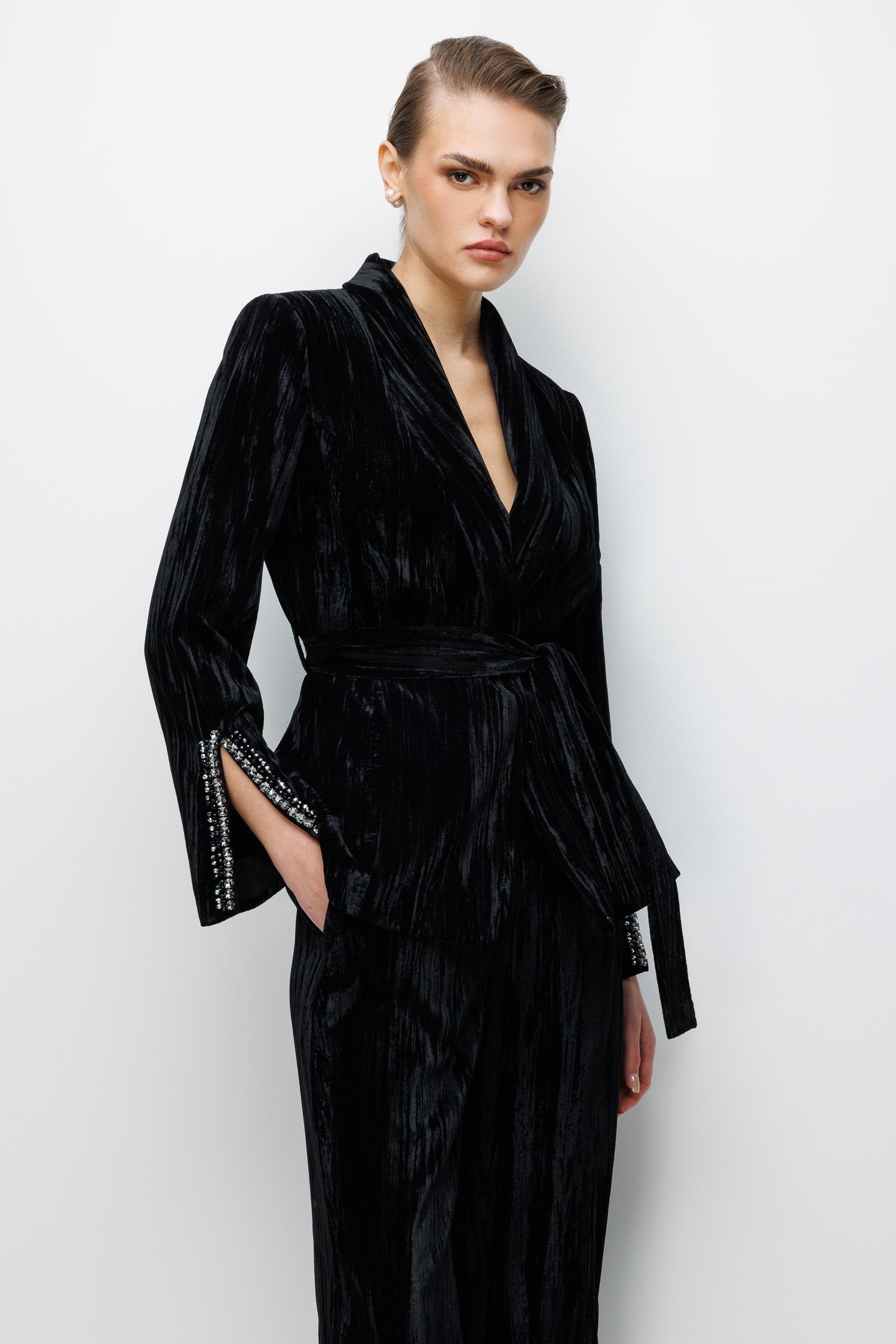 İşleme Detaylı Kadife Ceket SİYAH (26K5304-002)