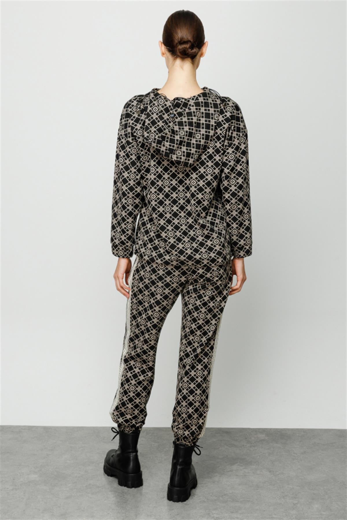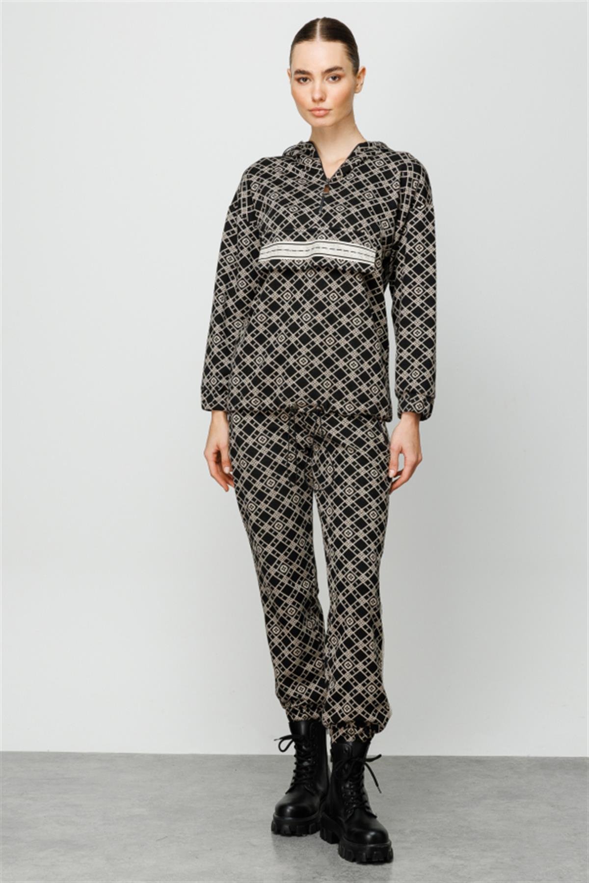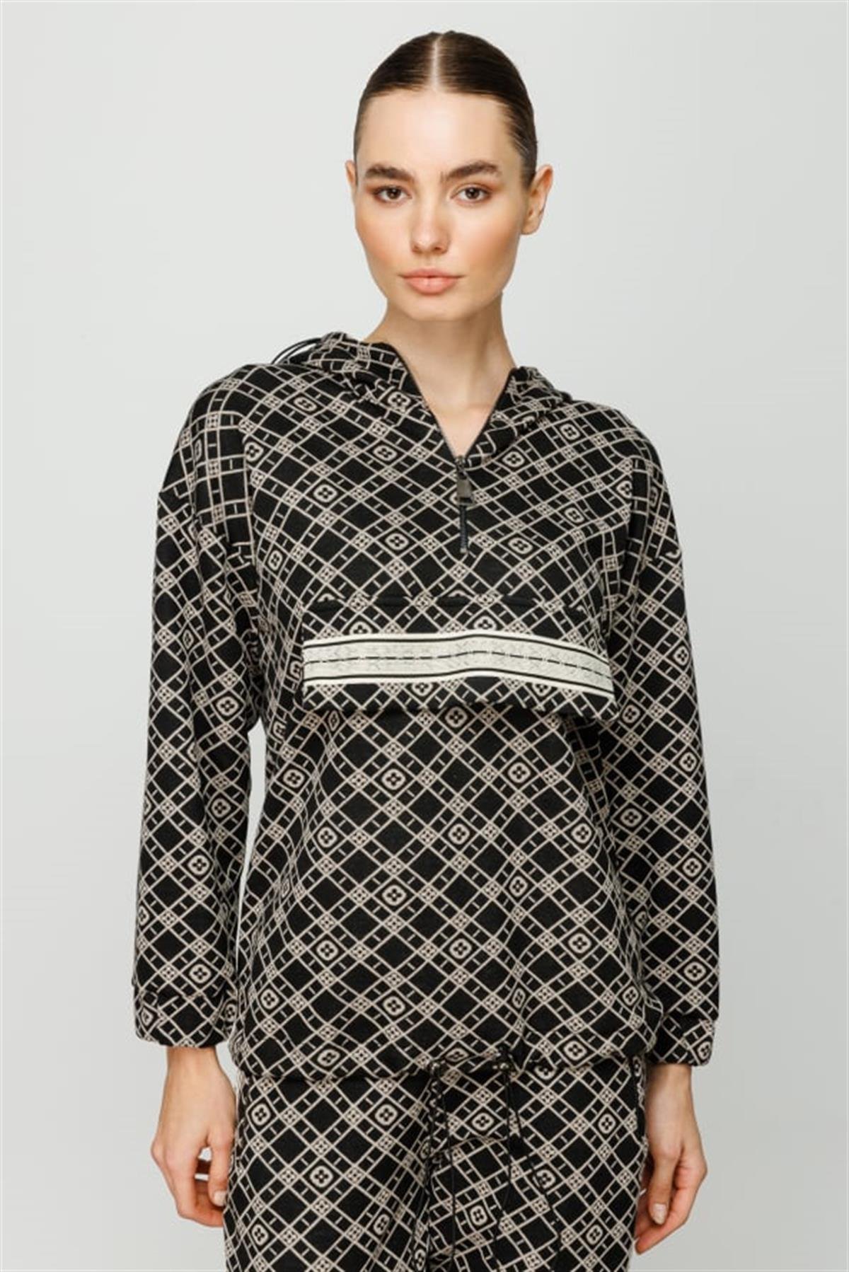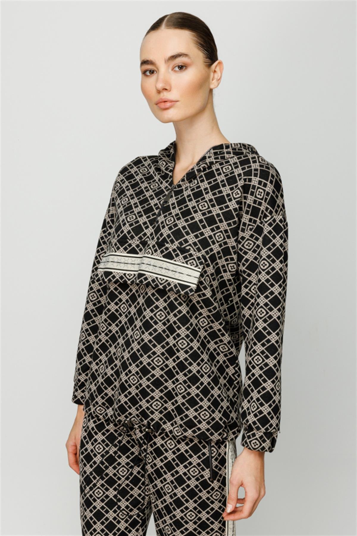 Kapüşonlu Desenli Eşofman Üstü (24K-ON6341)
