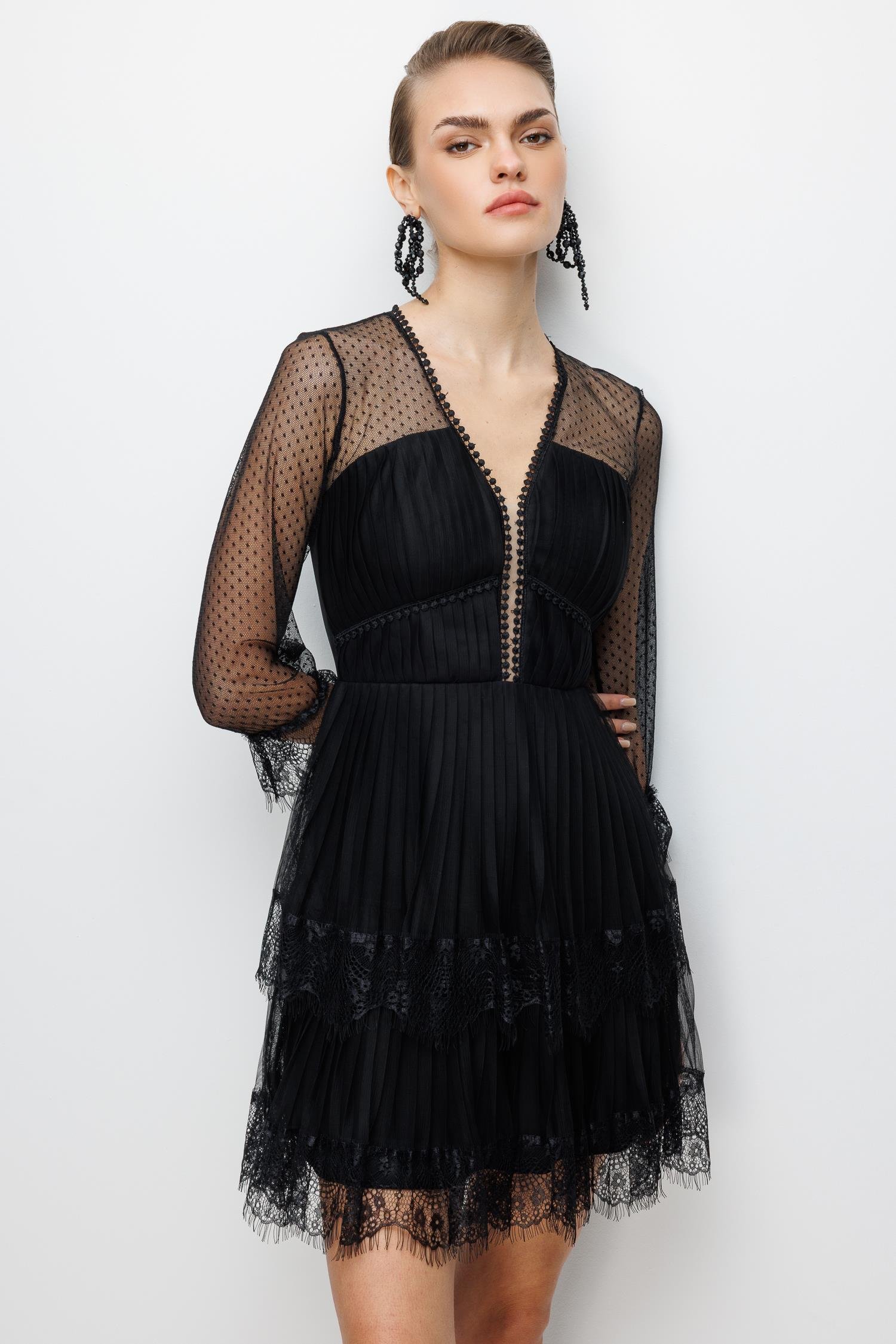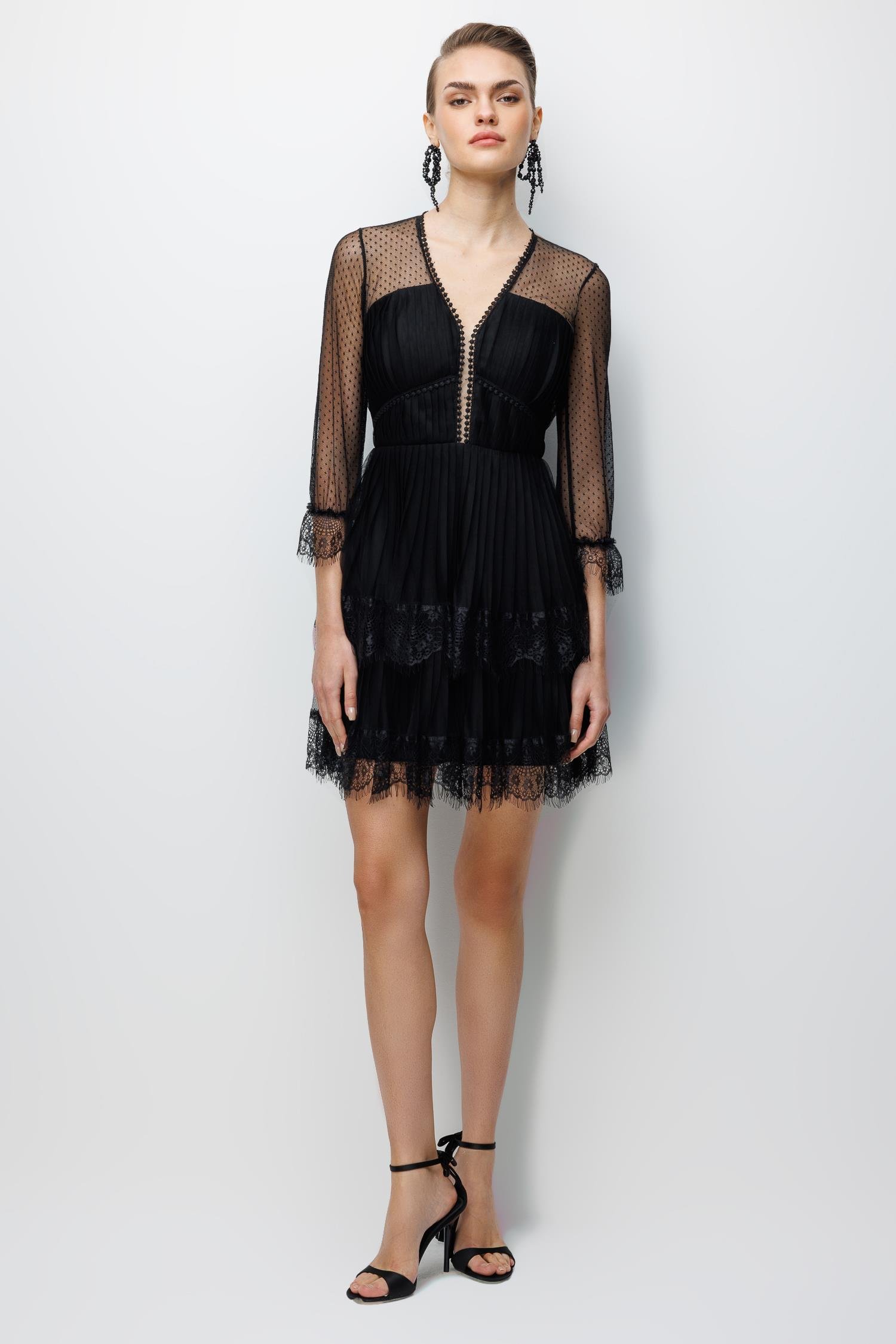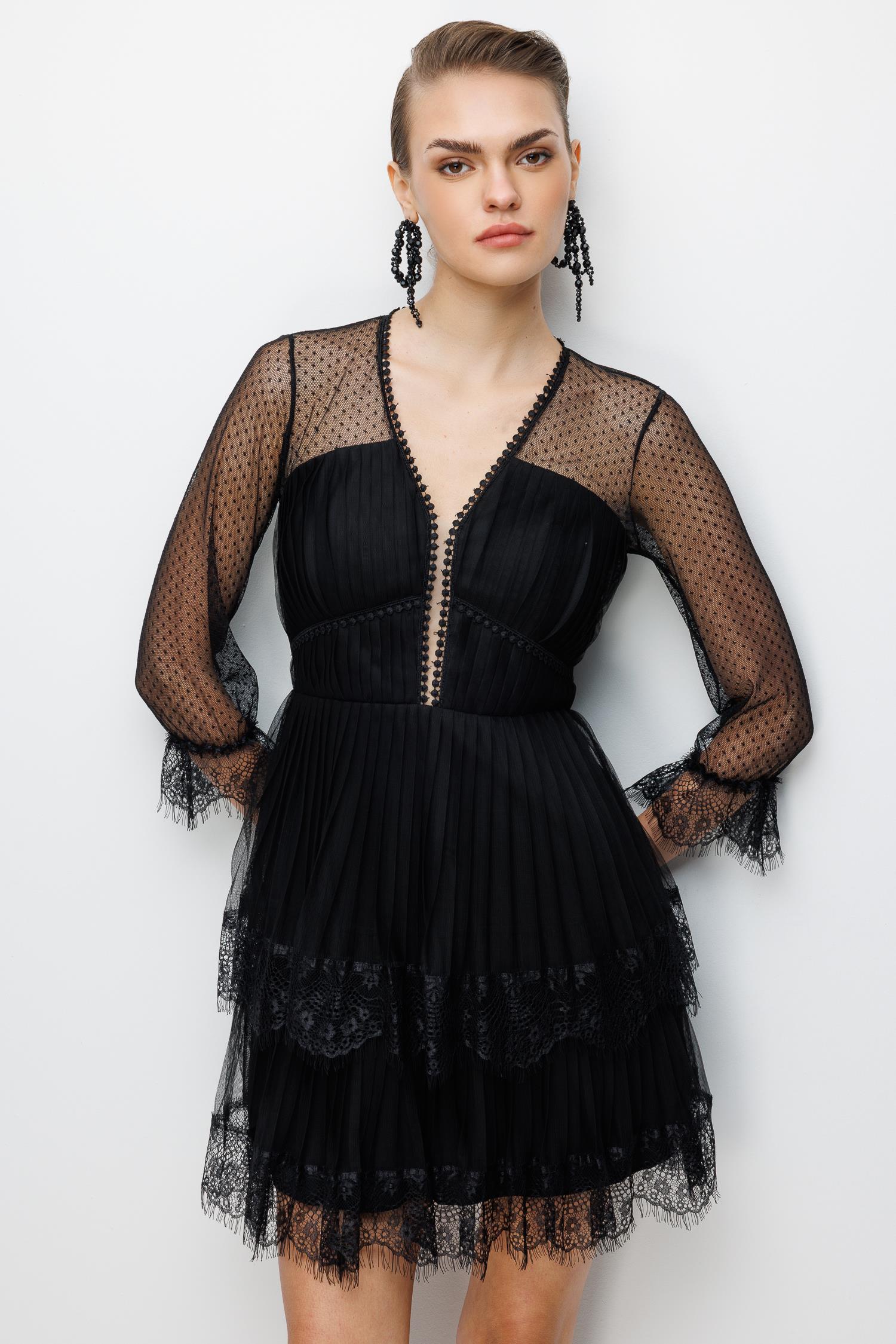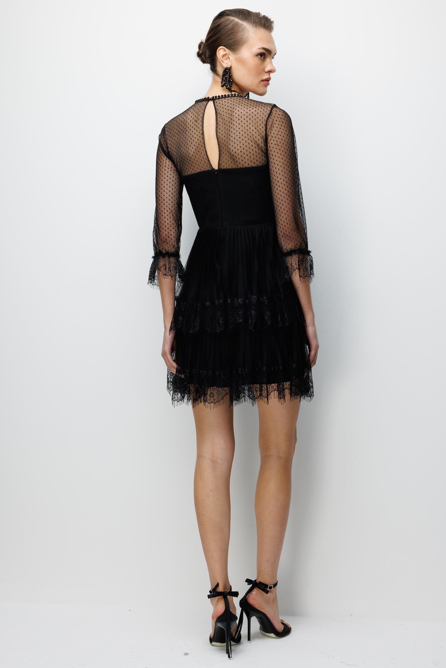 Kolları File Detaylı Mini Dantel Elbise SİYAH (26KALN2001-002)