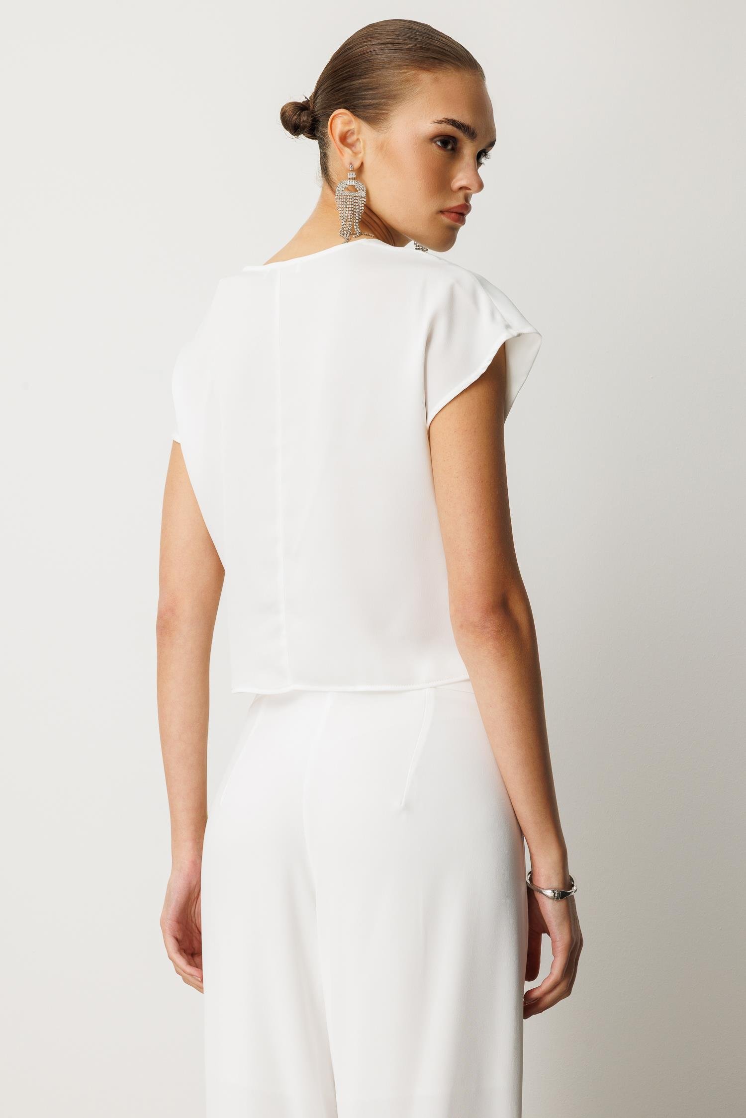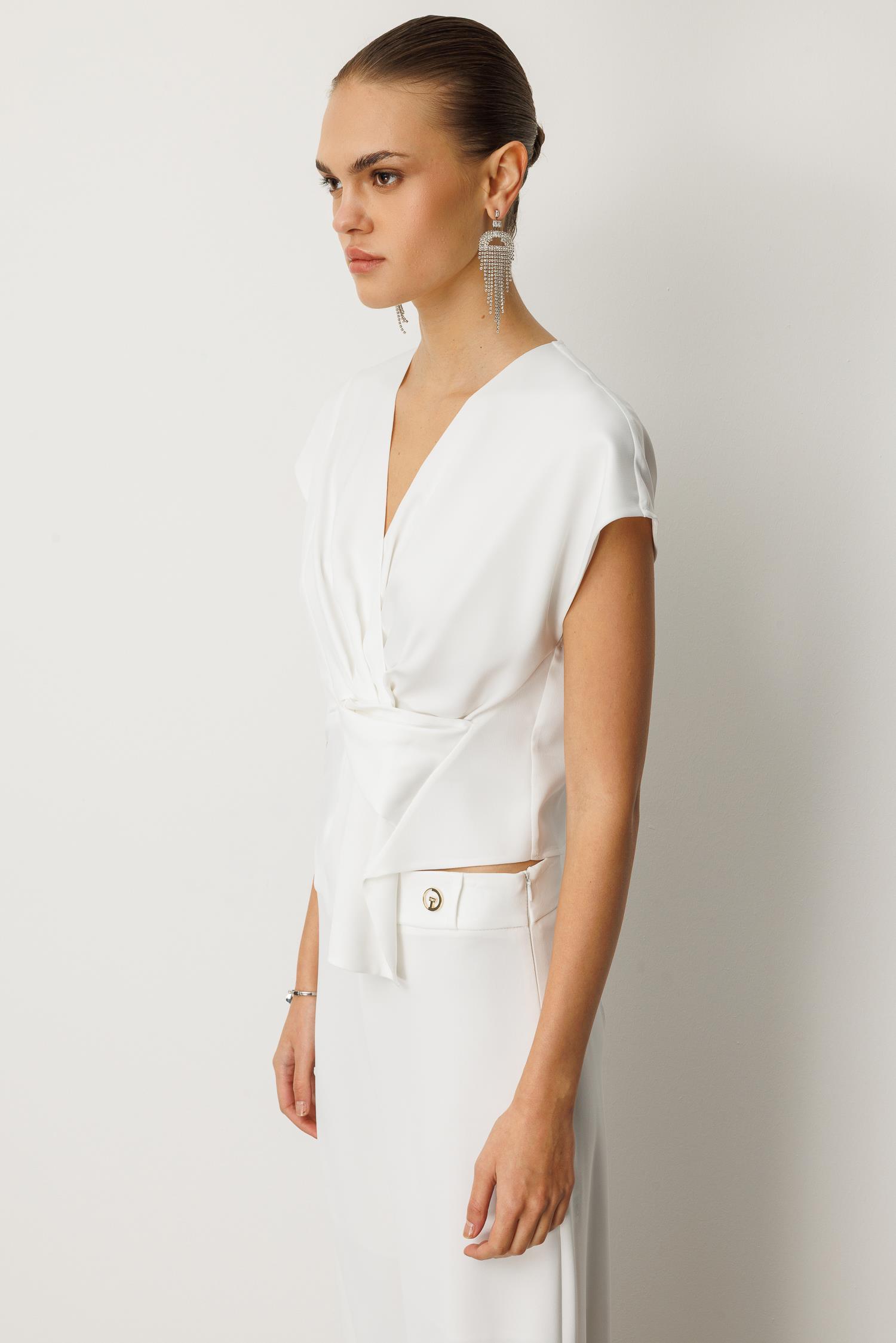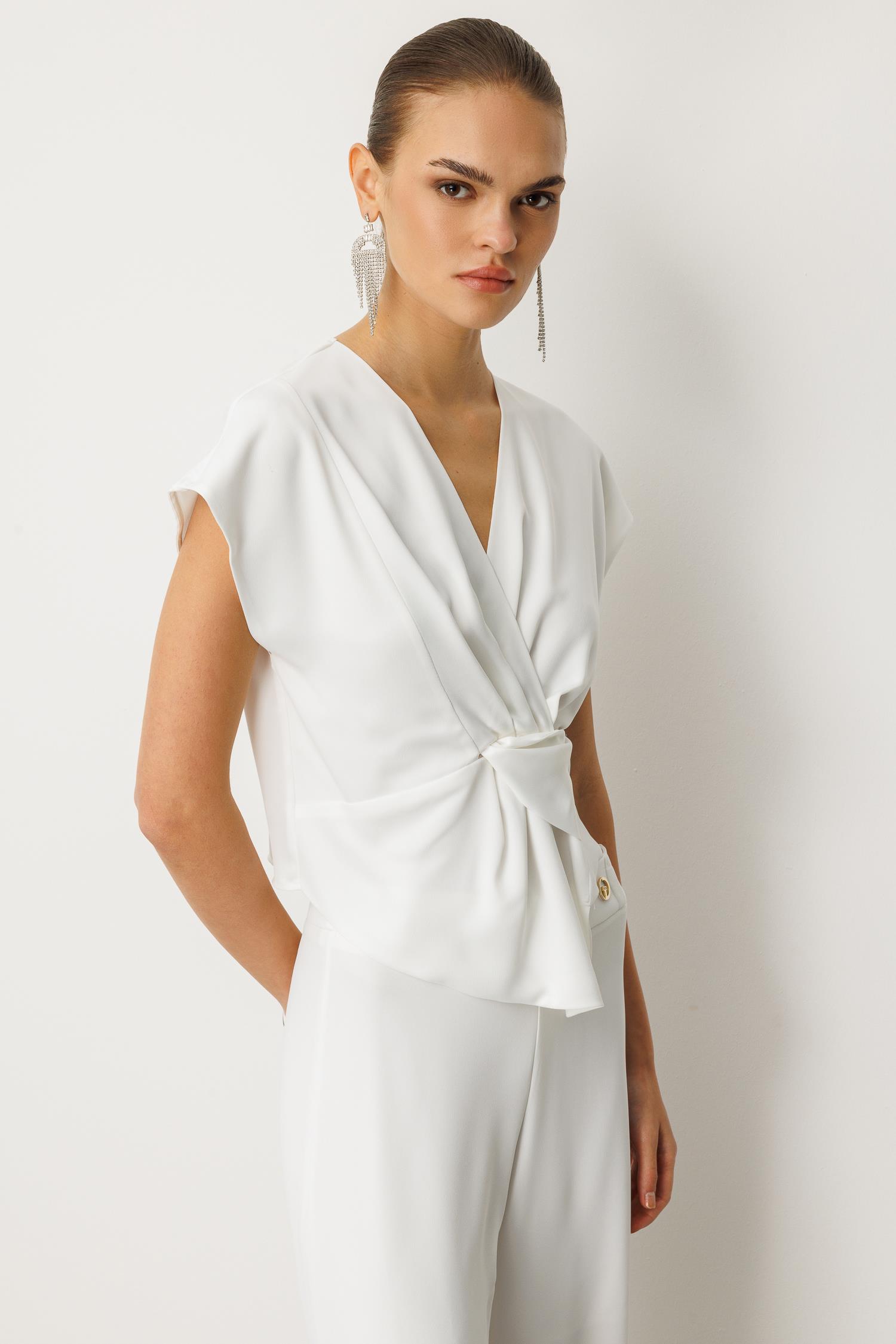 Kuruvaze Drapeli Bluz BEYAZ (25Y8202-003)