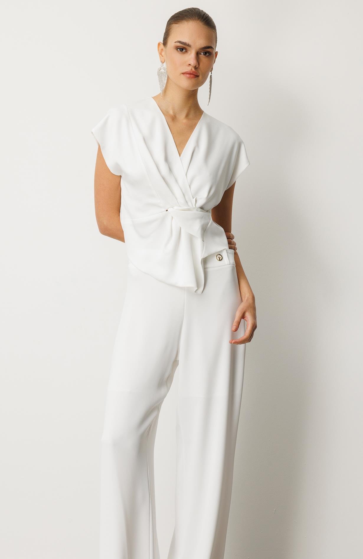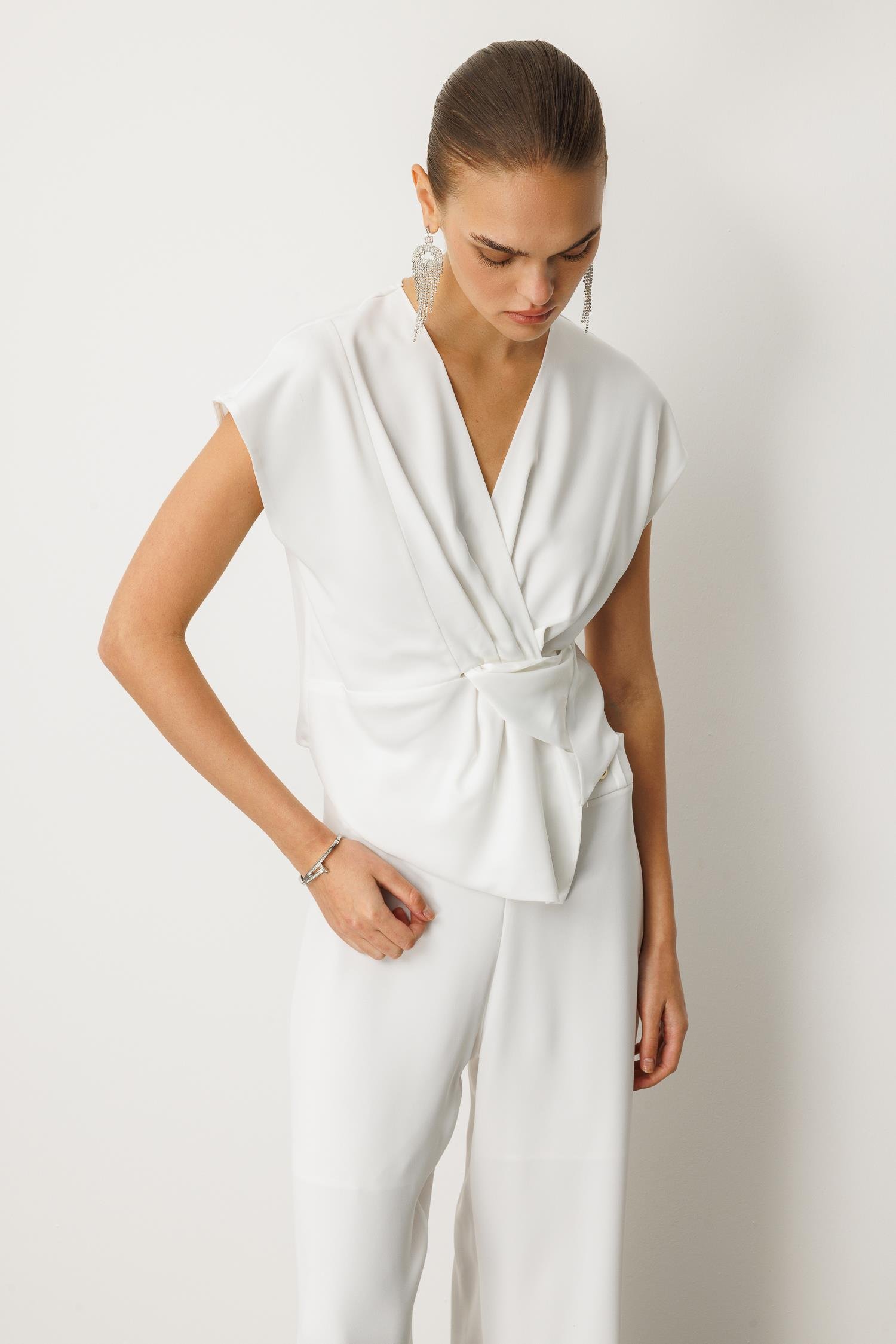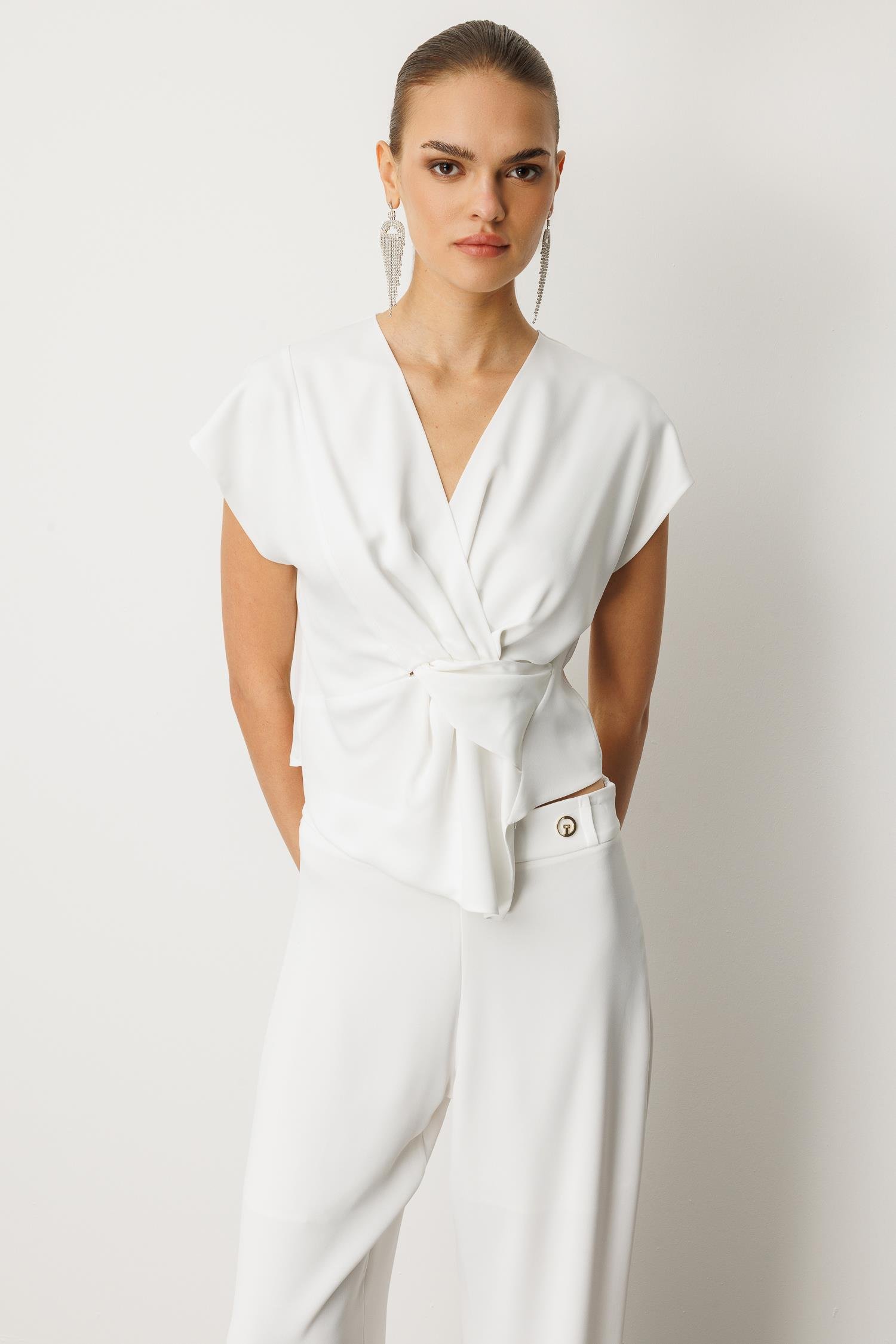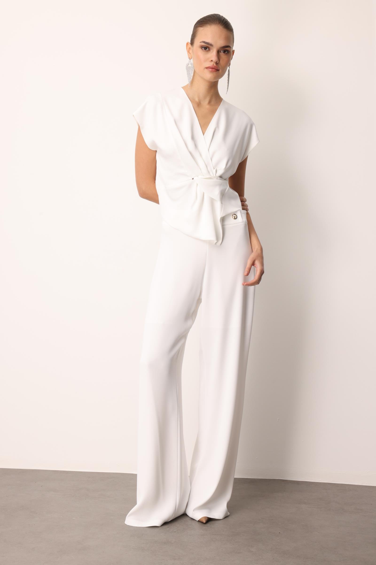 Kuruvaze Drapeli Bluz BEYAZ (25Y8202-003)