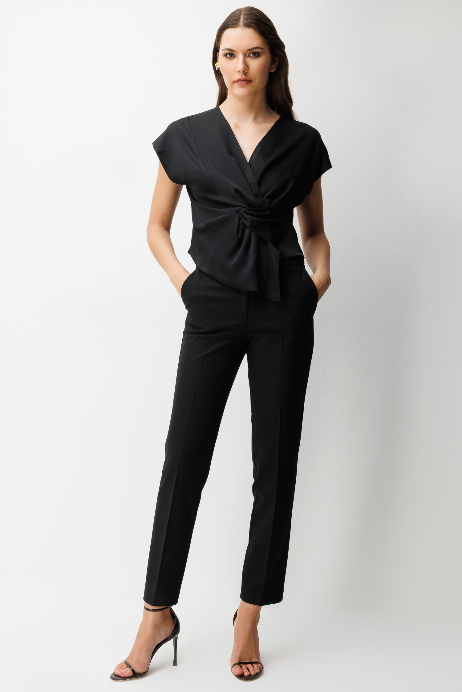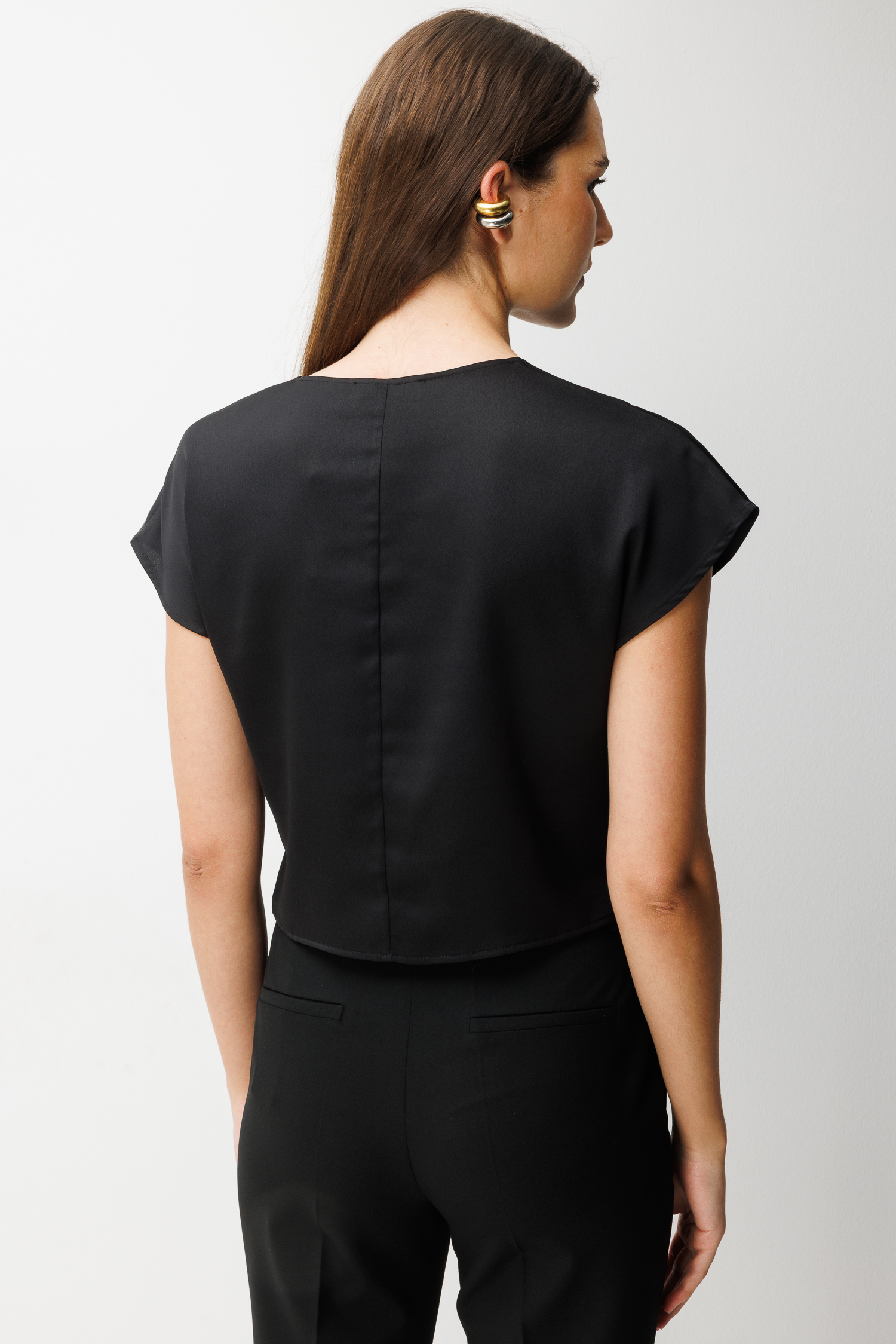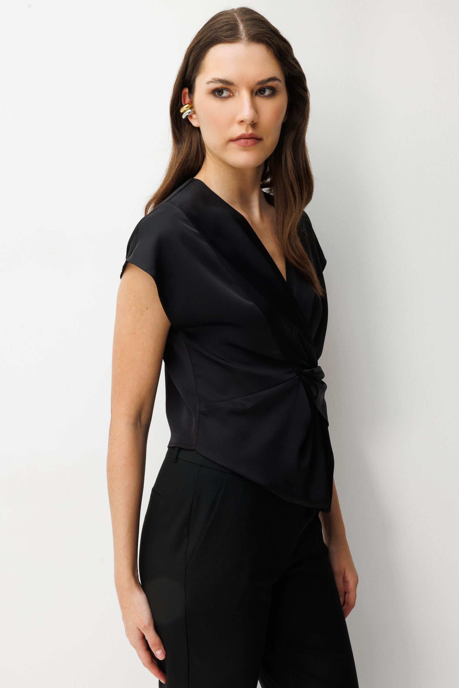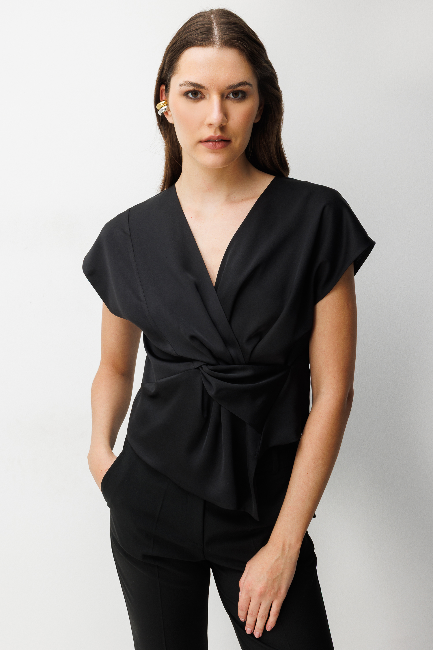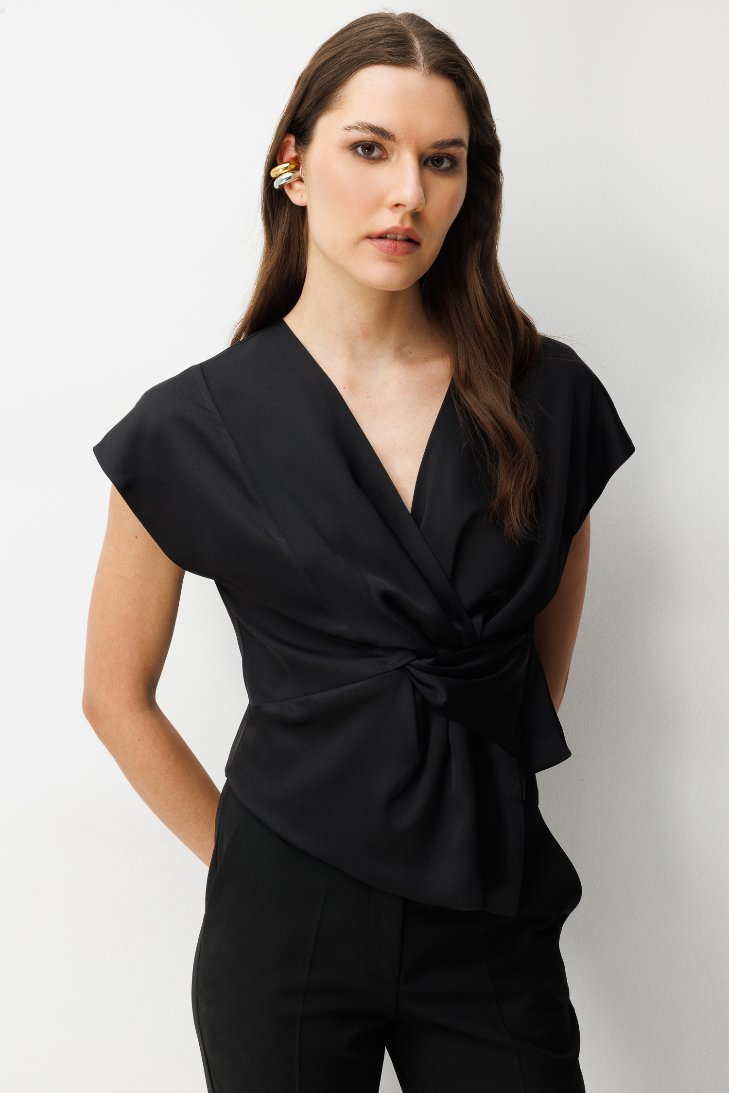 Kuruvaze Drapeli Bluz SİYAH (25Y8202-002)