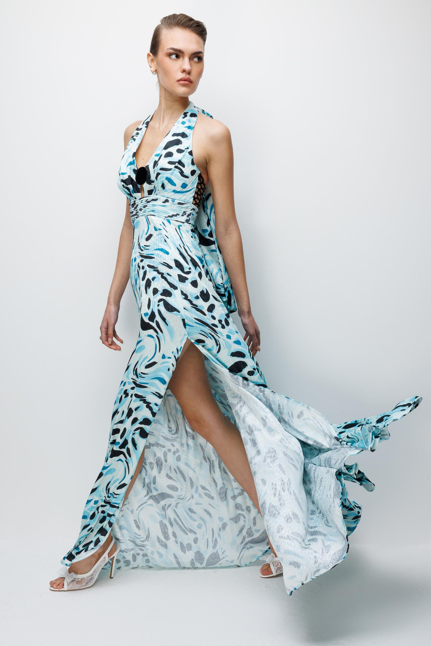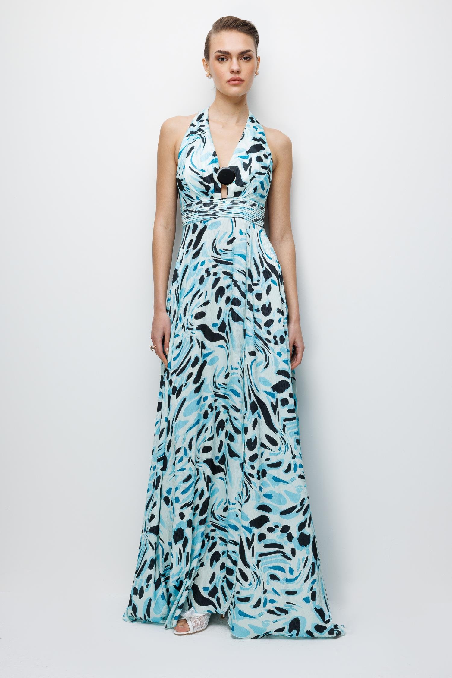 Akıcı İhtişam: Maxi boyun ve kumaşın dökümünün yarattığı görkemli silüet.