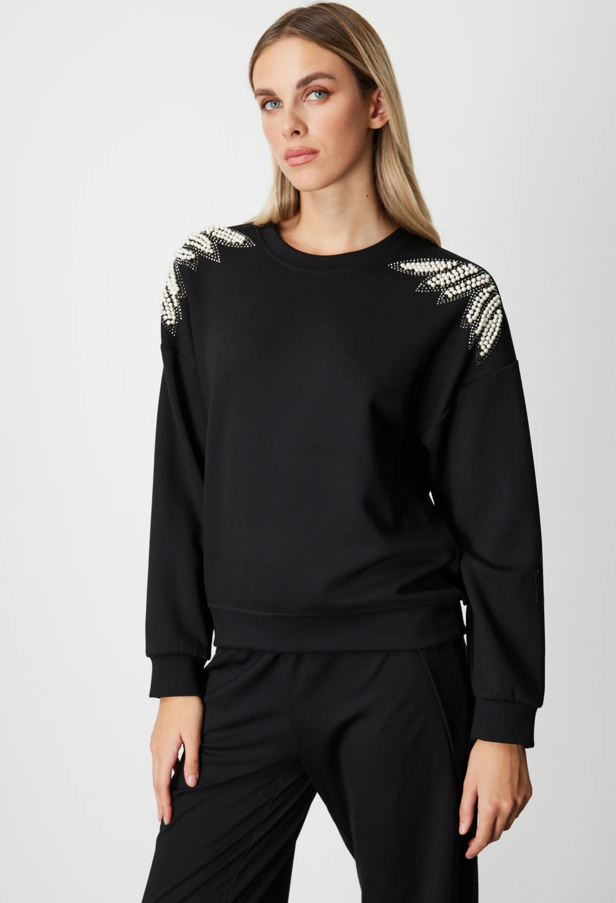 Omuzları İncili Sıfır Yaka Sweat SİYAH (26KON6338-002)