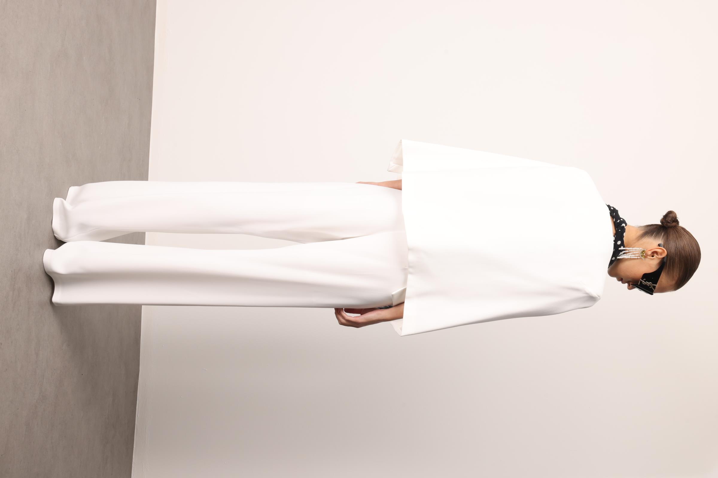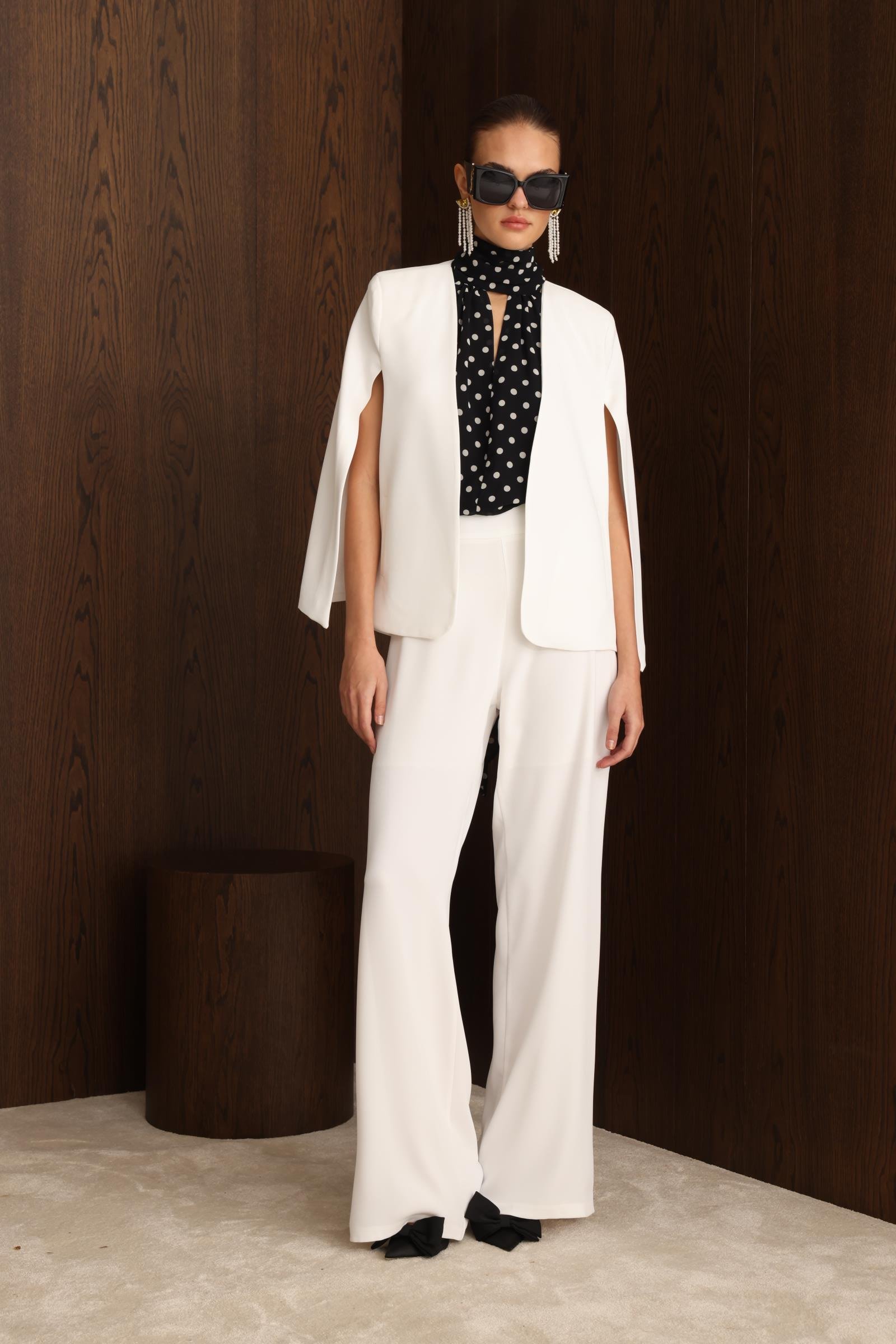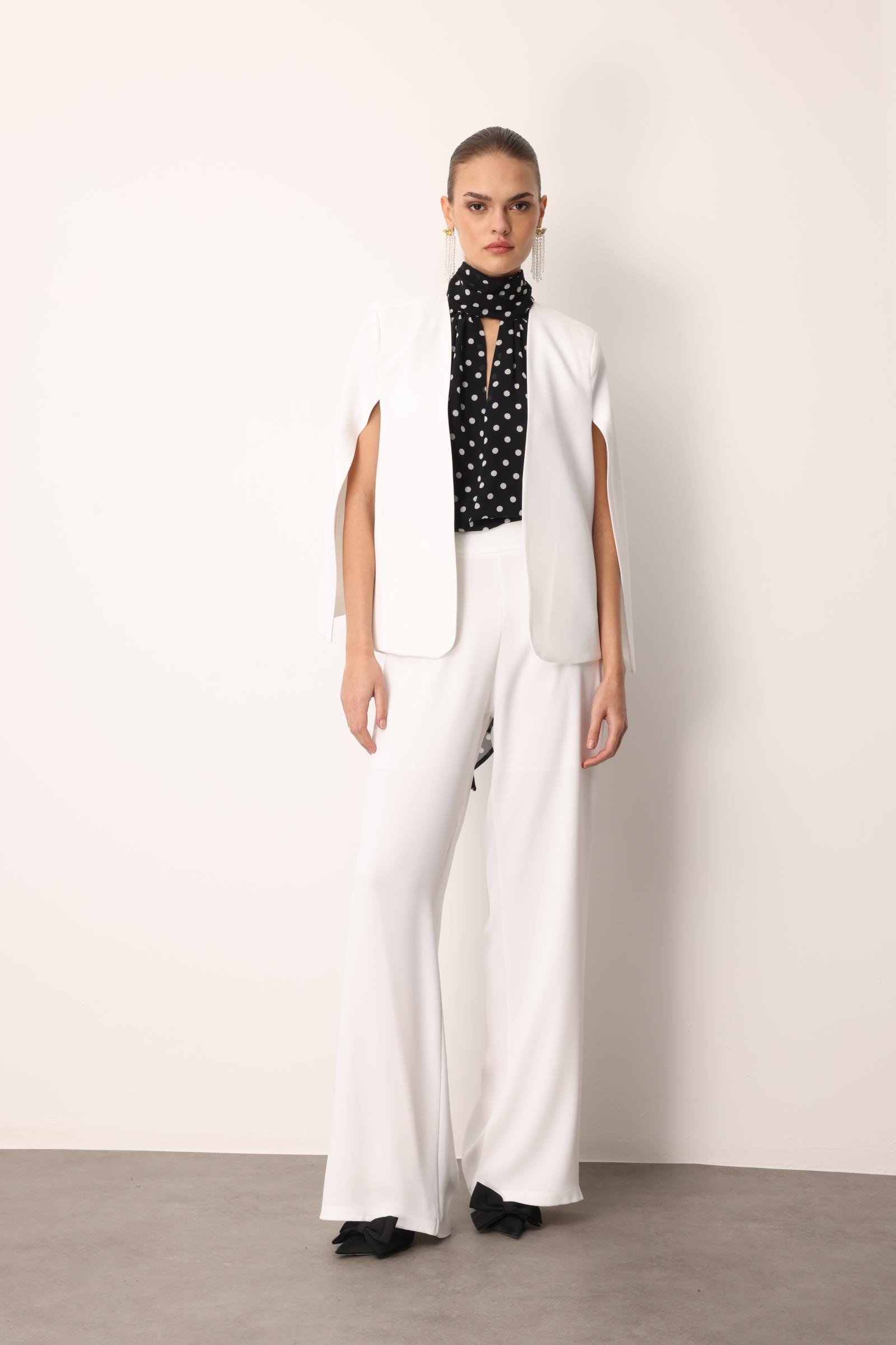 Klasik ve yenilikçi çizgileri birleştiren bu beyaz pelerin kol ceket, stilinize anında sofistike ve iddialı bir hava katıyor. Omuzlardan dökülen pelerin kol yapısı, ceketi sadece bir dış giyim parçası değil, başlı başına bir stil ifadesi haline getiriyor.