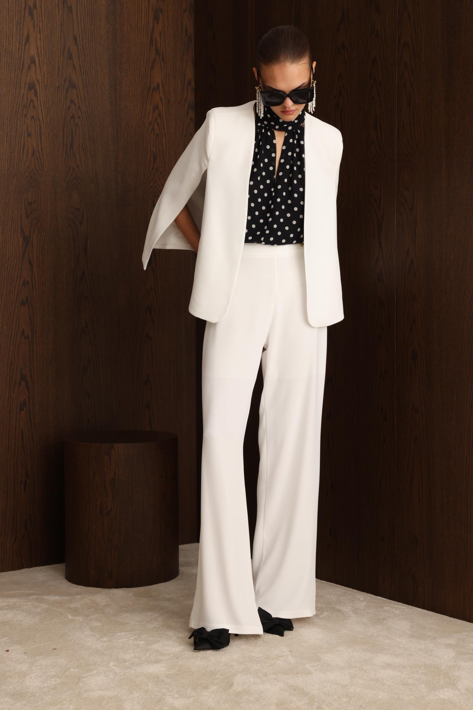 Bu ceketi, görseldeki gibi beyaz pantolonlarla kombinleyerek monokrom bir şıklık yakalayın. İçine giyeceğiniz siyah puantiyeli bluz gibi kontrast yaratan bir parça ile ceketin beyazlığını ve kesimini ön plana çıkarın. İster ofis toplantısı ister şık bir davet olsun, bu ceketle tüm bakışlar üzerinizde olacak.