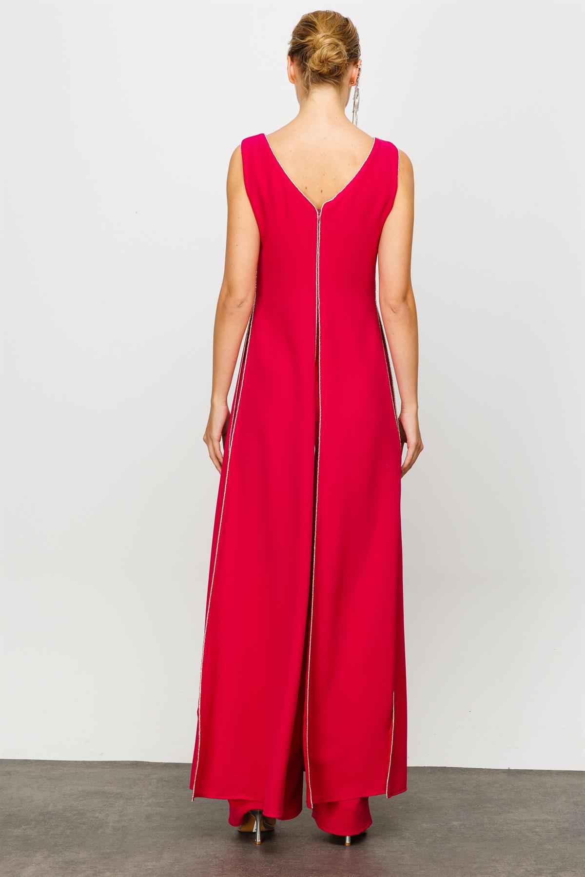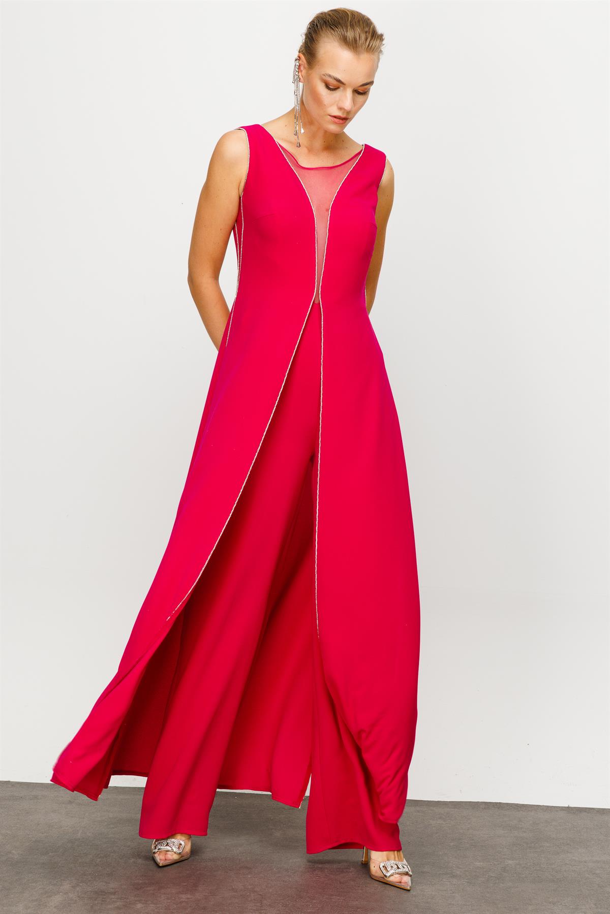 Taş Şeritli İşlemeli Fuşya Tulum (23Y-RNG6009)