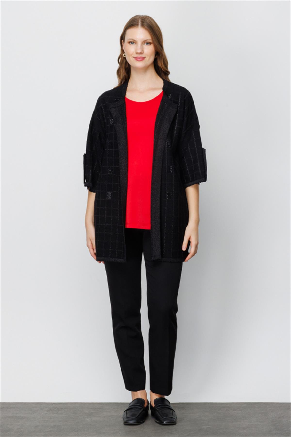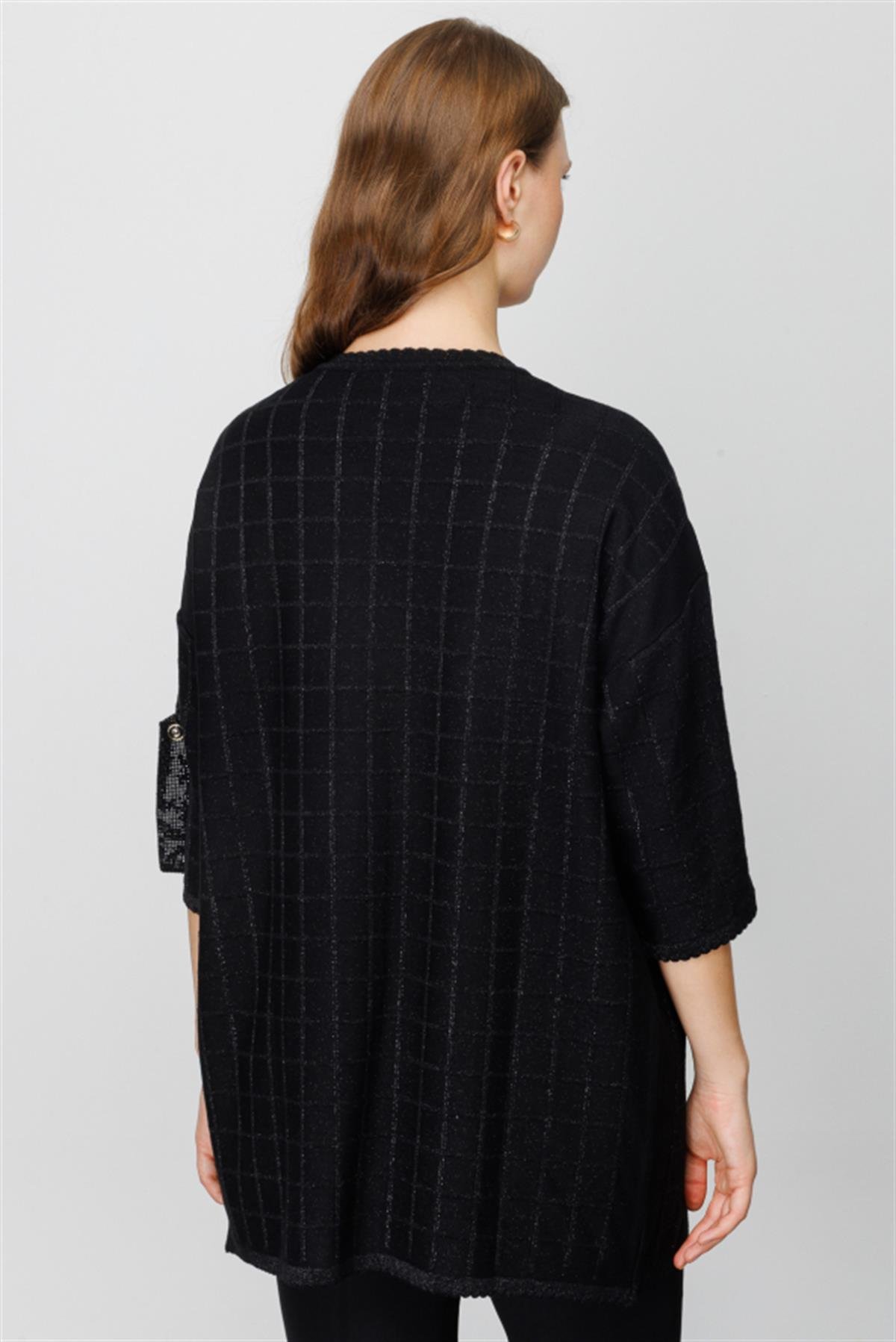 Taş ve Sim Detay Siyah Hırka (24K-ON7932)