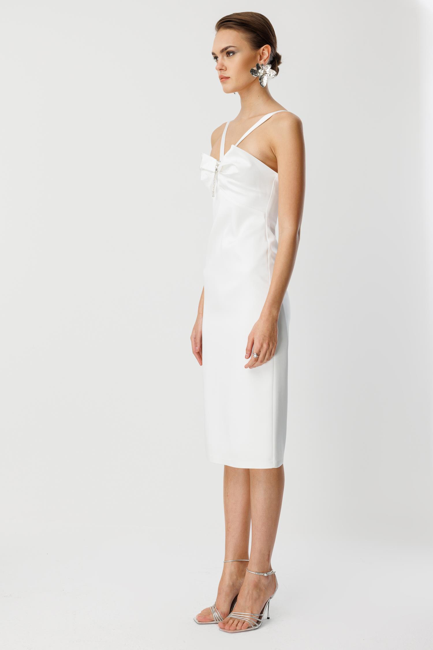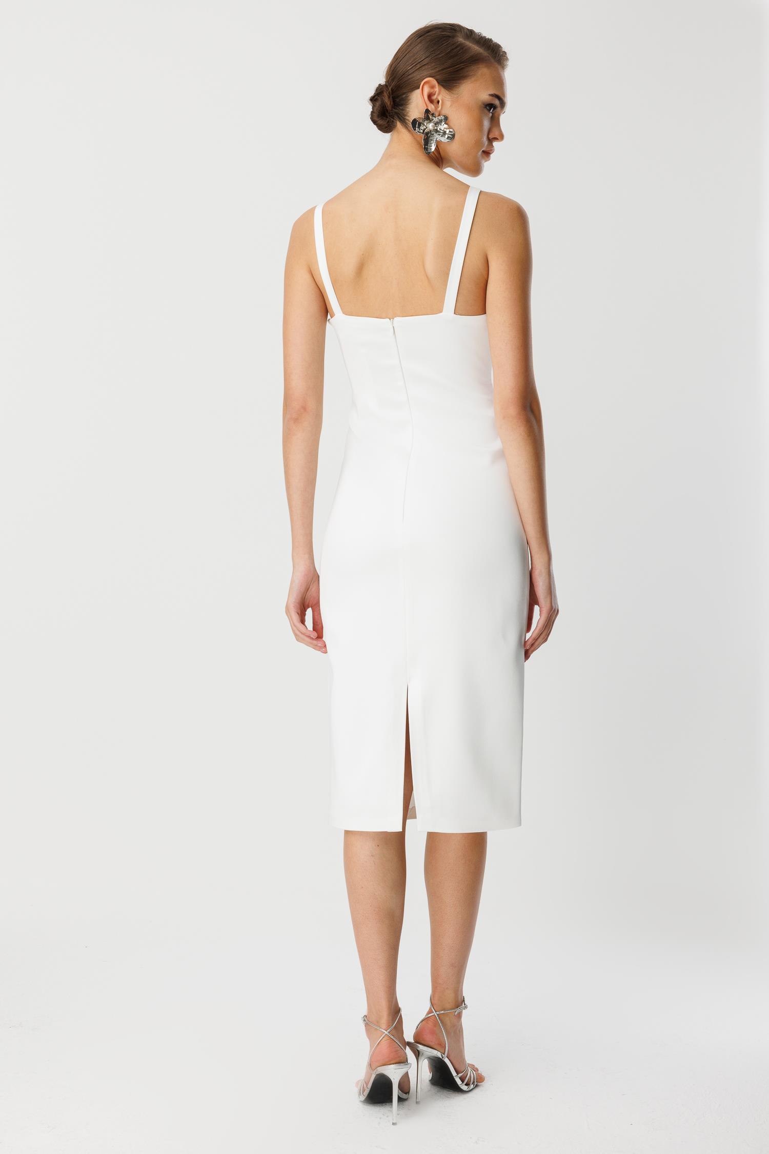 Özel günlerinizde sade lüksü tercih edenler için. Canlı Ekru (Krem Beyazı) rengindeki bu elbise, temiz kesimi ve dikkat çekici yaka/göğüs detaylarıyla güçlü bir silüet yaratır. İster cesur straplez kesimiyle ister zarif askı detaylarıyla, daima zarafeti ve iddiayı birleştirir.