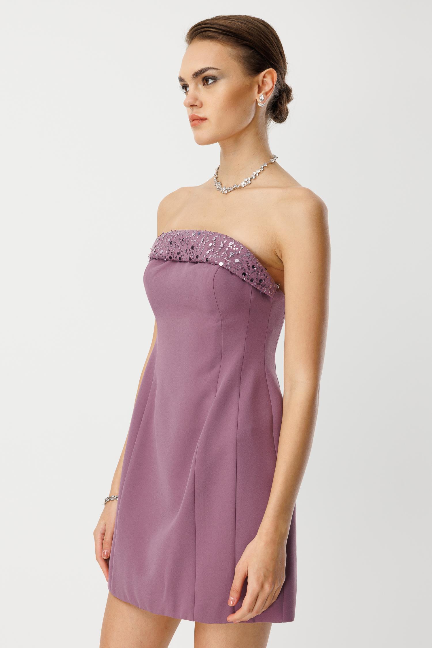 Davetlerinize romantik bir ışıltı katacak, dinamik ve çarpıcı bir tasarım. Yumuşak Lila/Açık Mor tonundaki bu mini elbise, iki farklı stiliyle gece şıklığını yeniden tanımlıyor: