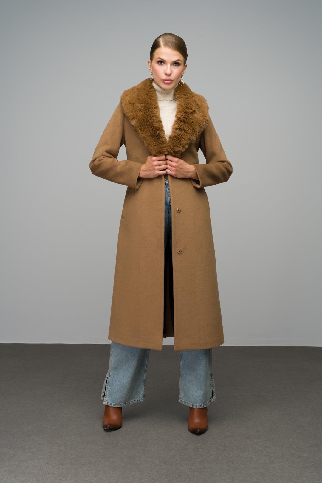 Yaka Kürk Detaylı Kaşe Kaban CAMEL (26KOLC3066-076)