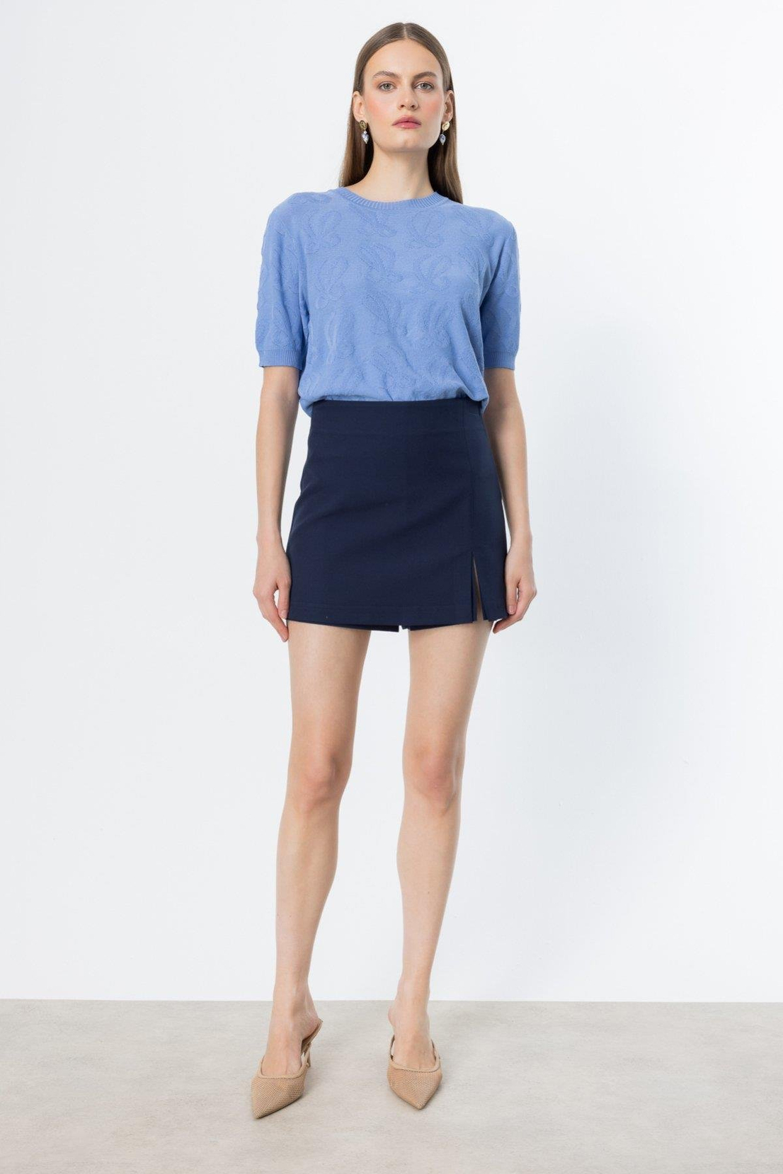 Yanı Yırtmaçlı Şort Etek LACİVERT (25YON4217-028)