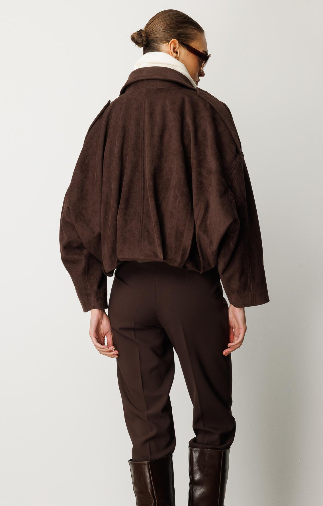 Sokak stilinin en güçlü parçası. Bu kısa kesim süet ceket, cesur ve iddialı duruşuyla gündelik şıklığınıza yeni bir soluk getiriyor. Geniş omuz yapısı ve volümlü kesimiyle modern ve dinamik bir stil yaratın.
