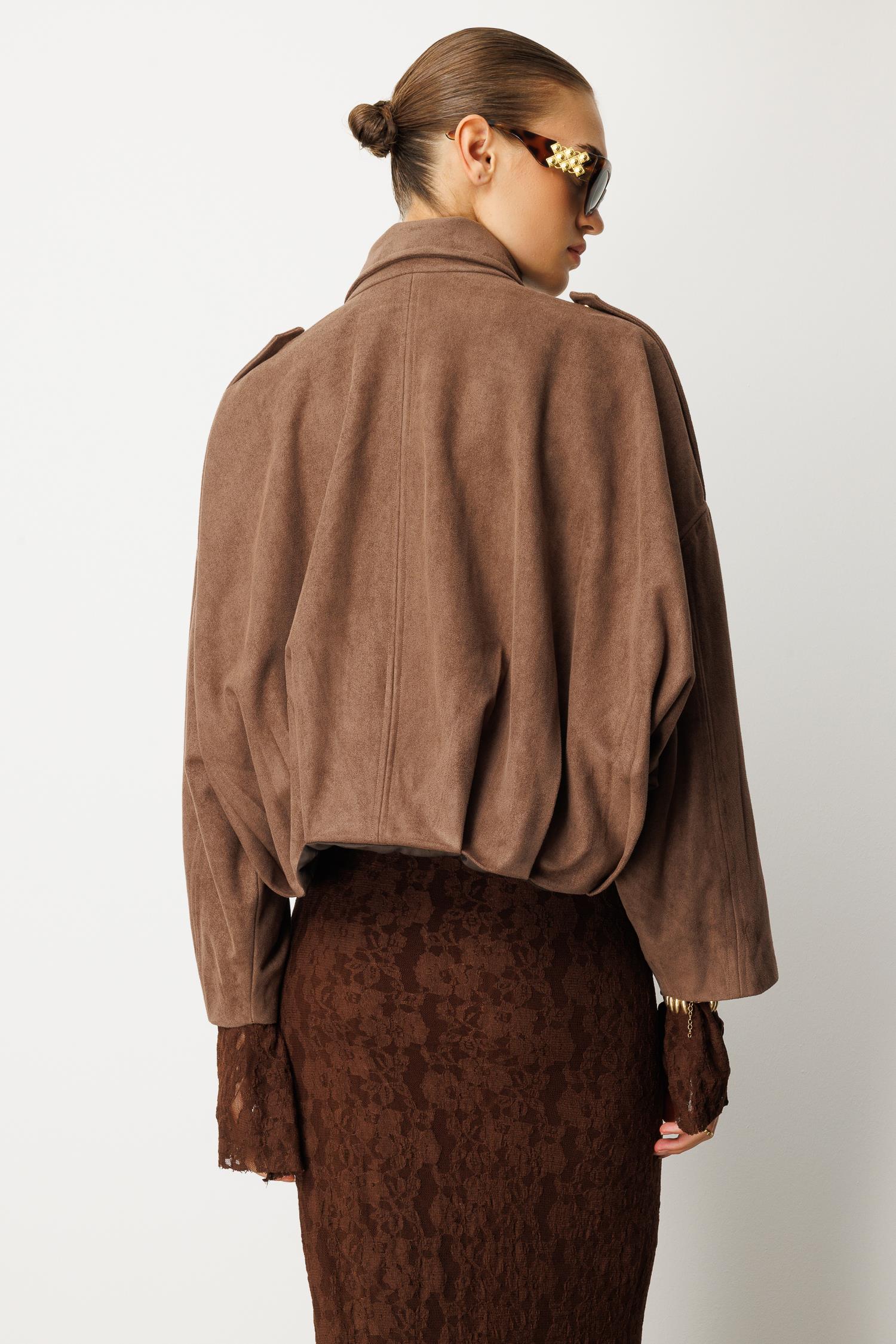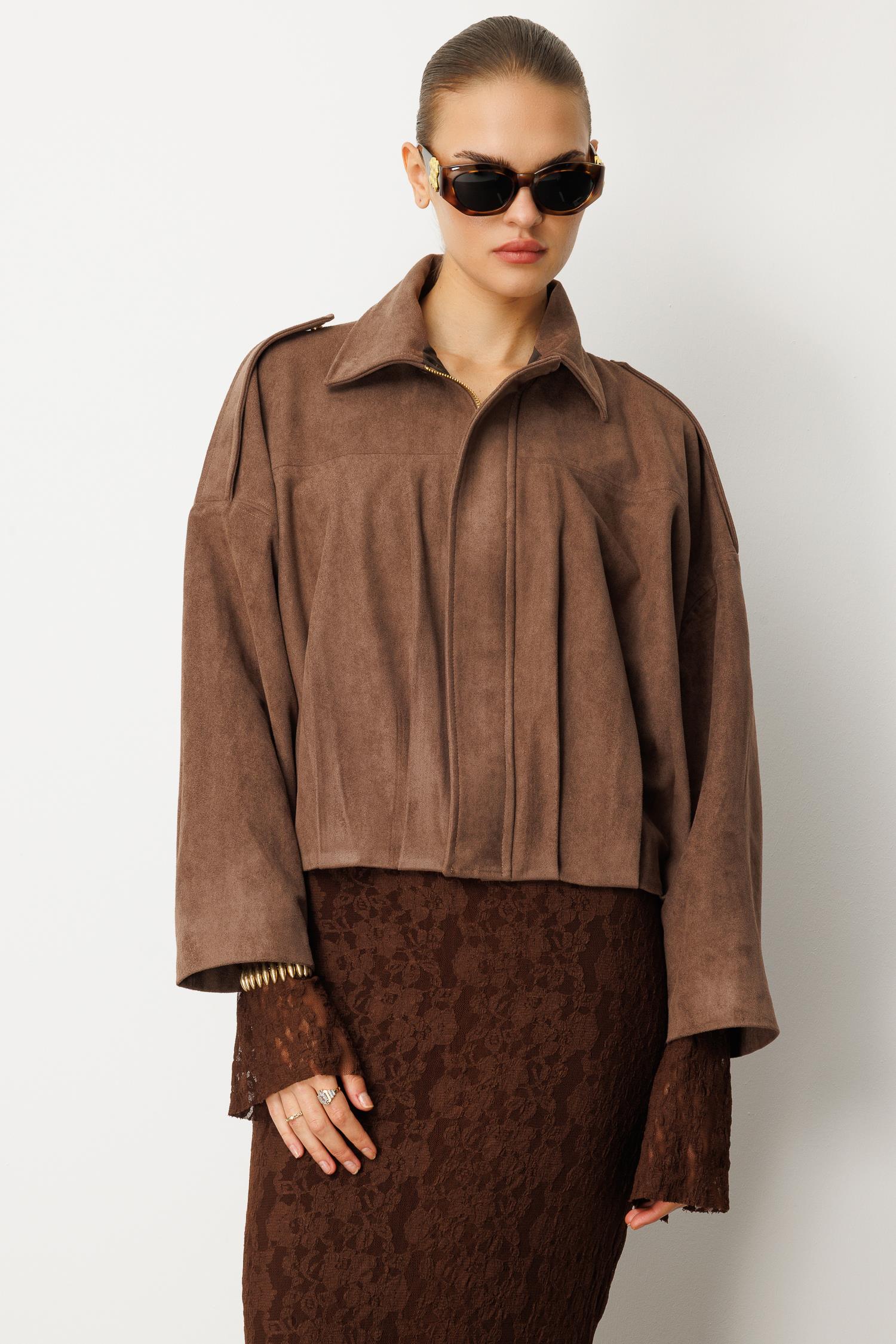 Sokak stilinin en güçlü parçası. Bu kısa kesim süet ceket, cesur ve iddialı duruşuyla gündelik şıklığınıza yeni bir soluk getiriyor. Geniş omuz yapısı ve volümlü kesimiyle modern ve dinamik bir stil yaratın.